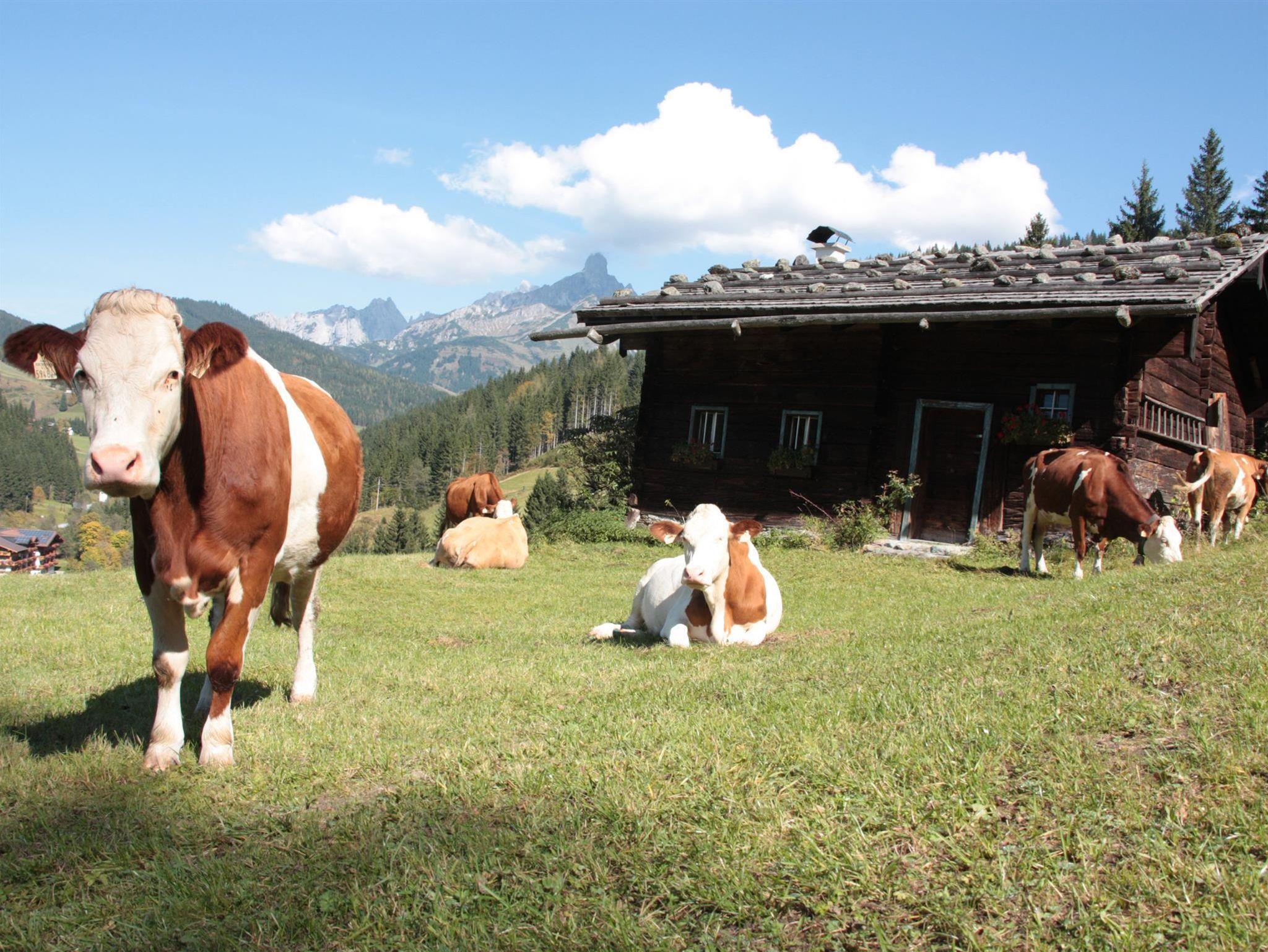 Genießen Sie die ruhige Einzellage des Richlegghofs und die beeindruckende Aussicht auf die Bischofsmütze. In den gemütlichen Appartements werden Sie sich wohlfühlen. Der Richlegghof bietet viel Platz zum Entspannen, Spielen und Genießen und ist außerdem ein guter Ausgangspunkt für Wanderungen, Biketouren und Ausflugsziele. Neben Kühen und Kälbern findet man am Richlegghof auch noch Katzen, Enten und Hasen.
