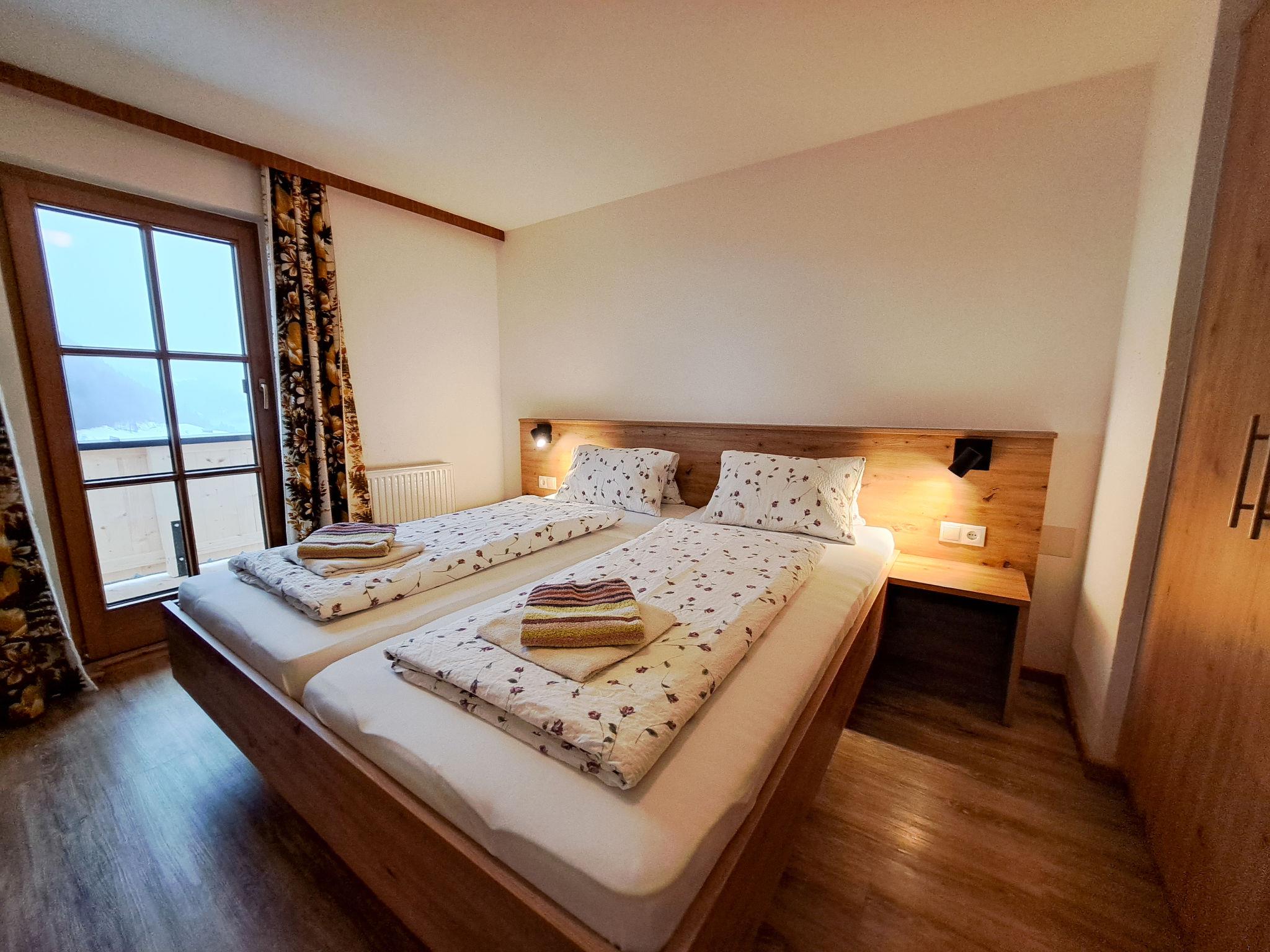 "Christoph", 3-room apartment 60 m2 on 2nd floor. Spacious, practical and wooden furniture furnishings: living room with sloping ceilings with dining nook and satellite TV. Exit to the balcony. 1 double bedroom with sloping ceilings. 1 room with sloping ceilings with 1 sofabed and 1 double bed. Open kitchen (2 hot plates, dishwasher, toaster, kettle, microwave, electric coffee machine). Shower/WC. Heating. Carpet. Balcony 6 m2. Balcony furniture. Beautiful view of Mayrhofen. Facilities: children's high chair, baby cot. Internet (WiFi, free). Please note: non-smokers only. Smoke alarm, fire extinguisher. When there are less than the maximum number of guests staying at the property, not all of the bedrooms will be available for use.