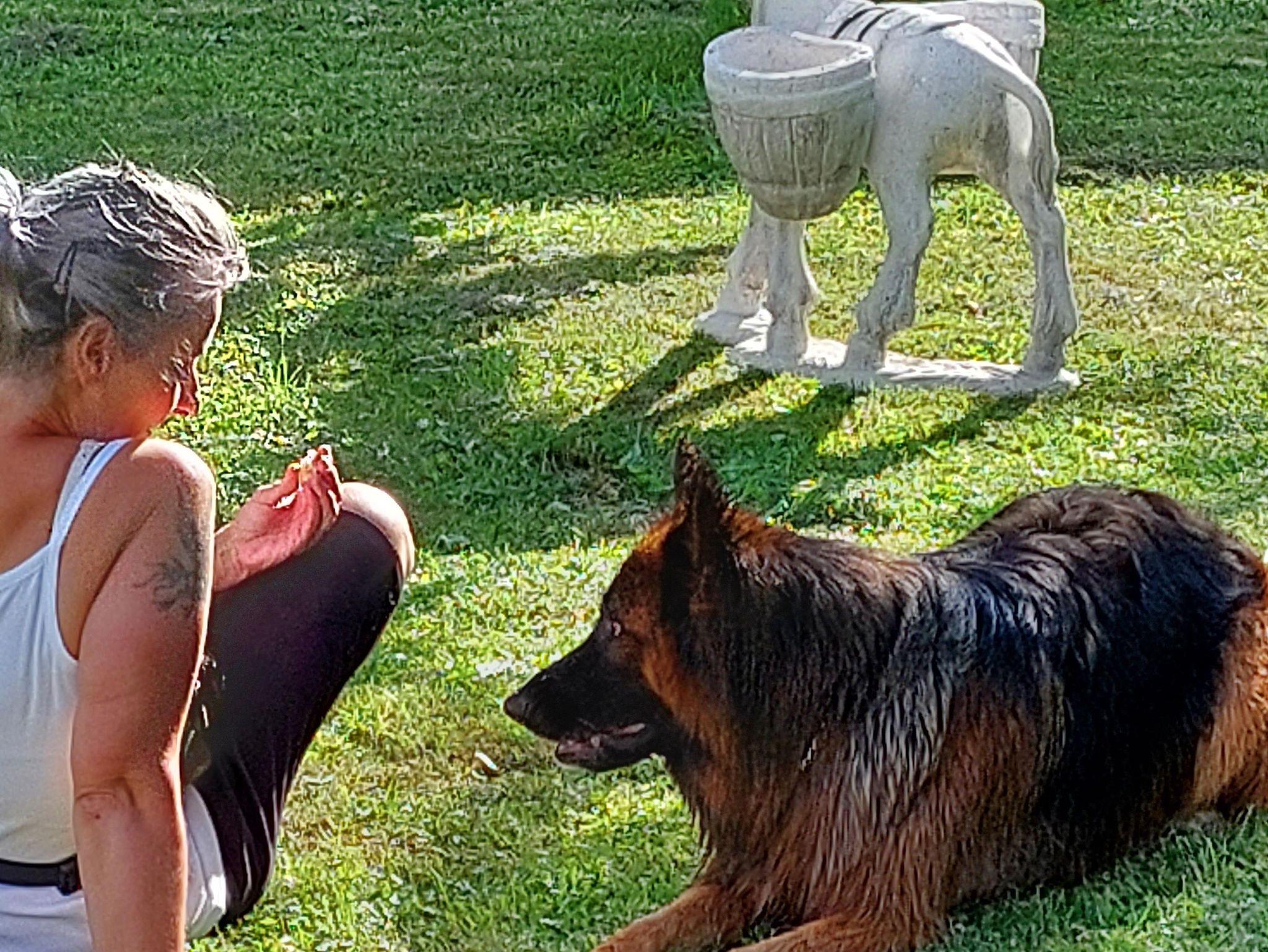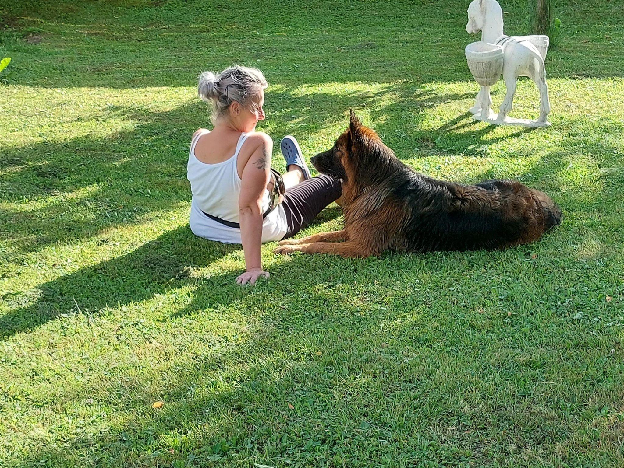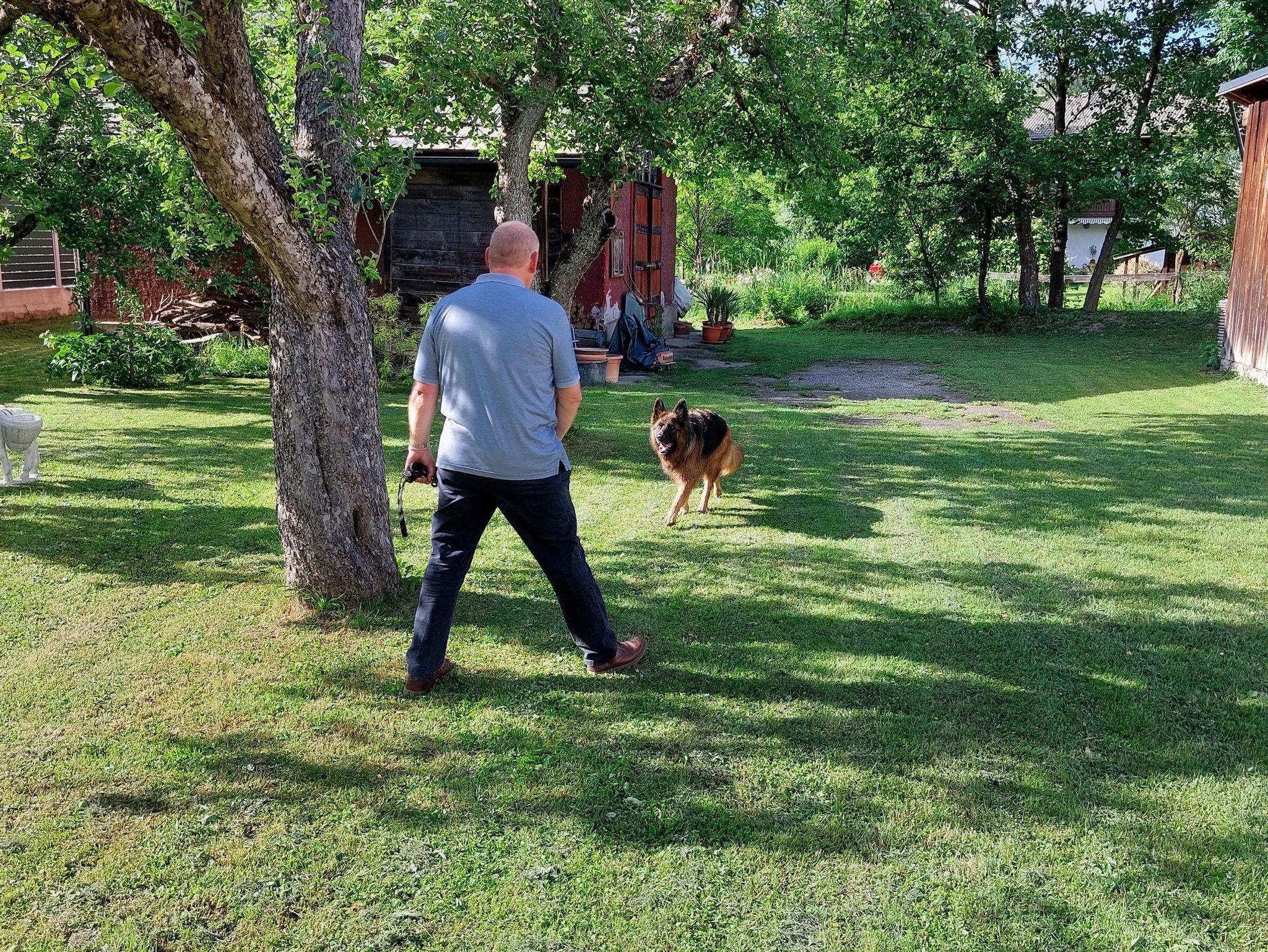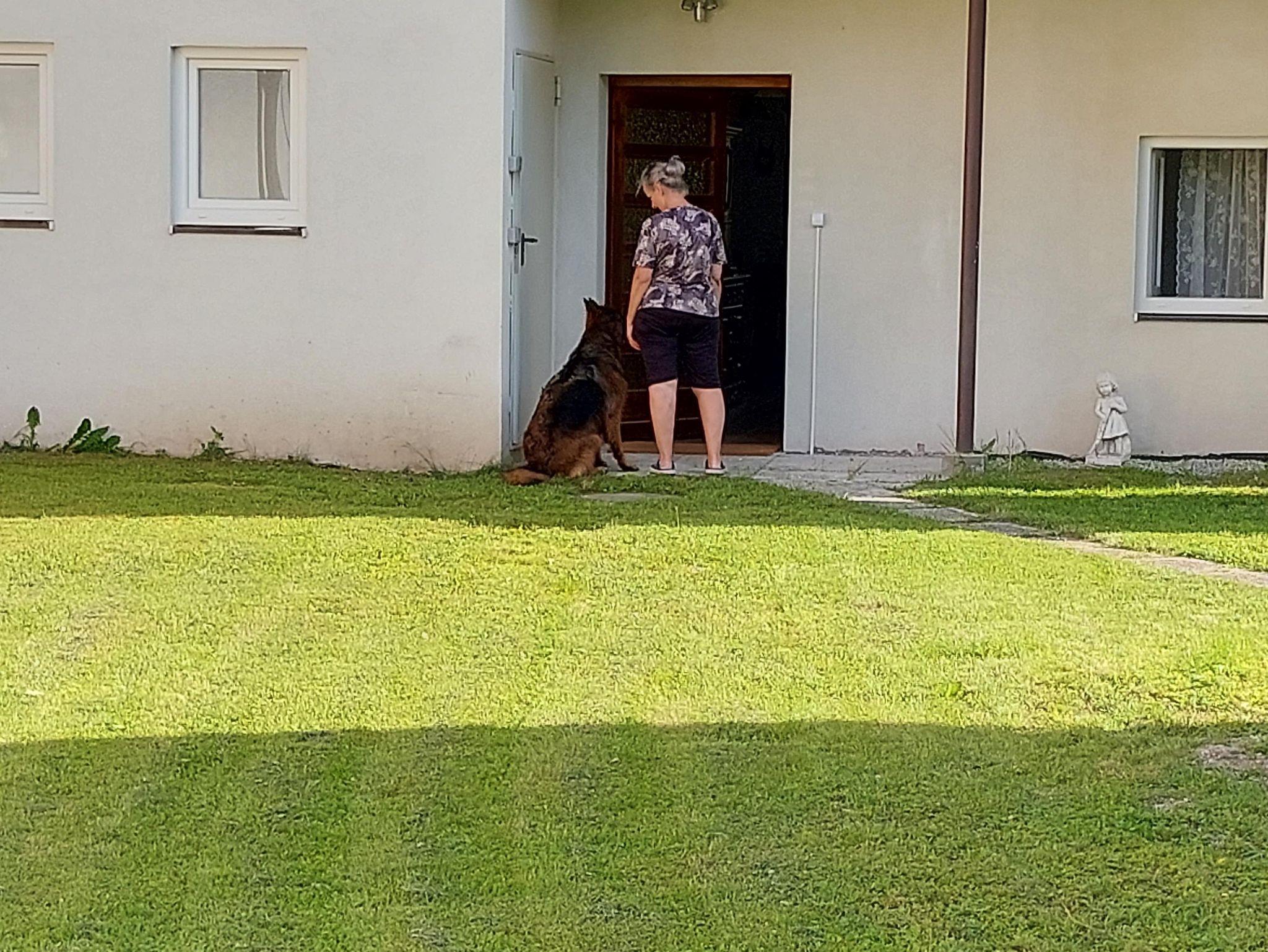 Für Hunde steht eine Hundehütte im Garten falls sich ein Hund ein schattiges oder warmes Plätzchen sucht.