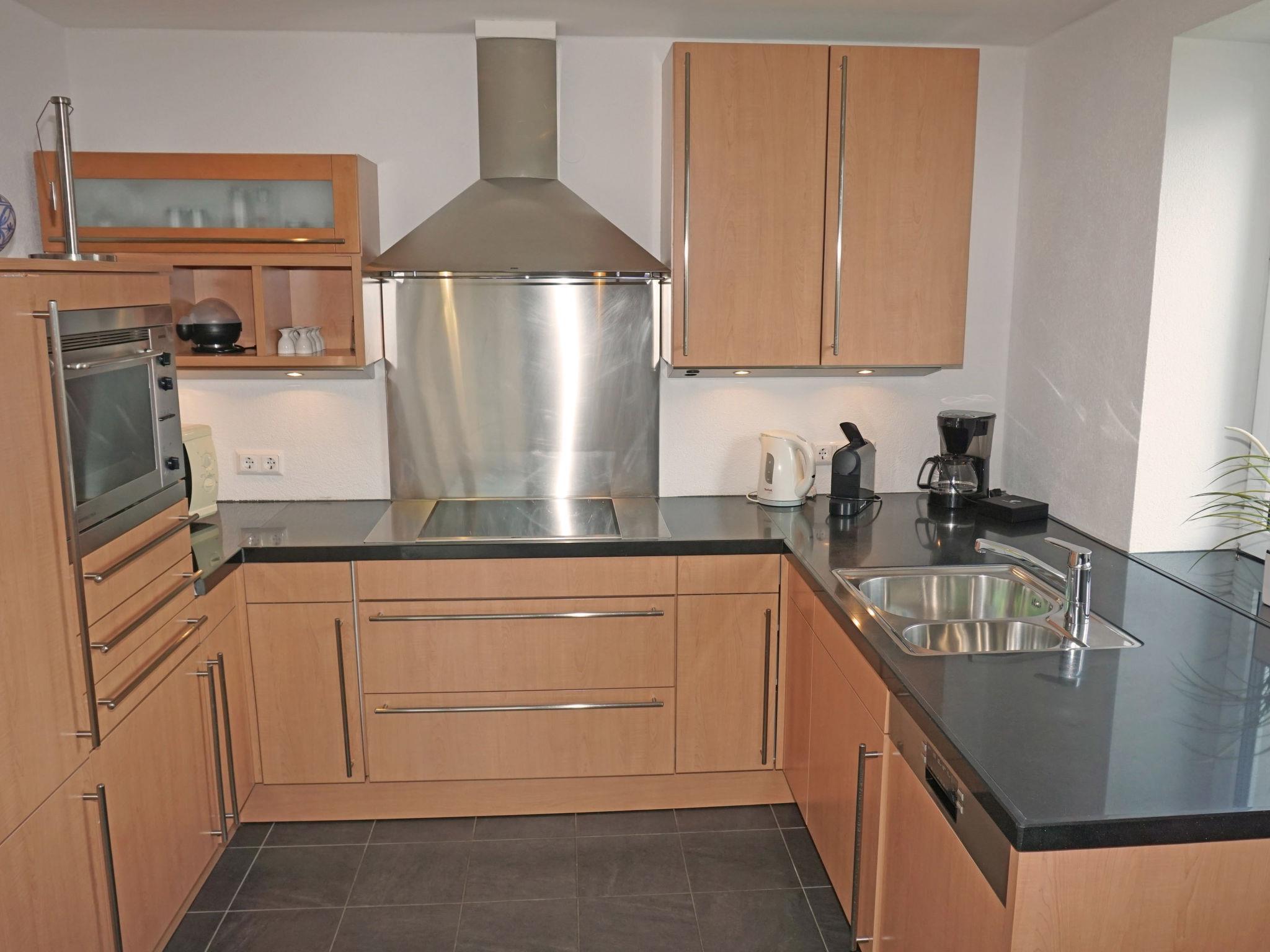 4-room apartment 105 m2 on 1st floor. Spacious, comfortable furnishings: entrance hall. 2 double bedrooms. 1 double bedroom with shower/WC. Exit to the terrace. Large living/dining room with dining table and cable TV (flat screen). Exit to the terrace. Open kitchen (oven, dishwasher, 4 ceramic glass hob hotplates, microwave, electric coffee machine). Shower, sep. WC. Large terrace 22 m2. Terrace furniture. Facilities: safe, hair dryer. Internet (WiFi, free). Please note: non-smokers only. Smoke alarm.