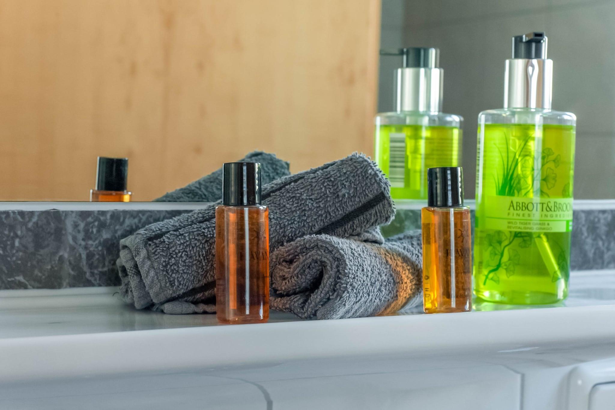 Stueetage: (Stue(dobbeltseng, Fjernsyn), Køkken(komfur(Komfur med fire kogeplader, glaskeramisk), mikrobølgeovn, opvaskemaskine , håndvask), soveværelse(dobbeltseng), soveværelse(dobbeltseng), badeværelse(bruser, håndvask, toilet), badeværelse(bruser, håndvask, toilet)) balkon eller terrasse, klimaanlæg, have, parkering