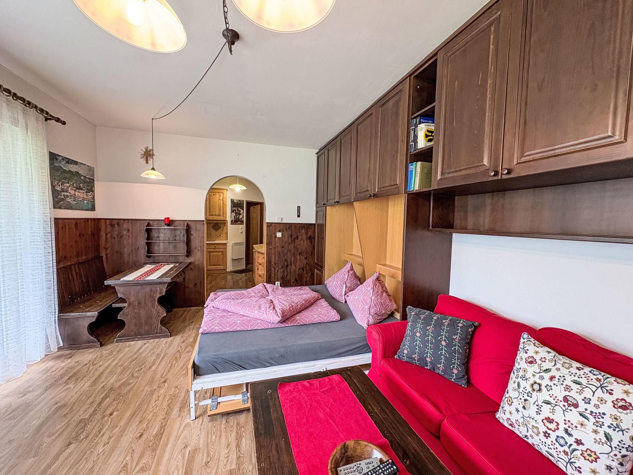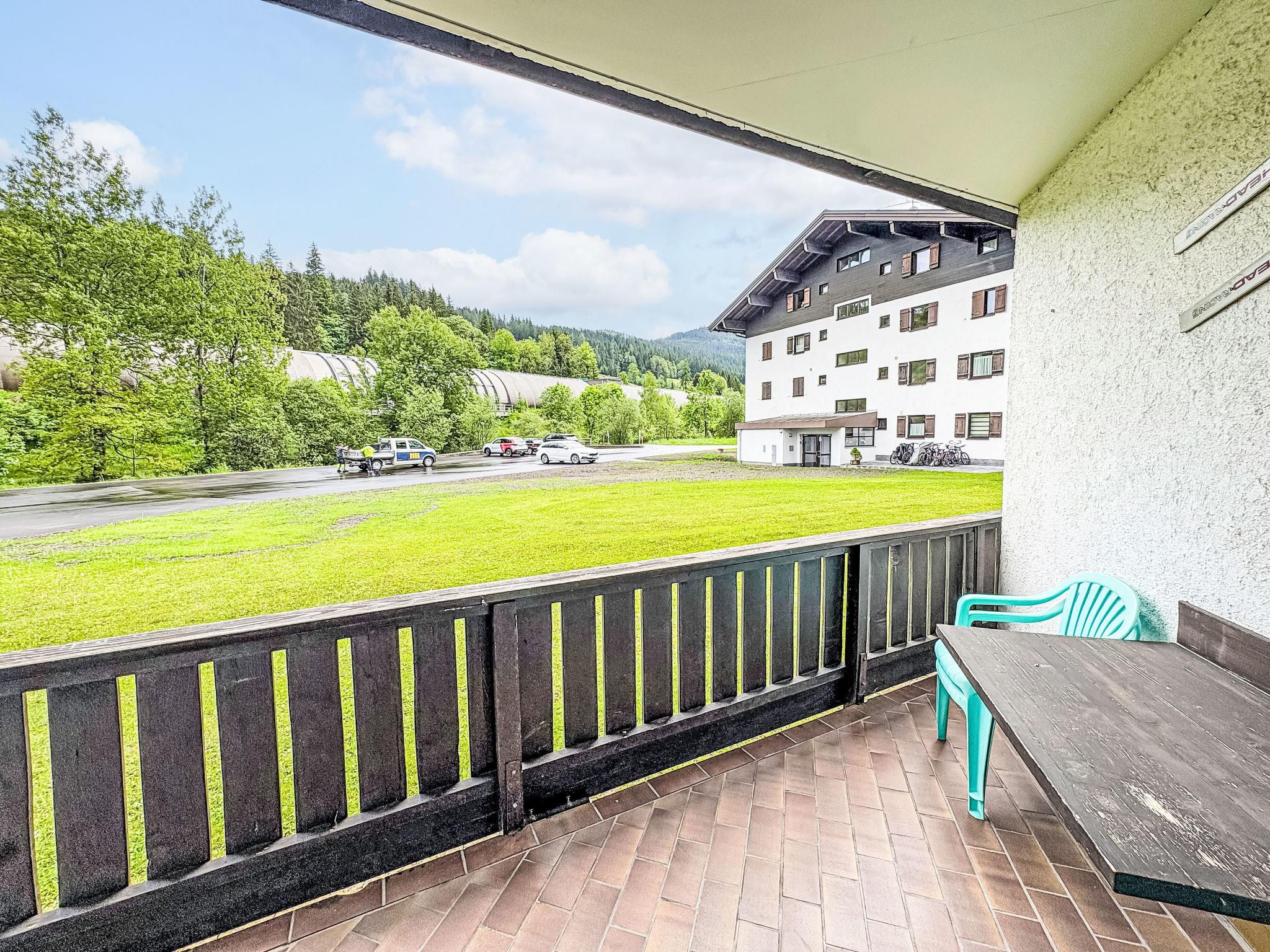 "Dachstein Top 2", 2-room apartment 42 m2, on the ground floor. Object suitable for 2 adults + 2 children. Simple and cosy furnishings: living/sleeping room with 2 wall-trunk beds (90 cm, length 200 cm), dining nook and cable TV (flat screen), radio. Exit to the loggia. Sleeping alcove with 1 x 2 bunk beds. Open kitchen in the entrance (4 hot plates, oven). Bath/WC. Balcony, south facing position and, east facing position. Balcony furniture. Side view of the countryside. Facilities: Internet (WiFi, free). Please note: smoke alarm. Instead of an enclosed bedroom, some sleeping areas are located in an open-plan area (gallery, alcove, etc.). 50408-000602-2021