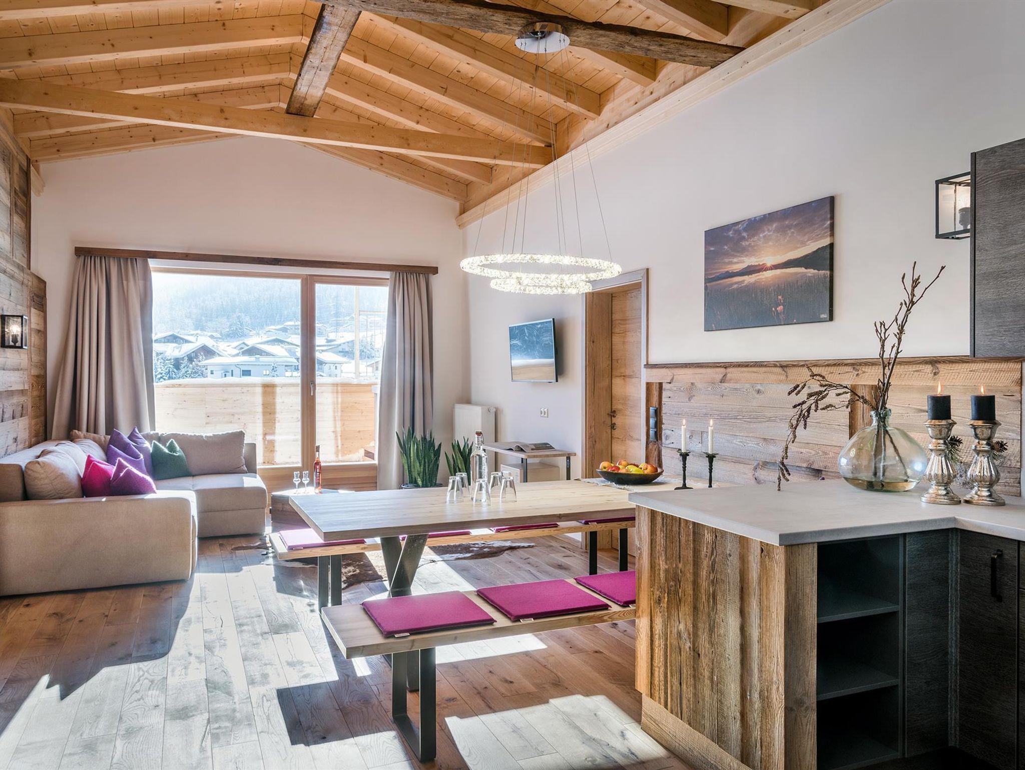 Penthouse 3.OG, 180 qm, 4 SZ mit offenen Bädern & Boxspringbetten, Küche, Wohnraum mit Sitzecke, Esstisch, Schlafcouch, Terrasse Hot Pot & Sitzecke, Kabel TV, WLAN, privater Liftzugang, privates Vorhaus, Frühstücksbuffet, tägliche Spa-, Pool Nutzung