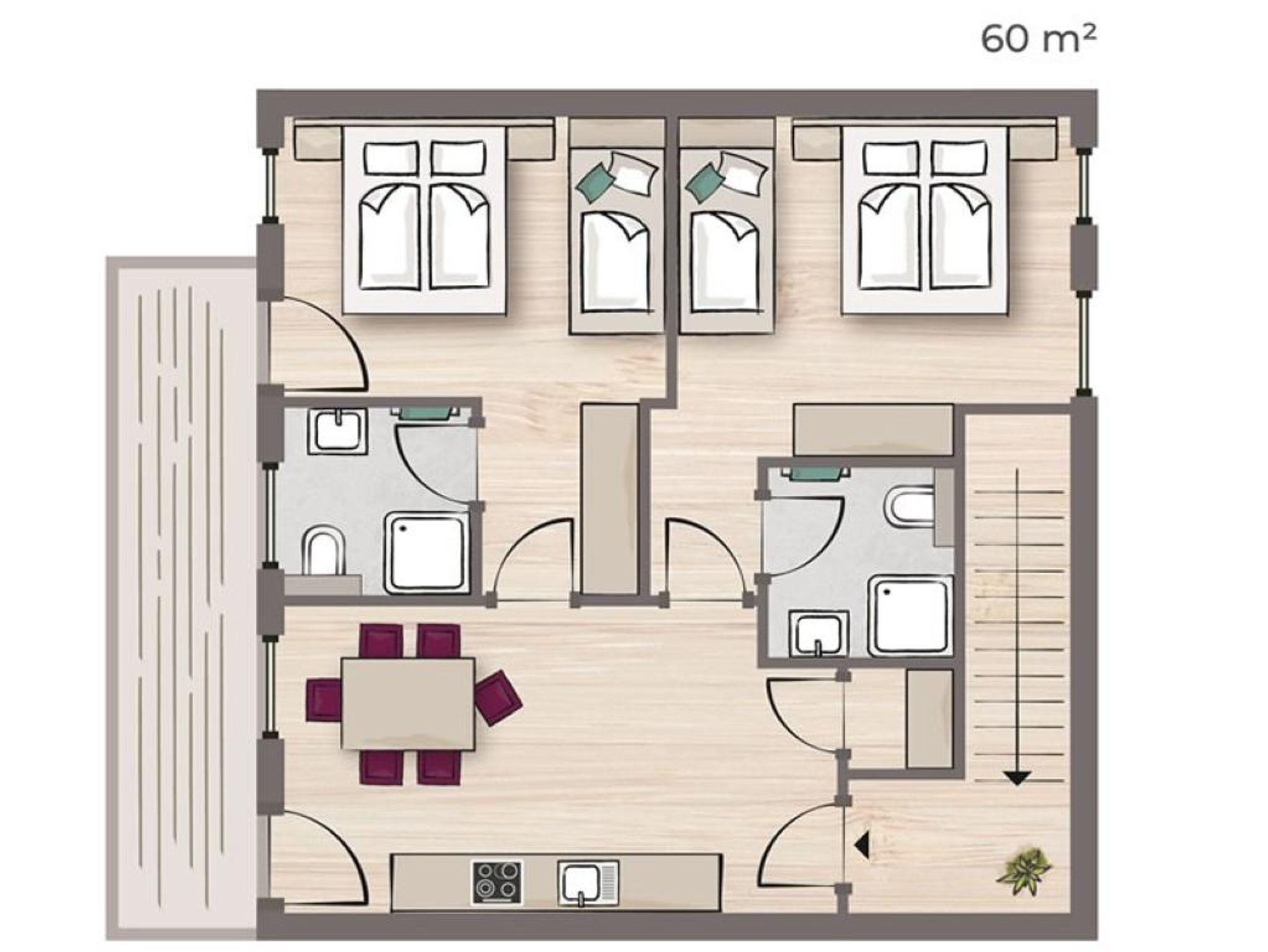 Das Appartement Panoramablick mit 2 Schlafzimmern und 2 Bädern liegt im Neubau (1. Stock, ohne Aufzug) und ist bestens für 4 bis 6 Personen geeignet.