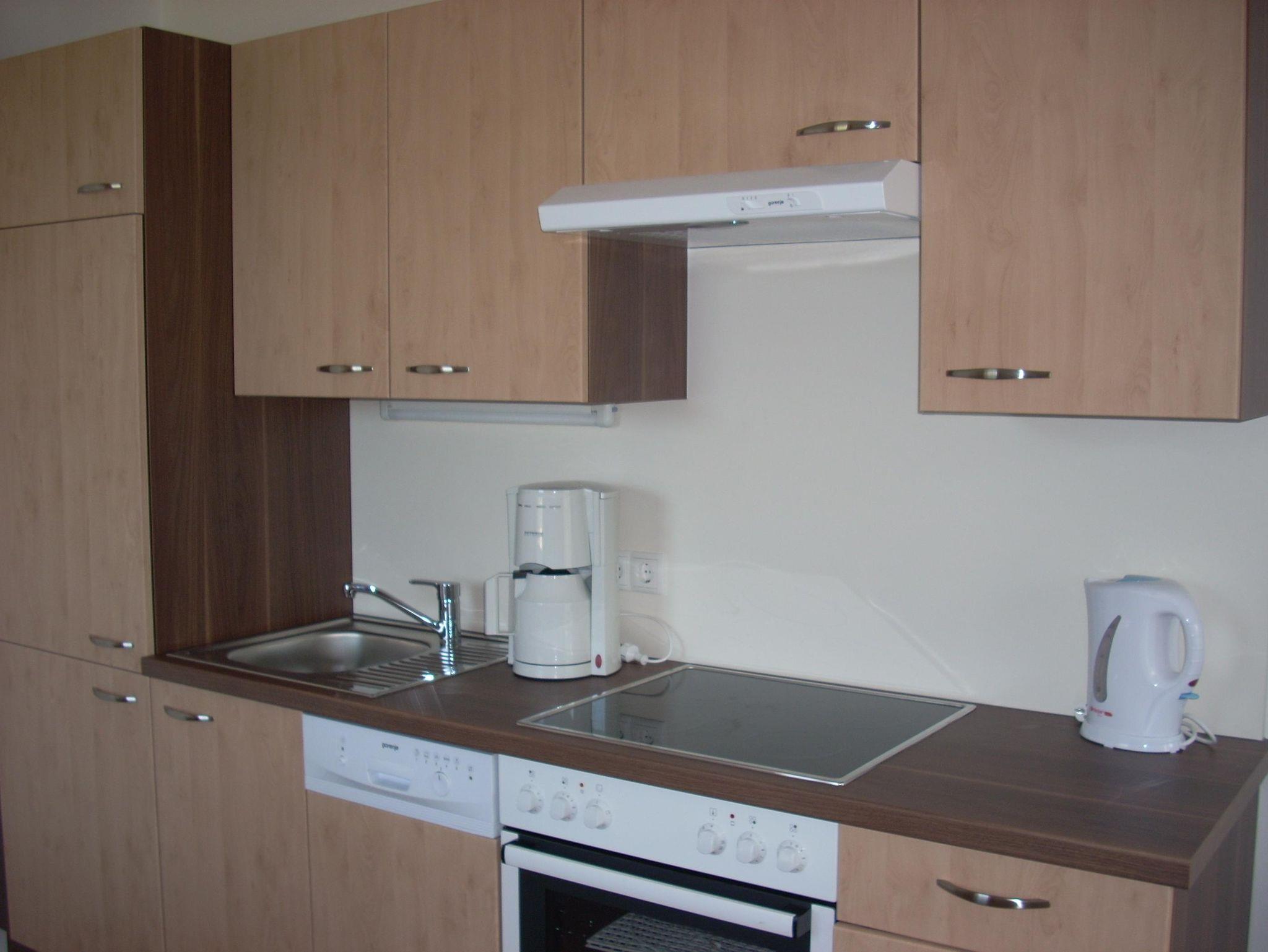 Das Appartement für 2 Personen ist mit Backofen, Mikrowelle, Elektroherd, TV, Internetanschluss und Balkon ausgestattet.