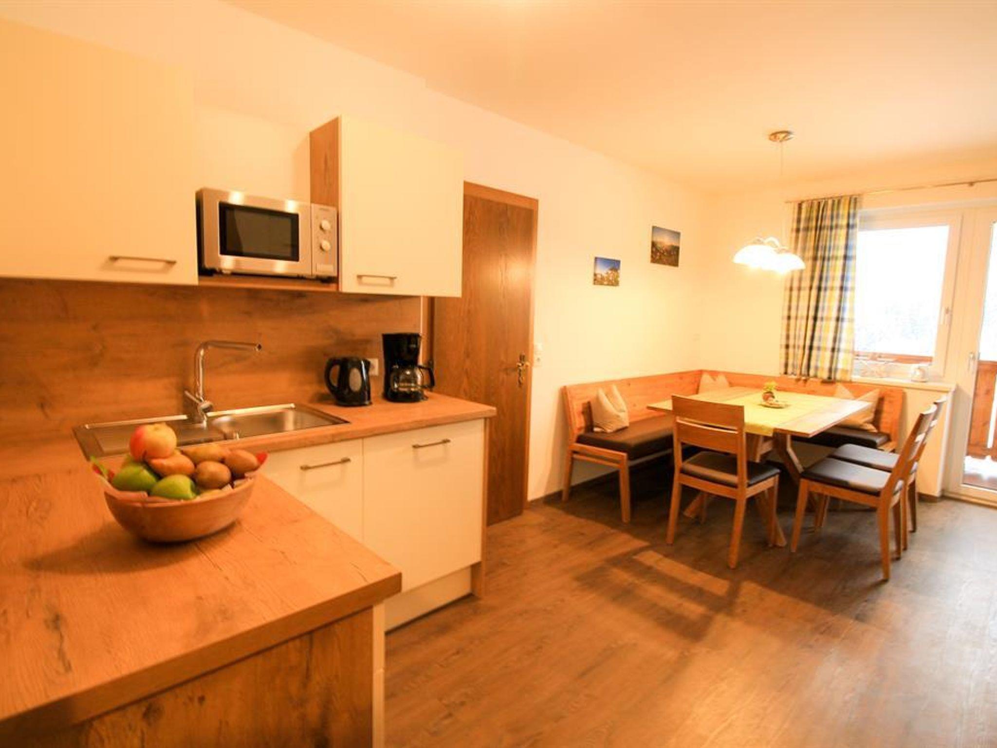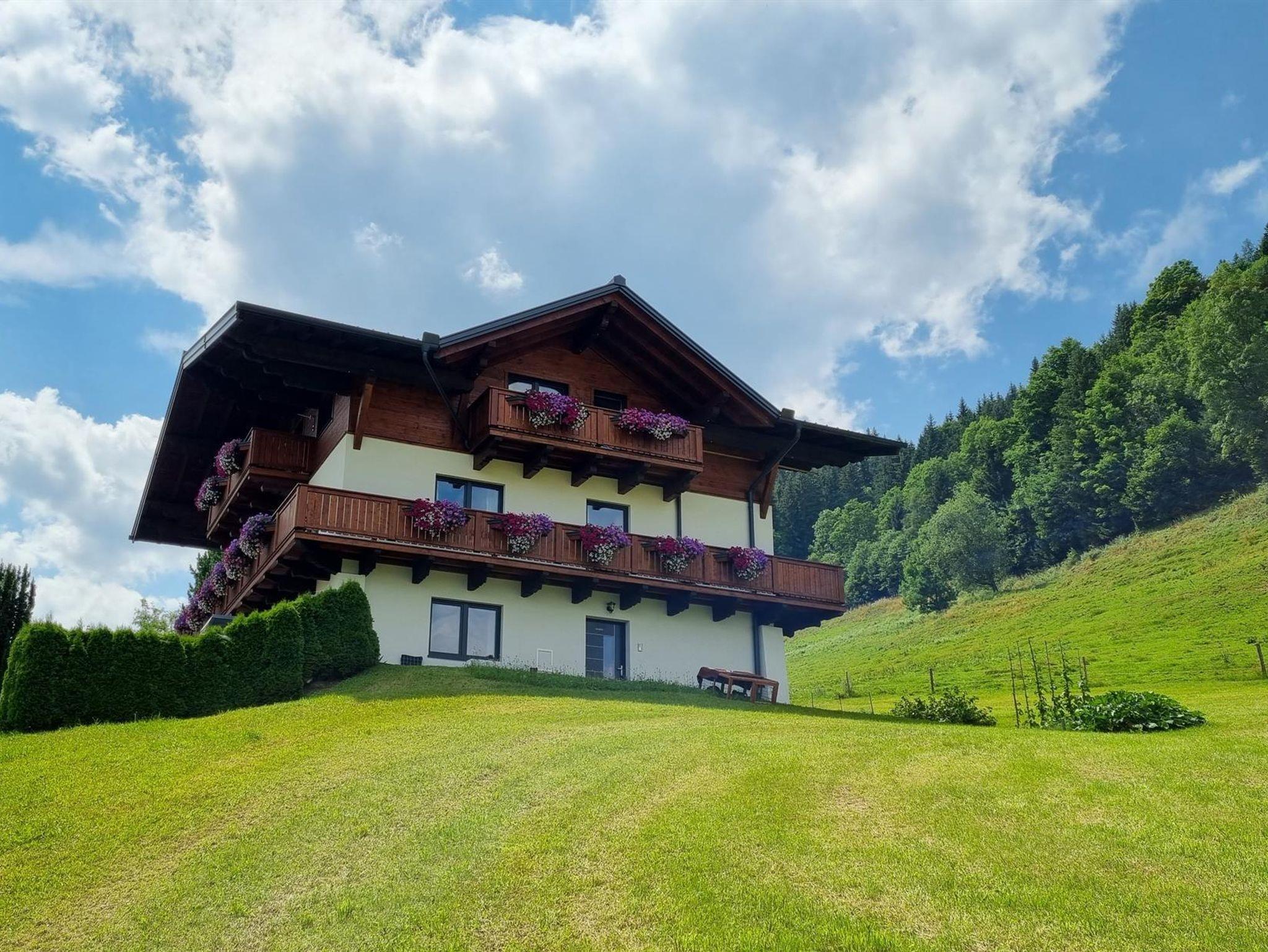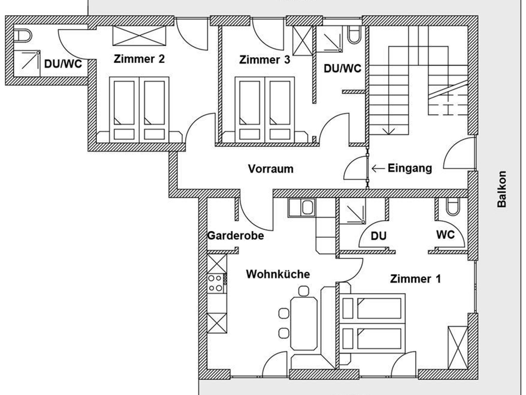 Unseren Gästen steht eine top ausgestattete Ferienwohnung (ca. 70 m²) mit separater Wohnküche zur Verfügung. Die Wohnung verfügt über drei getrennte Schlafzimmer, jeweils mit eigener Dusche und WC, Kabel-TV sowie Föhn. Kostenloses WLAN gehört selbstverständlich zum Komfort. Der rundum ausgerichtete Balkon bietet einen herrlichen Ausblick auf die beeindruckende Bergwelt sowie die grünen Wiesen. Ein kostenloses Carport für zwei Autos ist ebenfalls vorhanden.