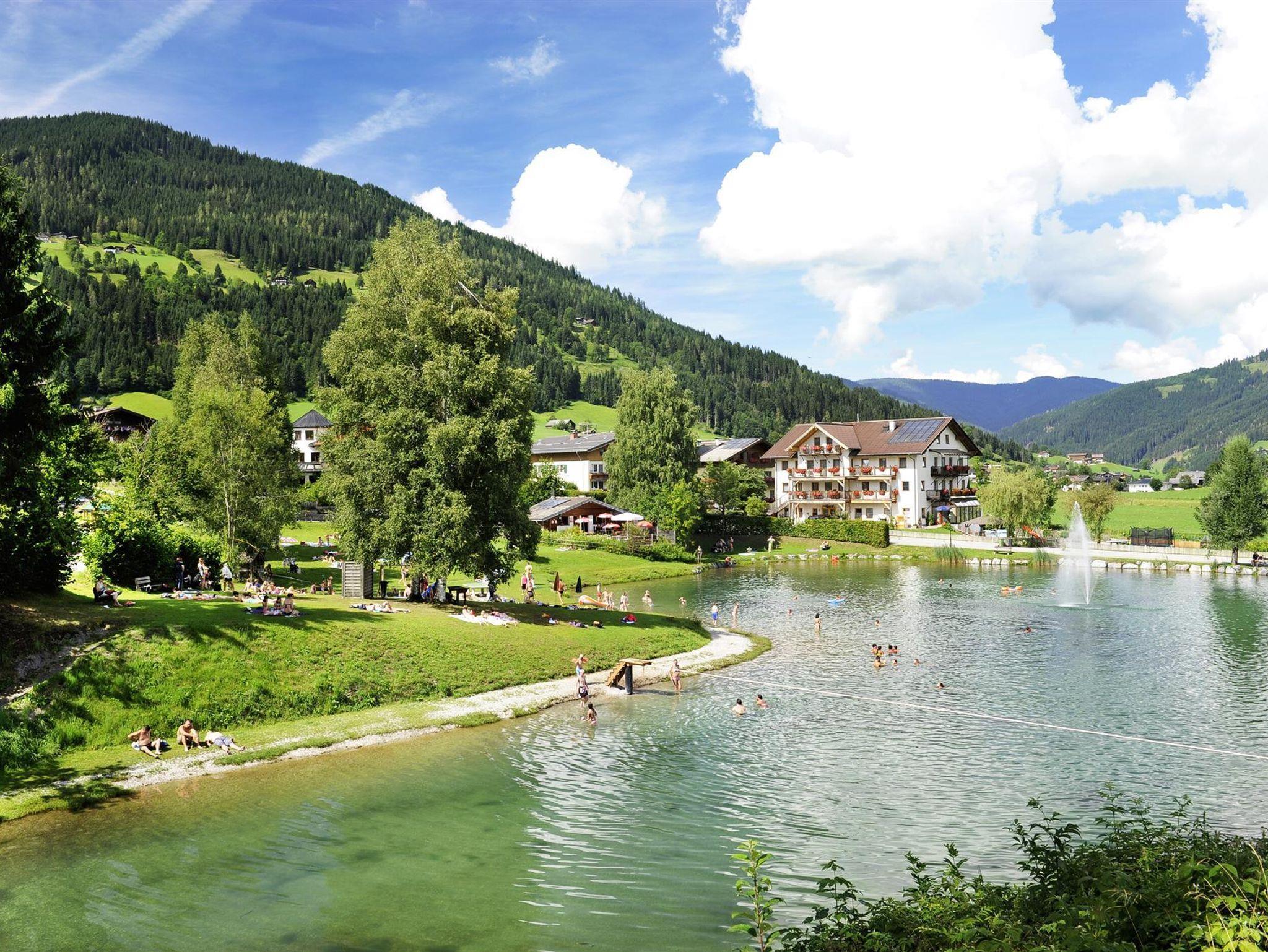 In nur 300 m Entfernung befindet sich ein kleiner Badesee mit Spielplatz und großzügiger Liegewiese. Der kostenlose Eintritt bietet Erholung und Spaß für Jung und Alt. Wander- und Radwege, Reitmöglichkeiten sowie die Therme Amadé befinden sich ebenfalls in der Nähe.
