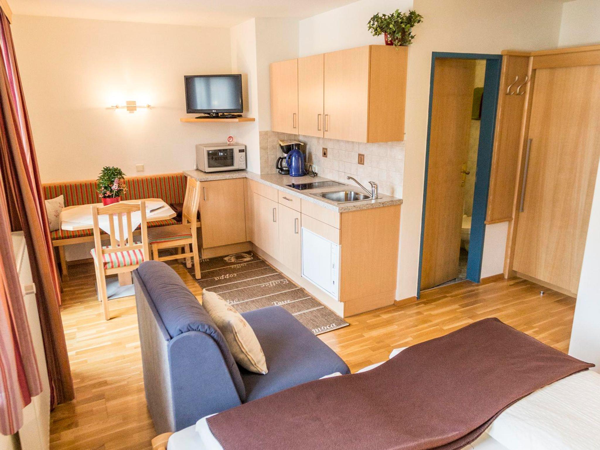 Studio mit Wohnschlafraum, Küchenzeile, Dusche, WC, Balkon, TV, Wlan