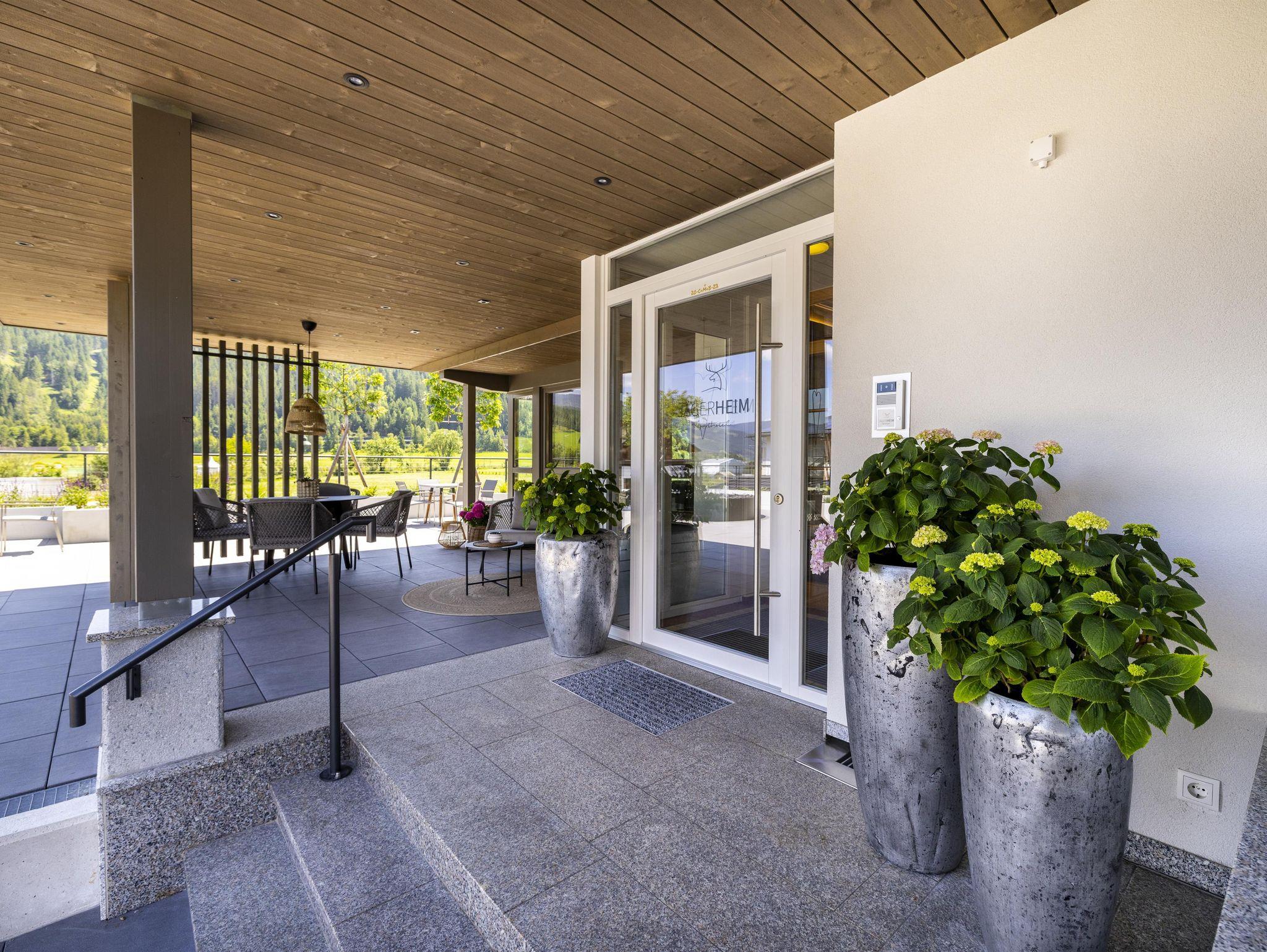 Das Jägerheim befindet sich in zentraler Lage, direkt an der Loipe, wenige Gehminuten von der Kabinenbahn entfernt, Skibushaltestelle vorm Haus. Die Appartements und Zimmer sind komfortabel eingerichtet. Das Haus bietet auch einen schönen Wellnessbereich mit Sauna, Infrarotkabine und Ruheraum, sowie eine Parkgarage. Morgens werden Sie mit einem reichhaltigem Frühstücksbuffet verwöhnt. Auf Wunsch sind die Appartements auch mit Frühstücksbuffet buchbar.