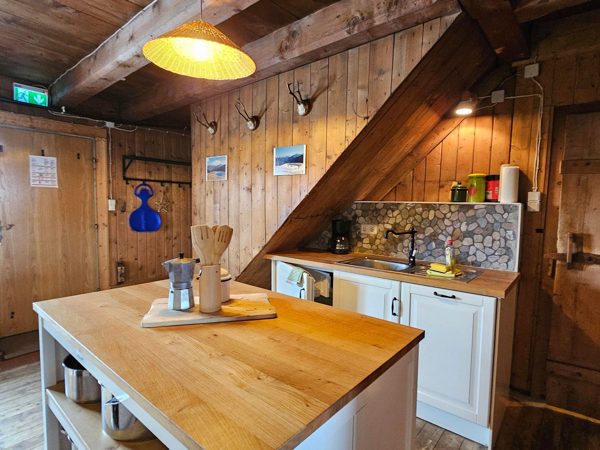 • 1 Wohn- & Essbereich mit voll ausgestatteter Küche (inkl. Kaffeemaschine, Geschirr, Toaster, teilw. Geschirrspülmaschine), Schlafcouch und Sitzecke