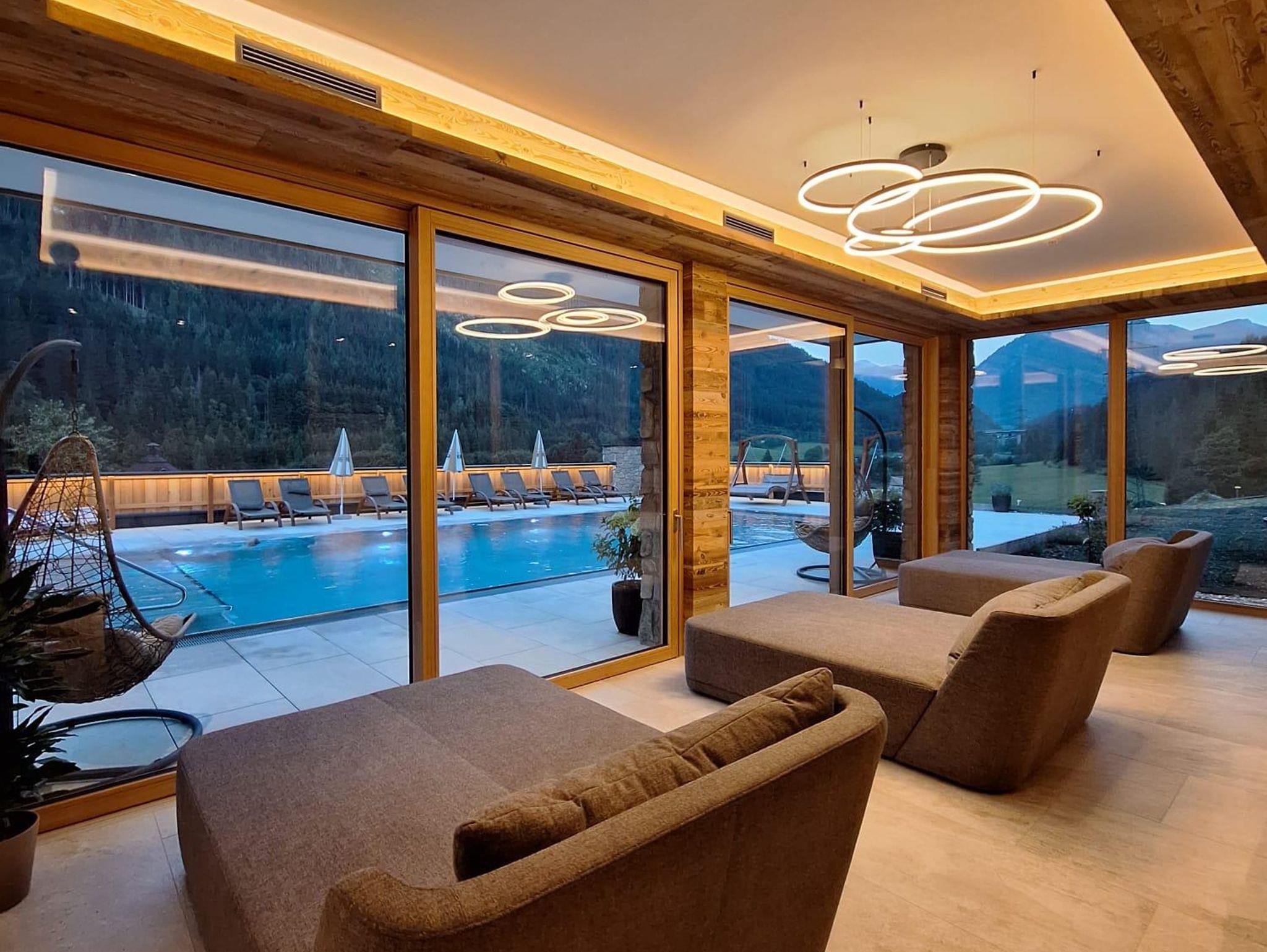 Wellness & Entspannung Unser neuer Wellnessbereich mit zwei Saunen, beheiztem Outdoor-Pool und einem Ruheraum lädt zum Relaxen ein.