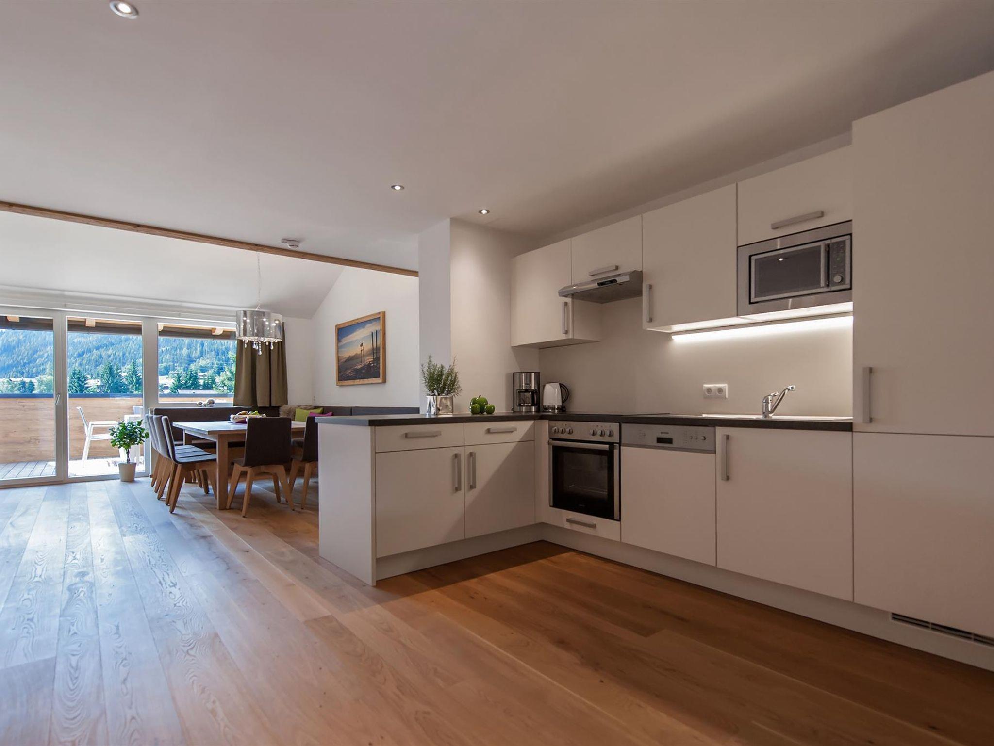 Ideal für 8 bis 12 Personen, Wohnen über den Dächern auf 2 Stockwerken, mit neuer, comfortabler Ausstattung, 5 Schlafzimmer mit jeweils eigenem Bad (Dusche/WC) u TV, Zustellbetten, große, vollausgestattete Küche mit Kochinsel, Geschirrspüler, Mikrowelle, 4er Cerankochfeld, Backrohr, Kaffeemaschine, Wasserkocher, Geschirr und Besteck, Lounge mit 55 Zoll-TV, südseitig ausgerichete Terrasse