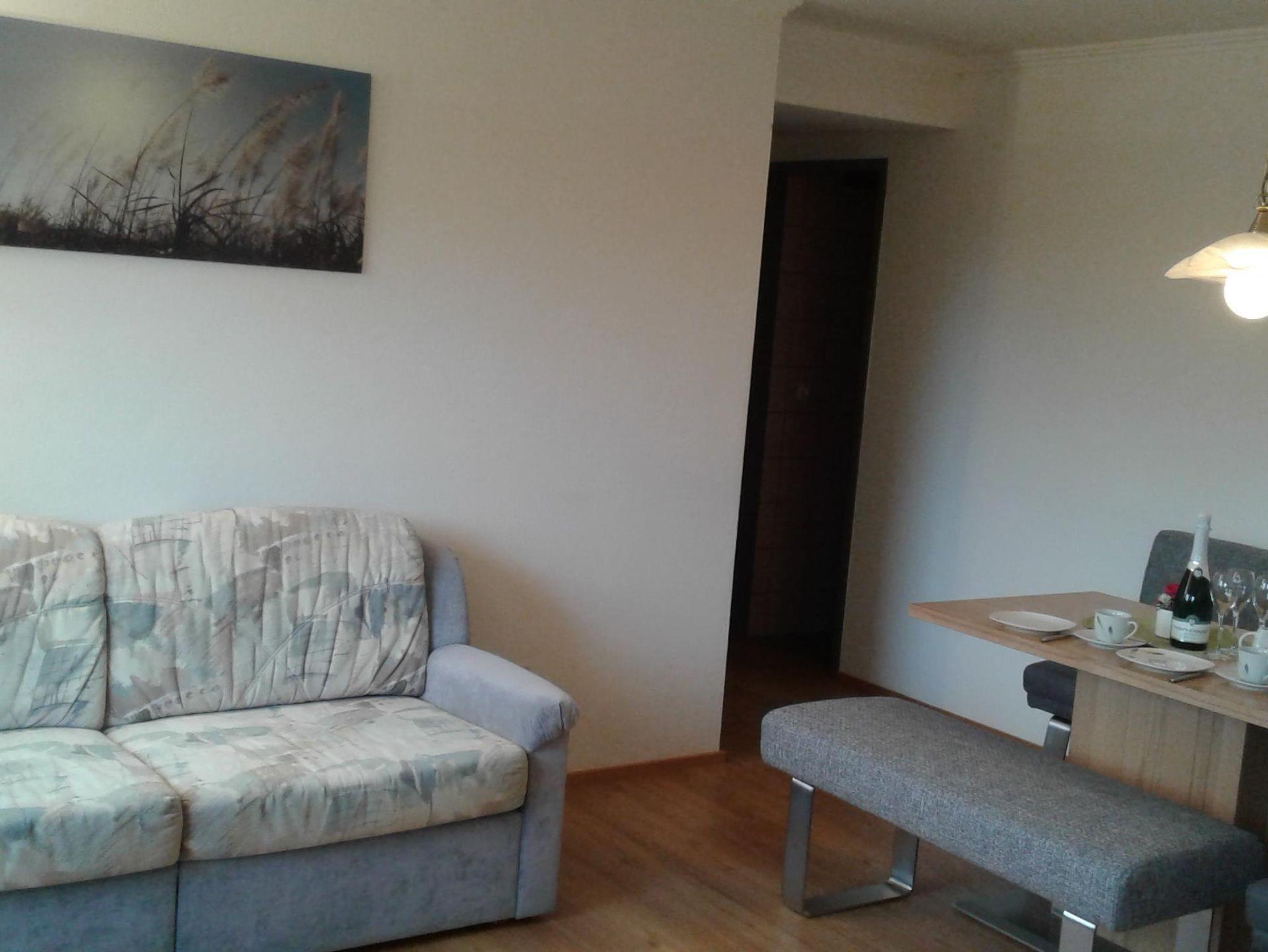 Die Fewo B besteht aus einem Vorraum mit Garderobe, Wohnküche mit Sofa,
