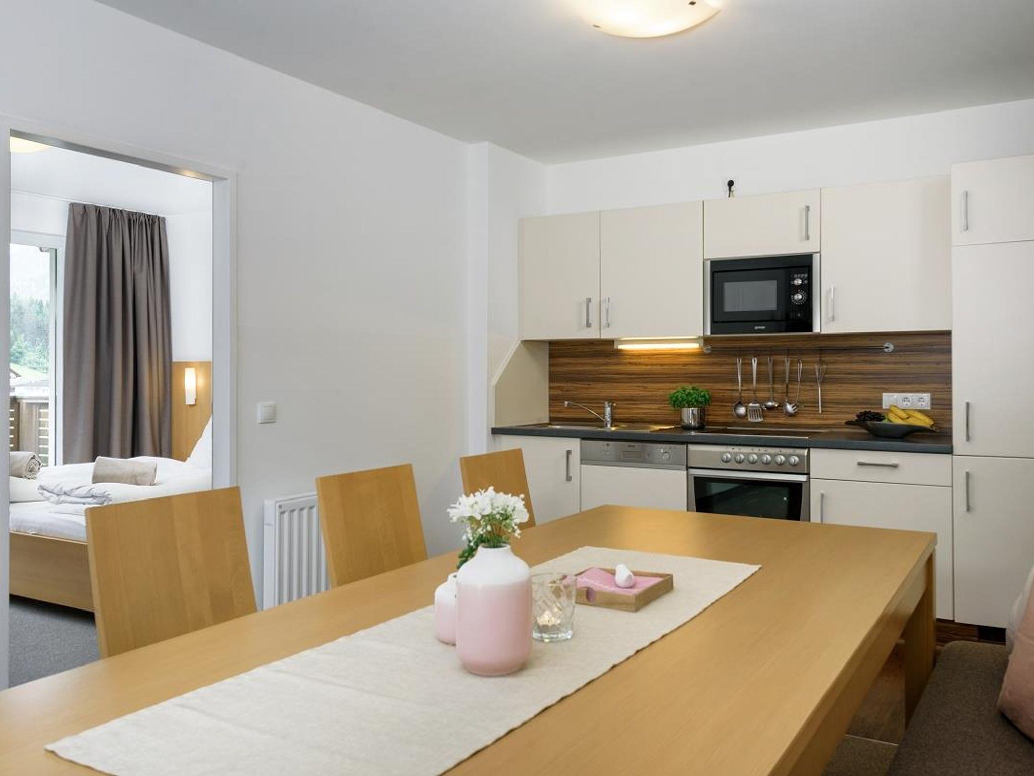 Ideal für 6 bis 8 Personen, mit moderner und „comfortabler“ Ausstattung, 3 Schlafzimmer mit jeweils eigenem Bad (Dusche und WC) und TV, 1 Wohnschlafraum mit ausziehbarer Couch und TV, zusätzliches WC im Eingangsbereich, vollausgestattete Küche mit Geschirrspüler, Mikrowelle, Backrohr, 4er Cerankochfeld, klassische Kaffeemaschine, Wasserkocher, Geschirr und Besteck, Balkon