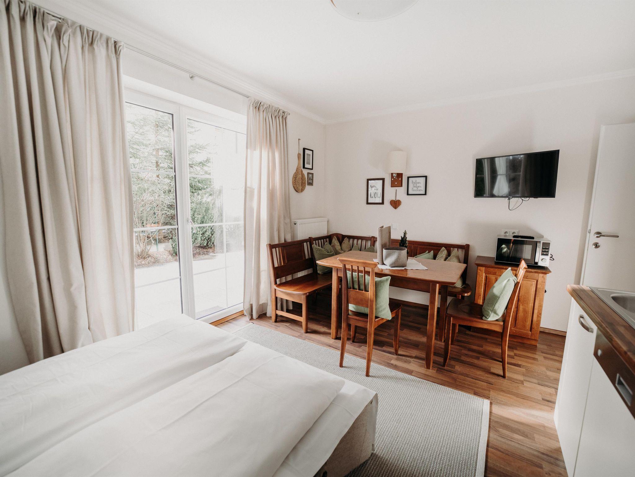 Die Appartements sind modern-alpin gestaltet. Alle Appartements verfügen über einen Balkon oder eine Terrasse.