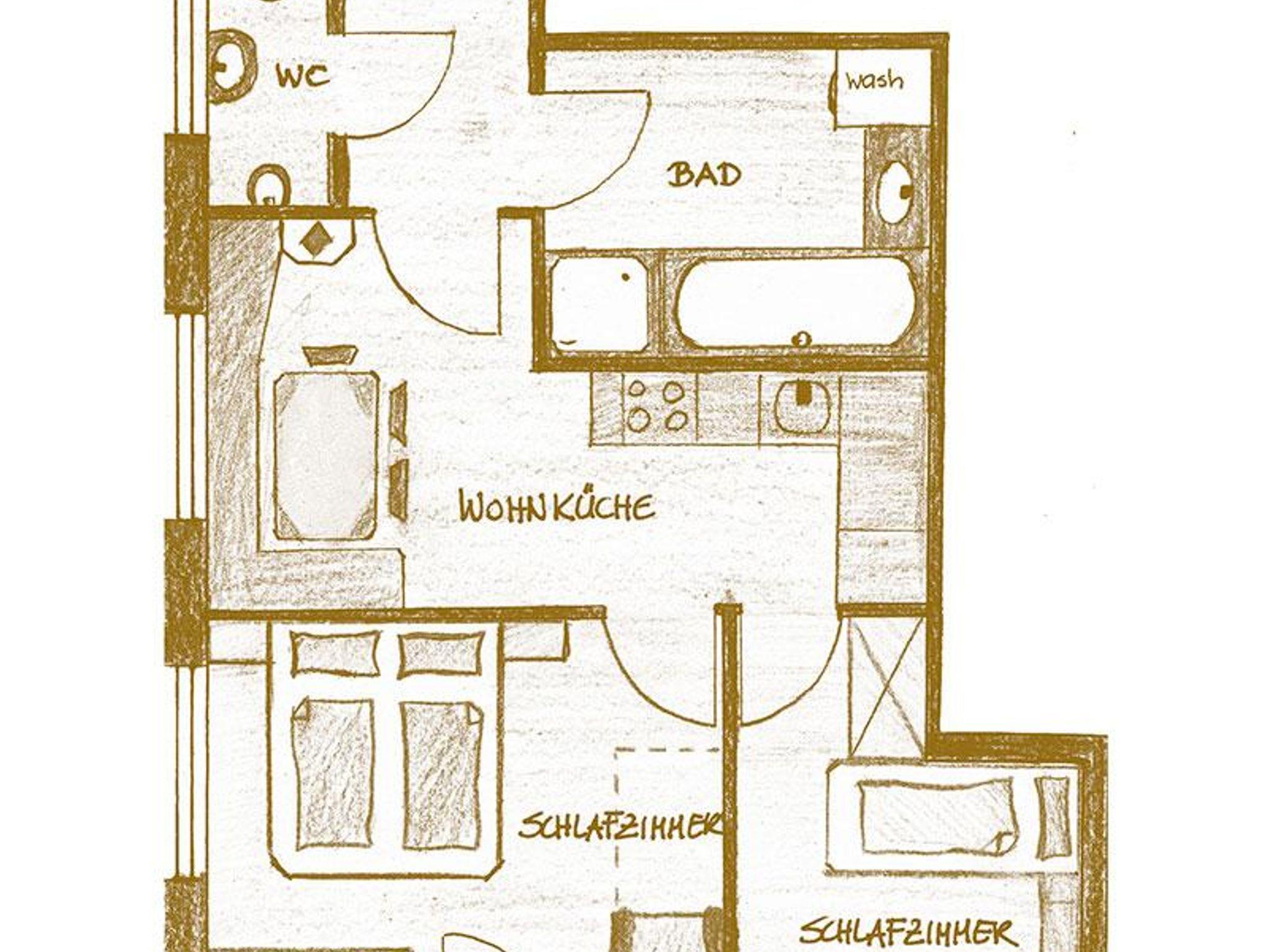 Die Wohnung besteht aus 1 Vorraum mit Skidepot und Schuhtrockner, einem großzügigen Badezimmer (Badewanne-Whirlpool, Dusche, Fön, Waschmaschine), einer Toilette, ländlich voll eingerichteter Küche mit Essbereich, einem Kachelofen mit Kuschelecke und 2 getrennten Schlafzimmern (2 x 3 Betten möglich). Die Wohnung mit Terrasse hat einen direkten Gartenzugang. Vorhanden sind: Flat-Kabel-TV, Radio, Safe, Fön; Küchenzeile mit Geschirrspüler, Backofen, Spülbecken, Kochplatten, Kühlschrank mit Gefrierfach, Mikrowelle, Kaffeemaschine, Wasserkocher, Toaster, Inventar, Bettwäsche, ausreichend Bade- und Handtücher, Geschirrtücher und Spülmittel, ...