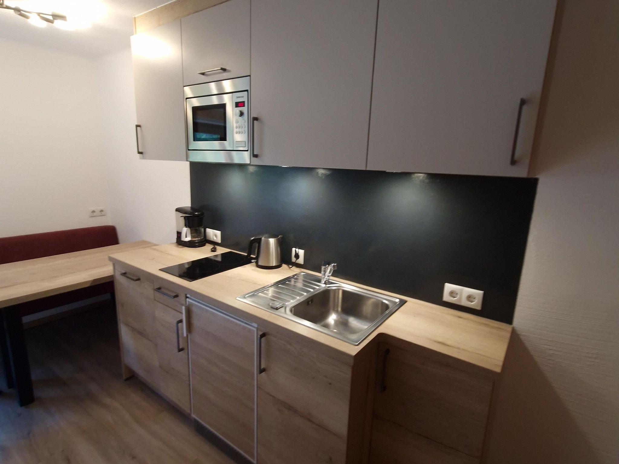 ca. 25 m², Wohn-Schlafraum für 2-3 Personen mit einem Doppelbett, einem Ausziehsofa, Kochnische, Sitzecke, Bad mit Dusche und Wanne, Kabel-TV, W-LAN, Balkon