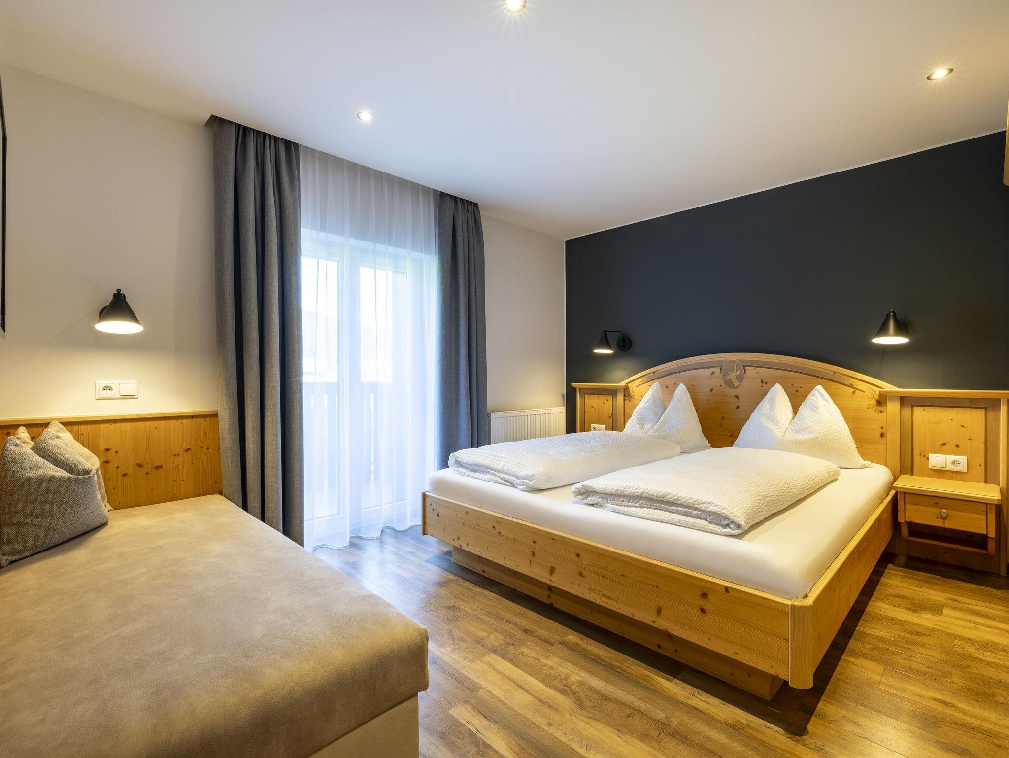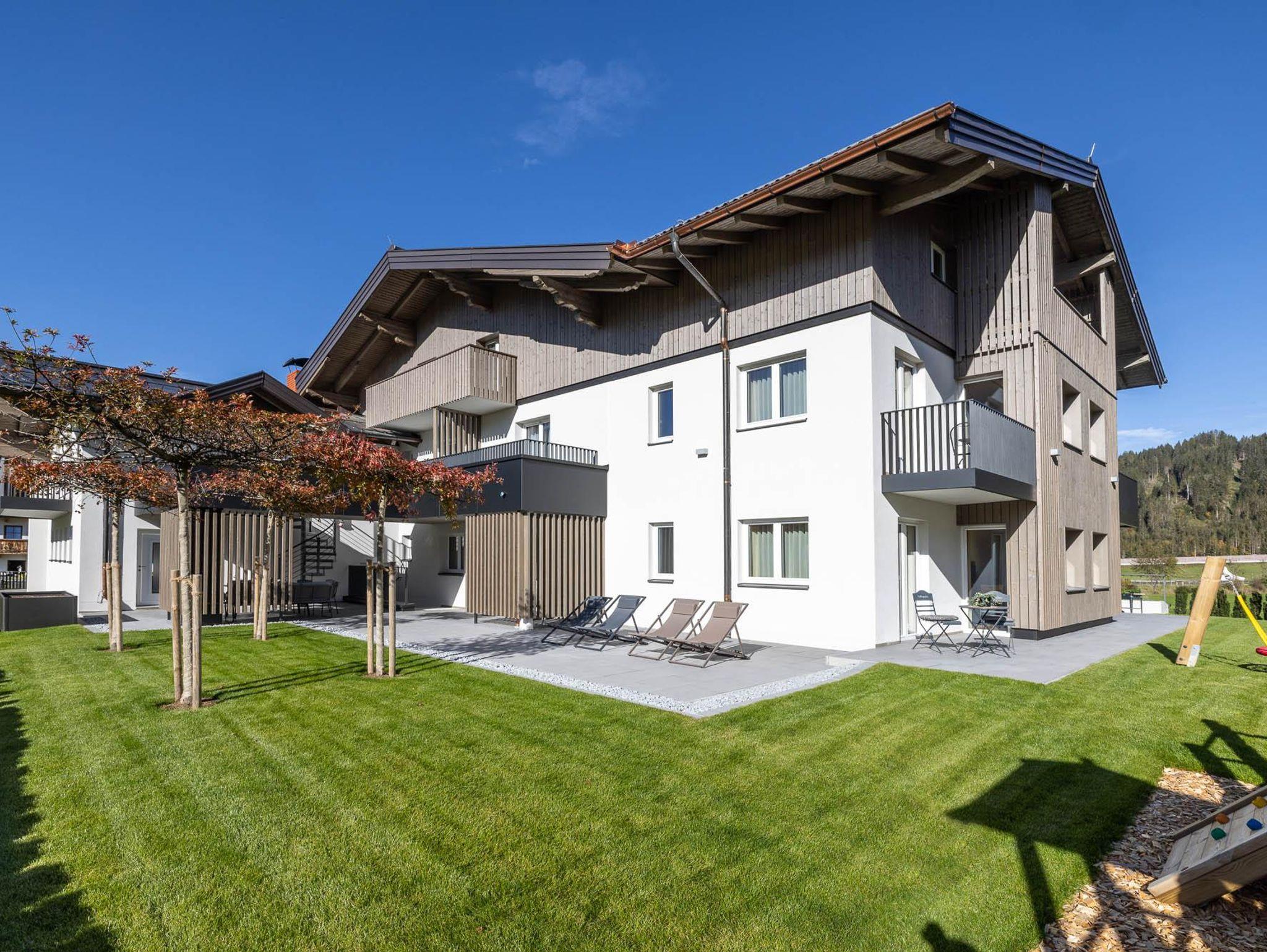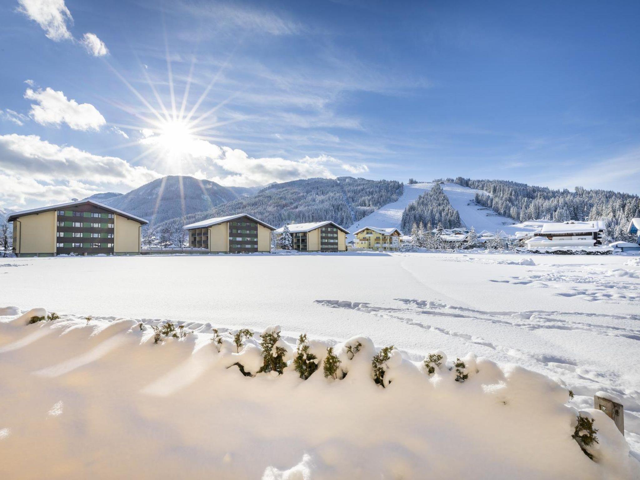 Das Typ A Superior (ca. 30 m²) ist ein zweiräumiges Appartement und eignet sich für zwei Erwachsene oder eine Familie mit einem Kind (Blick auf die Skipisten von Flachau, entweder mit Gartenterrasse oder teilweise Balkon). Es verfügt über ein Doppelbett, ein Extrabett, einen separaten Wohnbereich mit Küchenzeile und Sitzgarnitur, ein Badezimmer mit Dusche und WC, kostenlosen Zugang zu WiFi, einen Zimmersafe sowie Kabel-TV.
