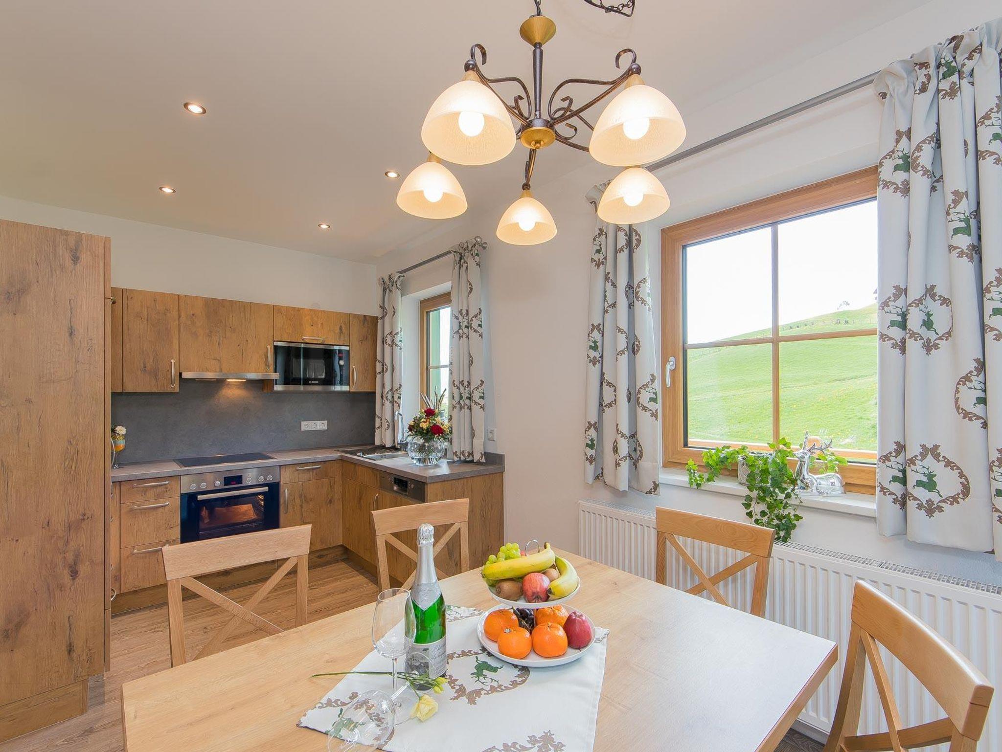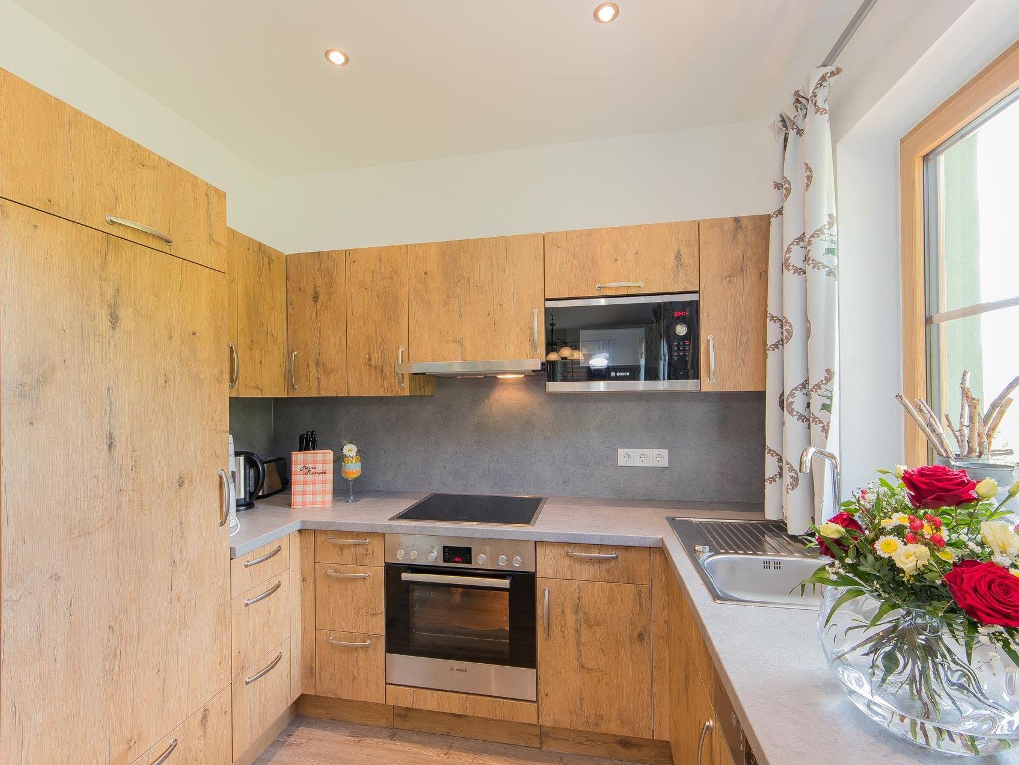 • voll ausgestattete Küche mit 4-Platten Cerankochfeld inkl. Backrohr, Geschirrspüler, Kühlschrank mit Gefrierfach, Mikrowelle, Wasserkocher, Toaster, Kaffeemaschine