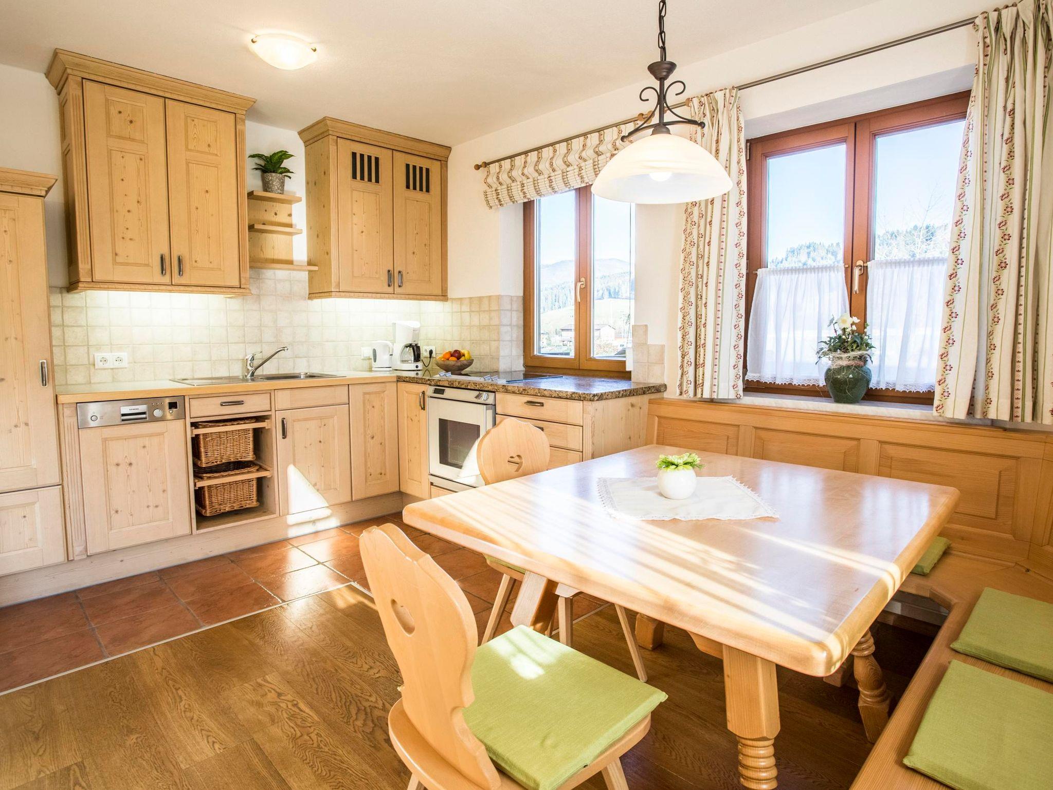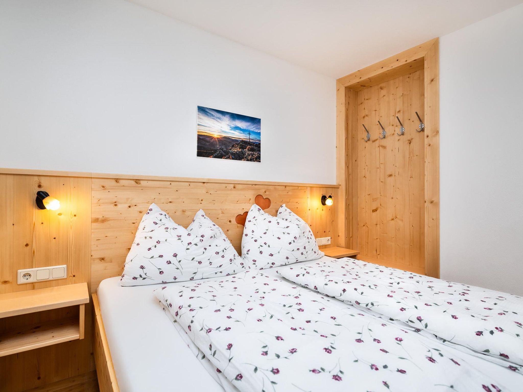 Die Ferienwohnung ist ausgestattet mit Küche, Bad, WC, einem Vorraum und 2 Schlafzimmern mit Doppelbetten. Auf Anfrage stellen wir gerne Gitterbett und Hochstuhl für Sie bereit. Im der gesamten Ferienwohnung sind Holzböden und Fliesen verlegt.
