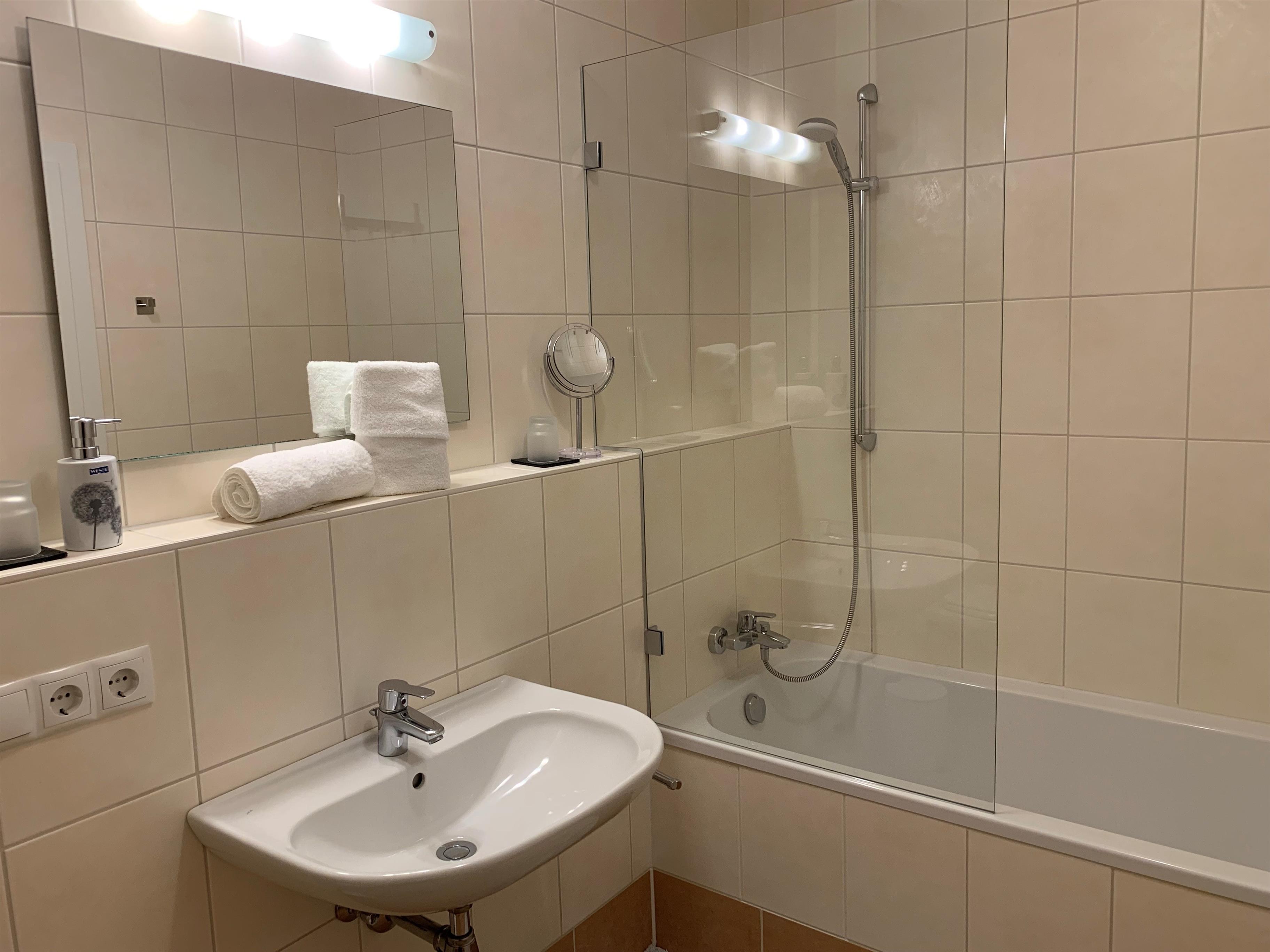 Badeværelse med bruser og badekar