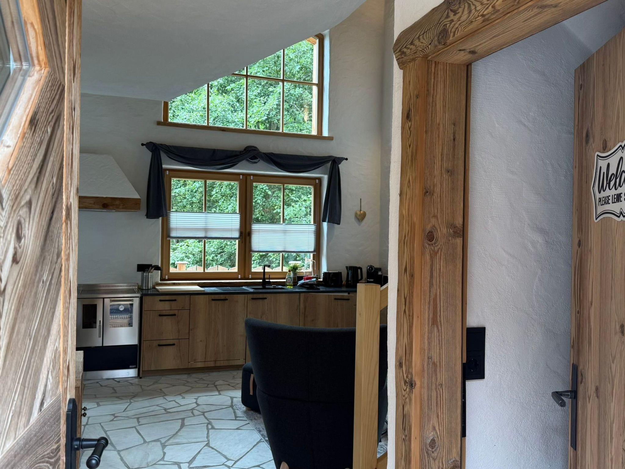 The open-plan living room with large sofa, rustic dining area and fully equipped kitchen forms the centrepiece of the chalet. Here, wood, stone and soft light merge to create a harmonious atmosphere. The kitchen invites you to cook together - sometimes modern on the hob, sometimes classic on the crackling wood cooker. While the aroma wafts through the house, the living area becomes a place for chatting, laughing together or simply relaxing after an eventful day.