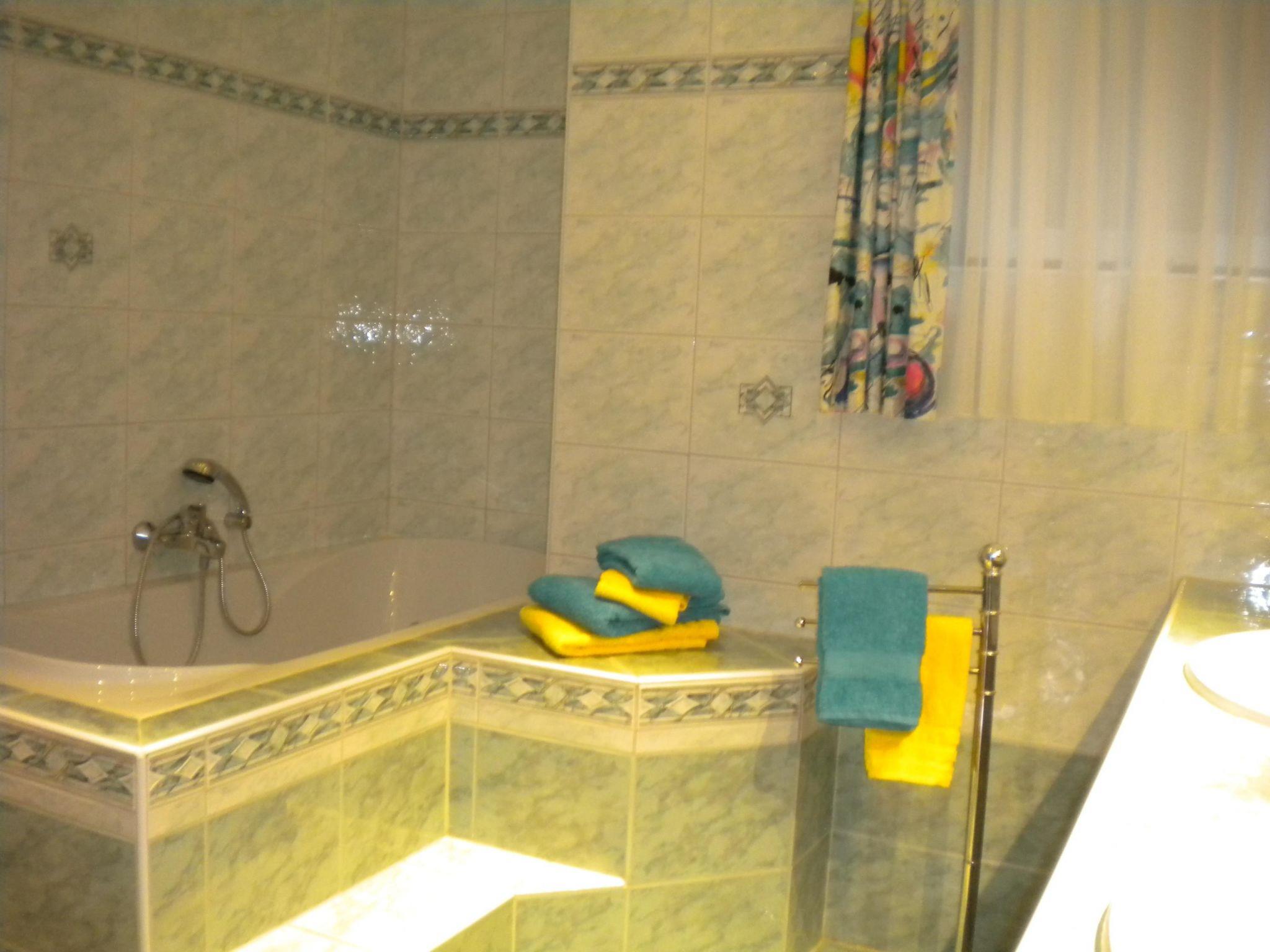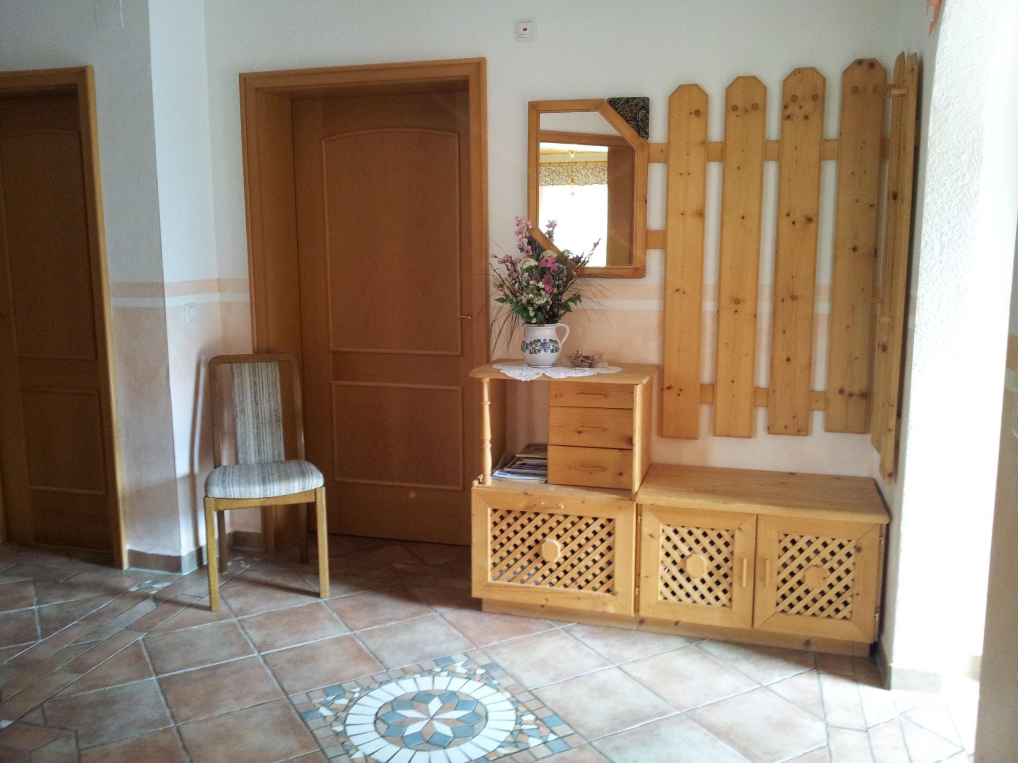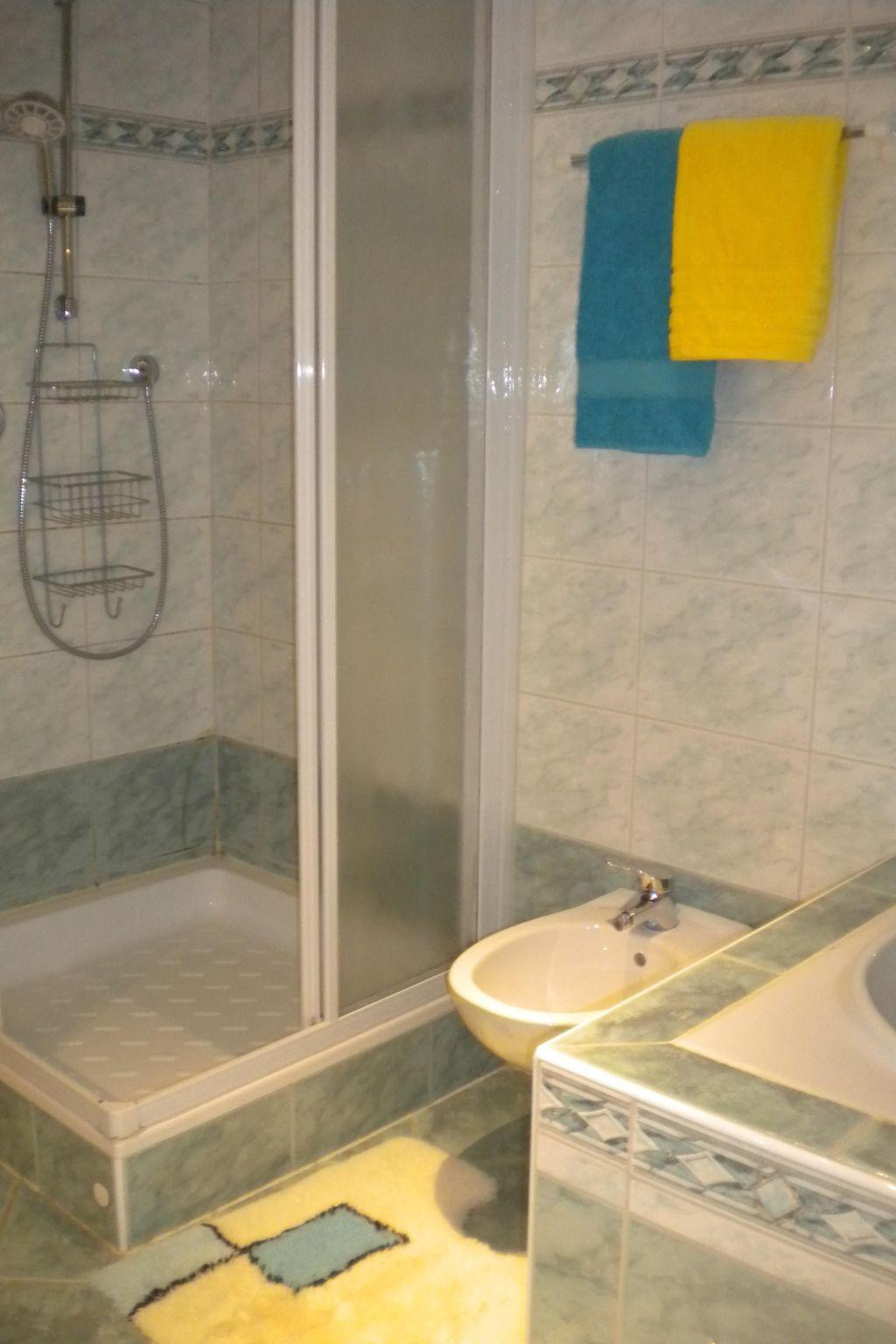 The fully furnished flat for up to ten people has its own entrance and is approx. 100m² in size. In the spacious kitchen you will find a dishwasher, cooker, coffee machine, toaster and all the important utensils for cooking and eating. There is also a cosy seating area. In the living room you will find three pull-out double sofas as well as a wall unit with stereo system, TV and SAT, video recorder and DVD player. In the first bedroom you will find a double bed and two single beds. The second bedroom also has a double bed and a single bed. There is a TV with SAT in both bedrooms. The large bathroom has a double washbasin, bathtub, extra shower, bidet and a washing machine. There is also a separate WC in the flat. The holiday flat also has underfloor heating and shutters. There is parquet flooring in the living rooms and bedrooms.