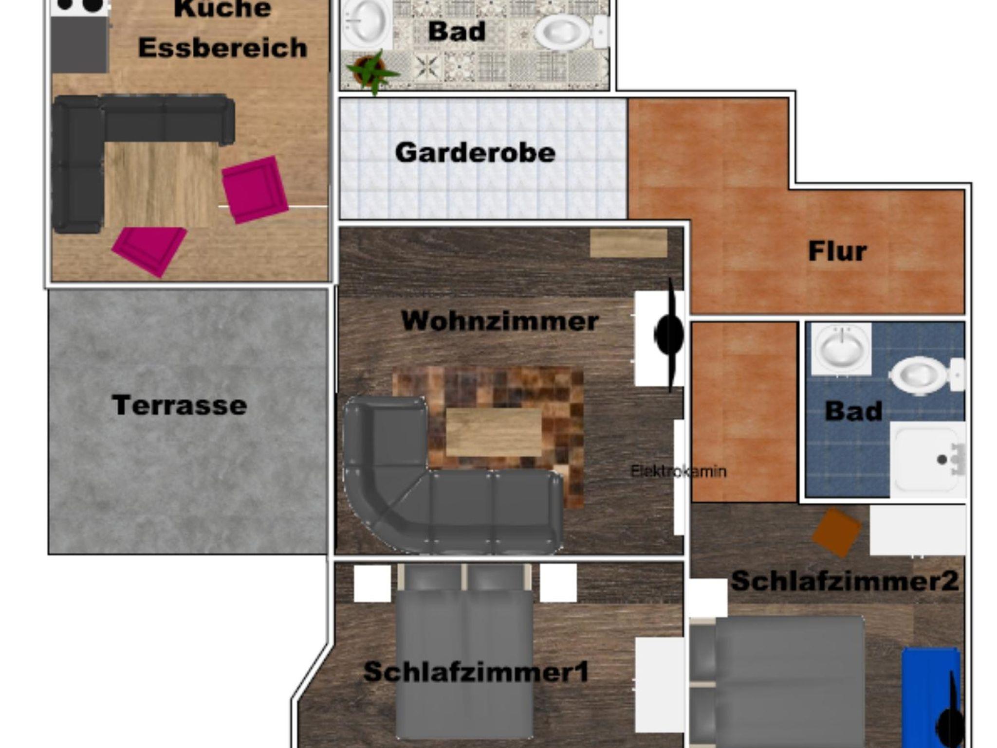 Im Erdgeschoss des Landhauses befindet sich die 105qm² große Wohnung mit neuer Terrasse und Südblick auf die Berge. Sie bietet Platz für 2 bis 6 Personen. In beiden Schlafzimmern befindet sich ein Boxspringbett und je eine Schlafcouch, ein TV und Kleiderschrank. Beide Bäder sind großzügig und verfügen über Dusche, Waschplatz, Seife und Shampoo, Fön und WC. Eine separate voll ausgestattete Küche mit Essbereich und Terrassenzugang. Das Wohnzimmer ist hell und verfügt über einen Smart TV und Sky TV Zugang, einen elektrischen Kamin und ein großes Sofa - dies kann auch als Schlafgelegenheit genutzt werden. Die Wohnung hat einen separaten Eingang.