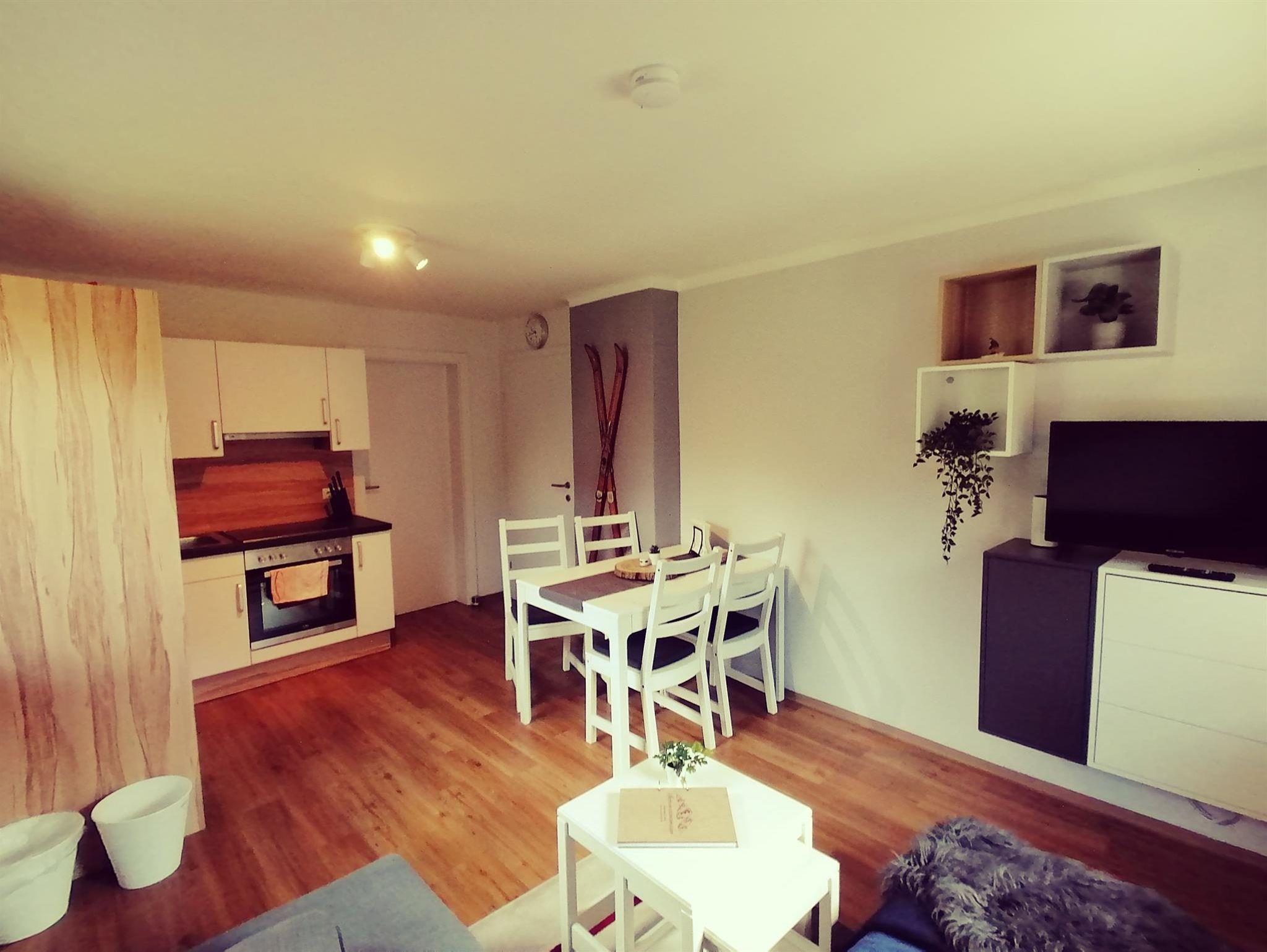Das neu gestaltete Apartment (40m²) befindet sich im Parterre des Hauses und bietet Platz für bis zu 4 Personen. Das Apartment bietet ein Schlafzimmer mit einem komfortablen Boxspringbett für 2 Personen und Flachbild-SAT-TV. Schlafsofa mit Ausziehcouch (2 einzelne Auszugsbetten) für zwei weitere Personen im Wohn-/Essbereich. Großzügiges und helles Badezimmer mit Dusche und WC (Fön vorhanden). Voll ausgestattete Küchenecke mit Senseo Kombi-Kaffeepadmaschine, Spülmaschine, Wasserkocher, E-Herd mit Backofen, Toaster und Kühlschrank. Wohn-/Essbereich mit Esstisch für 4 Personen sowie Couch und Flachbild-SAT-TV. Um die Sonne genießen zu können, steht unseren Gästen eine Terrasse mit Sitzecke zur Verfügung. Handtücher und Bettwäsche sind im Preis inklusive. Wlan kostenlos verfügbar. Haustiere nach Rücksprache im Apartment Ski möglich.