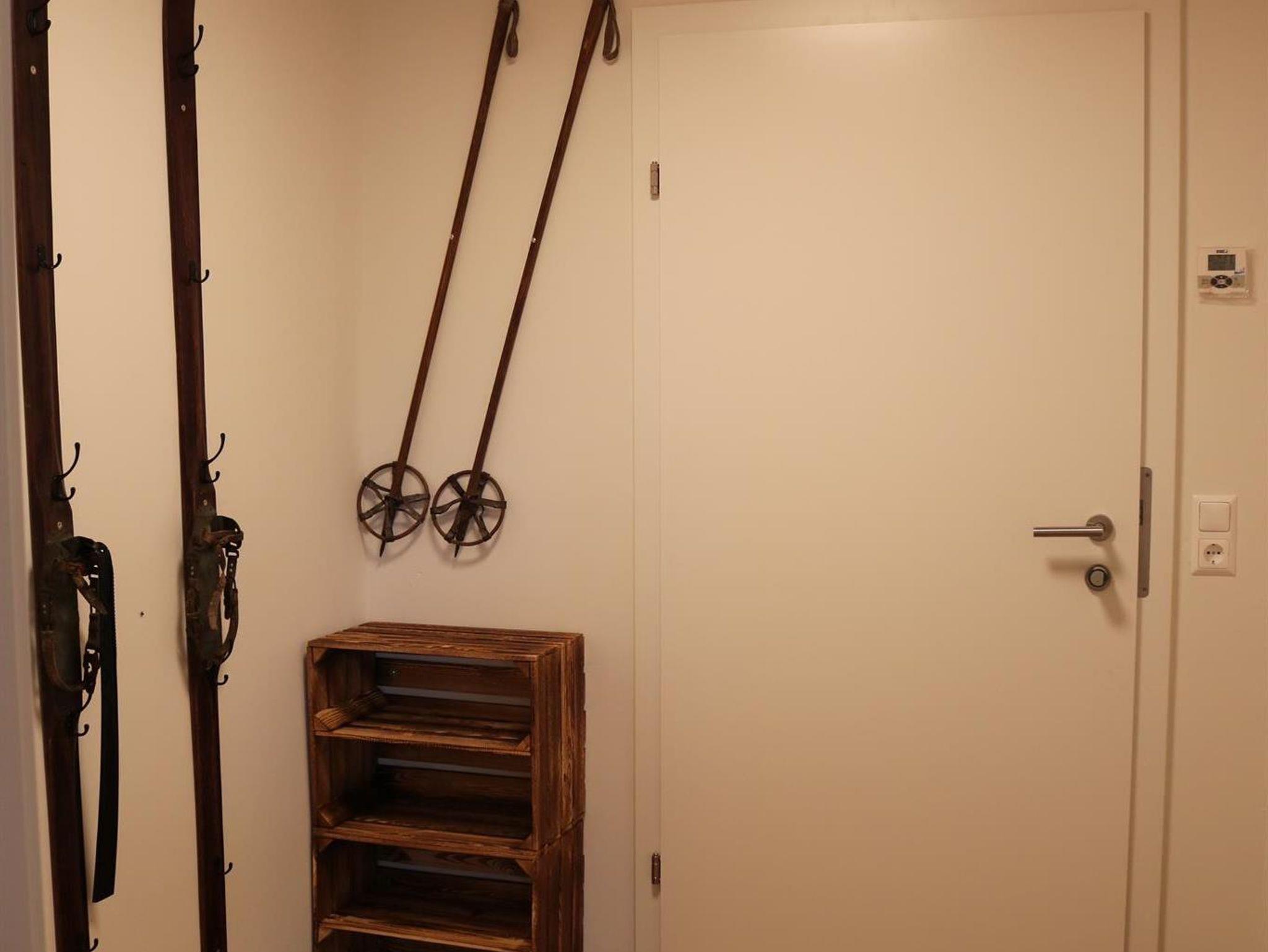 Darüber hinaus befindet sich für unsere Gäste im Kellergeschoss des Hauses ein Ski- und Trockenraum für Skischuhe und Skier mit Heißluftgebläse. Im Sommer kann man dort seine E-Bikes aufladen.