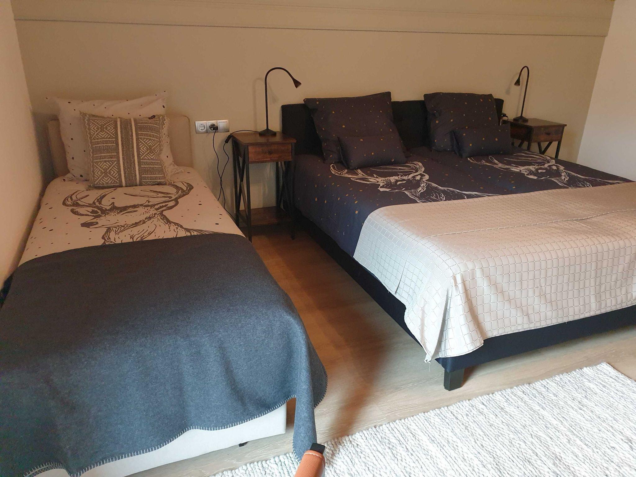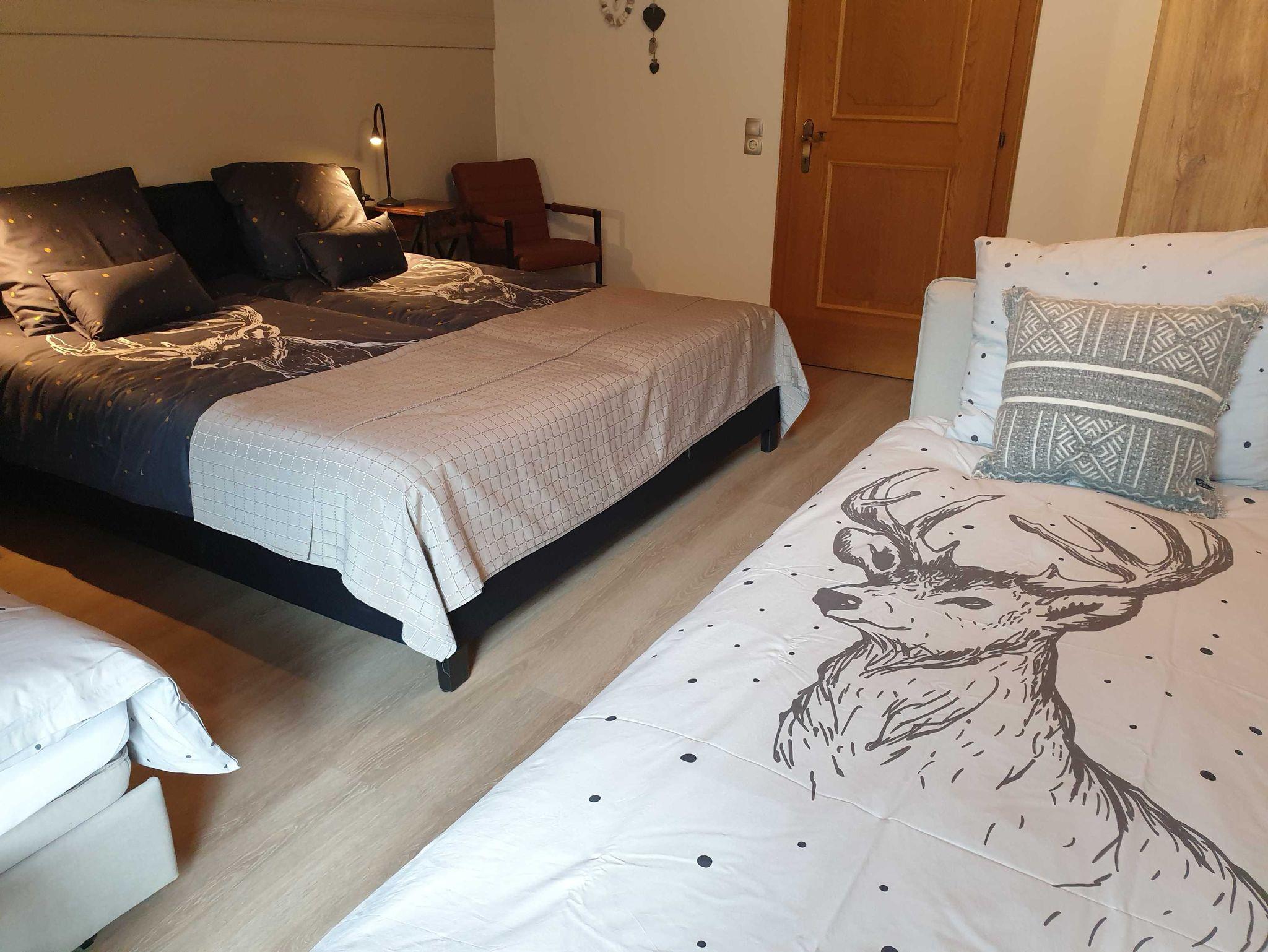 Mit möglichkeit für zwei Zusatz Sofabetten ( 80 x 200 ). Bettwäsche : Bambuskissen, anti-allergische Bettdecke. Direkte Zugang zu dem Grossen Balkon.