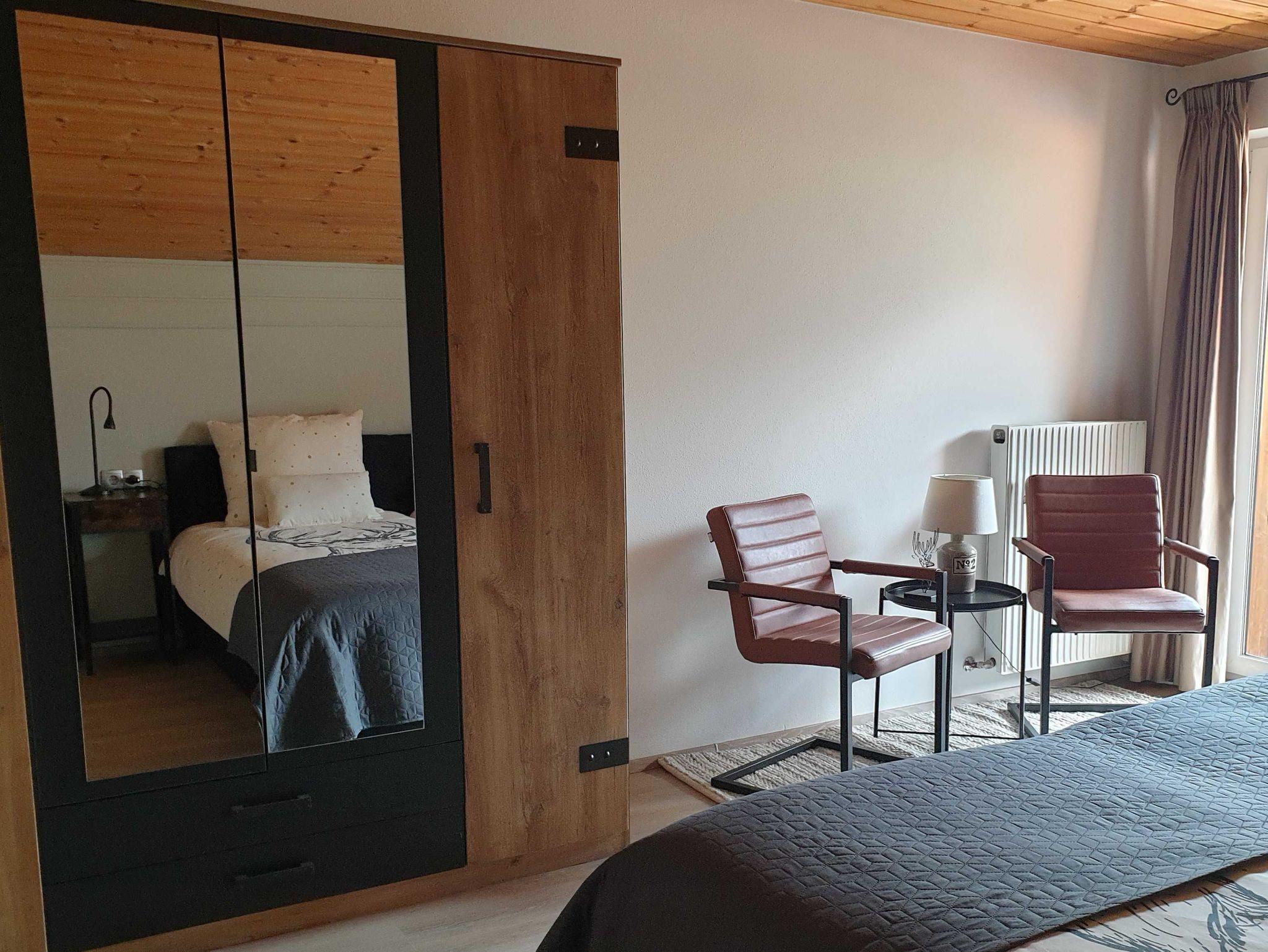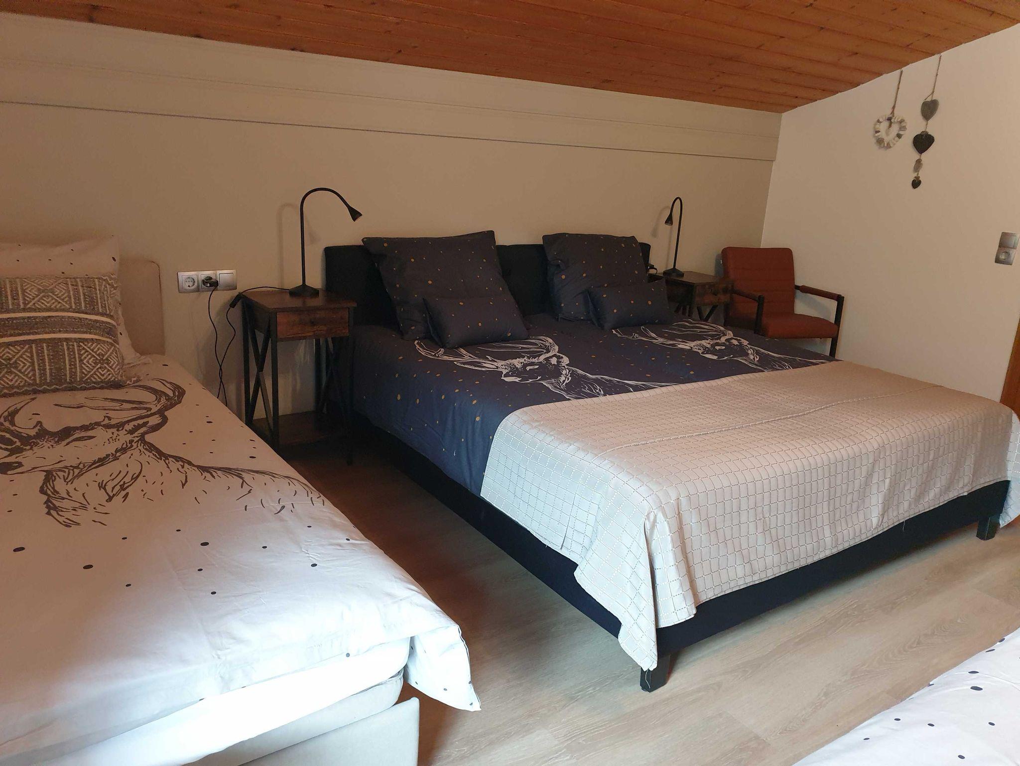 Doppelzimmer-# 1 : Doppelbett ( 180 x 200 ), Kleiderschrank und Sitzecke. Steckdose in Bettnähe.