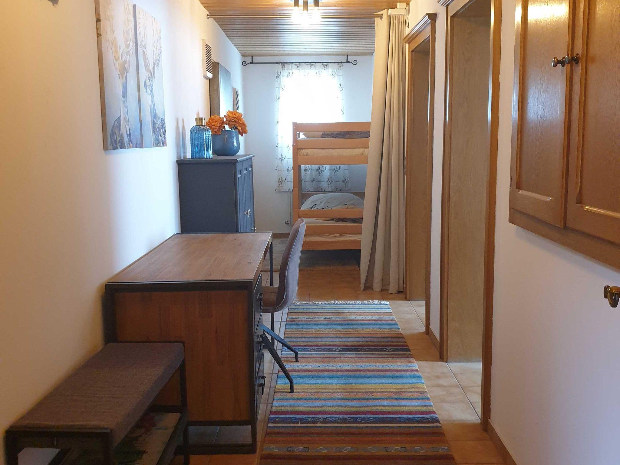 Bettwäsche : Bambus kissen, anti-allergische Bettdecke. Separate Schlafecke im Flur, mit Etagenbett ( 90 x 200 ), Schreibtisch und Kleiderschrank. Bettwäsche : Bambus kissen, anti-allergische Bettdecke.