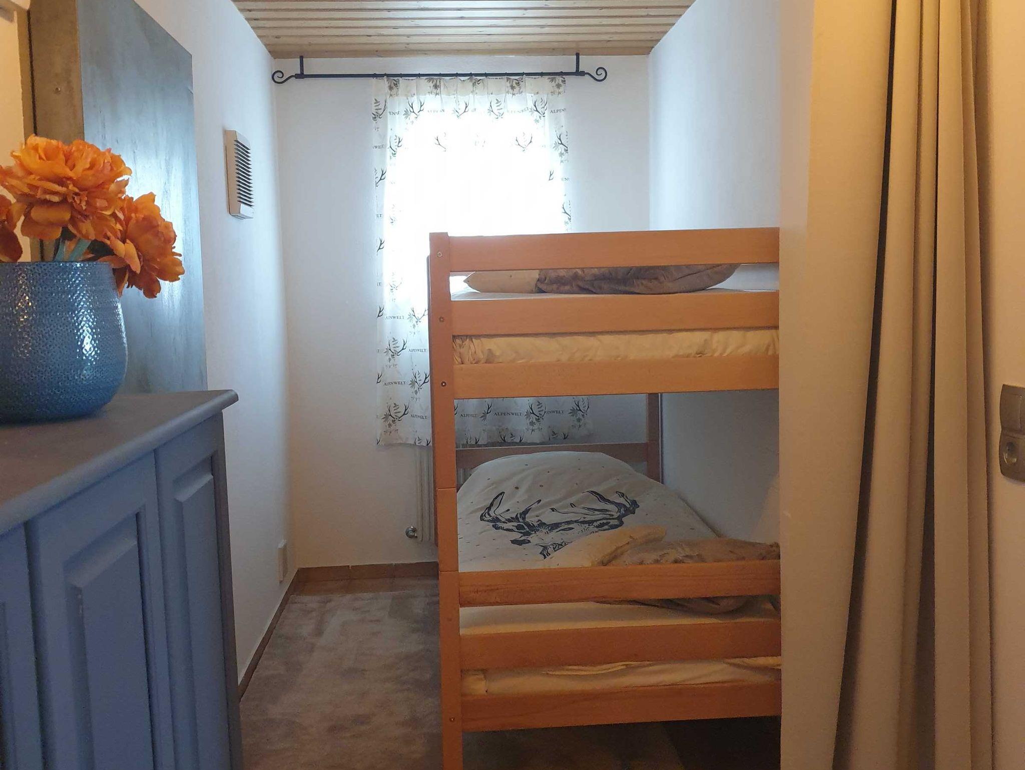 Ferienwohnung EDELWEISS, im Erdgeschoss verfügt über ein geräumige persönlich eingerichtete Wohnküche, mit gemütlichen Eckgruppe und Smart TV, ein grosses Schlafzimmer mit einer schöner Sitzecke und einem kleinen Badezimmer. Im hinteren Teil des grossen, breiten Flurs eine separate Ecke mit Etagenbett. Auch hier eine grosse private Terrasse mit Gasgrill im Garten. Dieser Ferienwohnng ist besonders geeignet für zwei Erwachsene oder eine Familie mit jüngeren Kinder.
