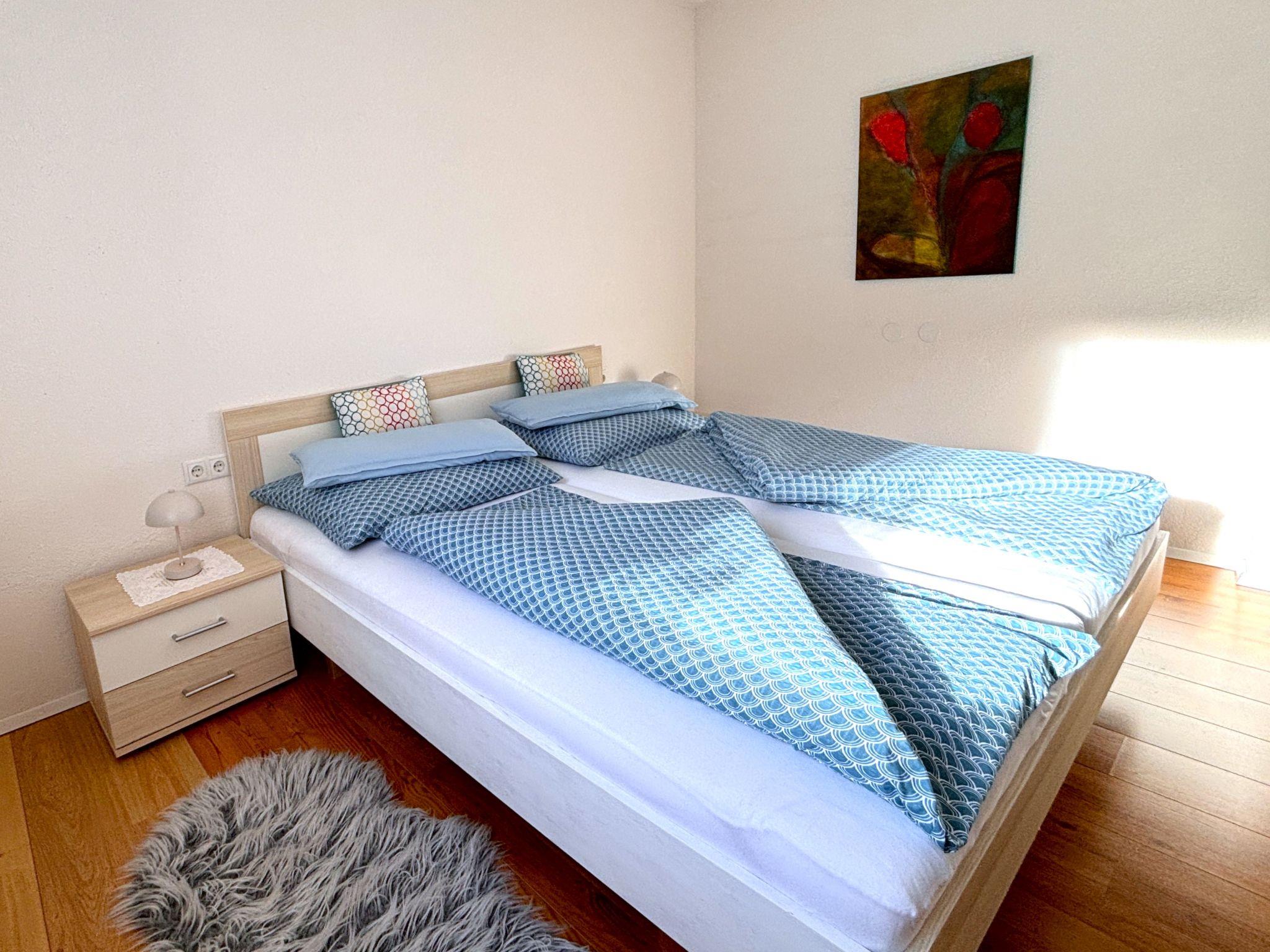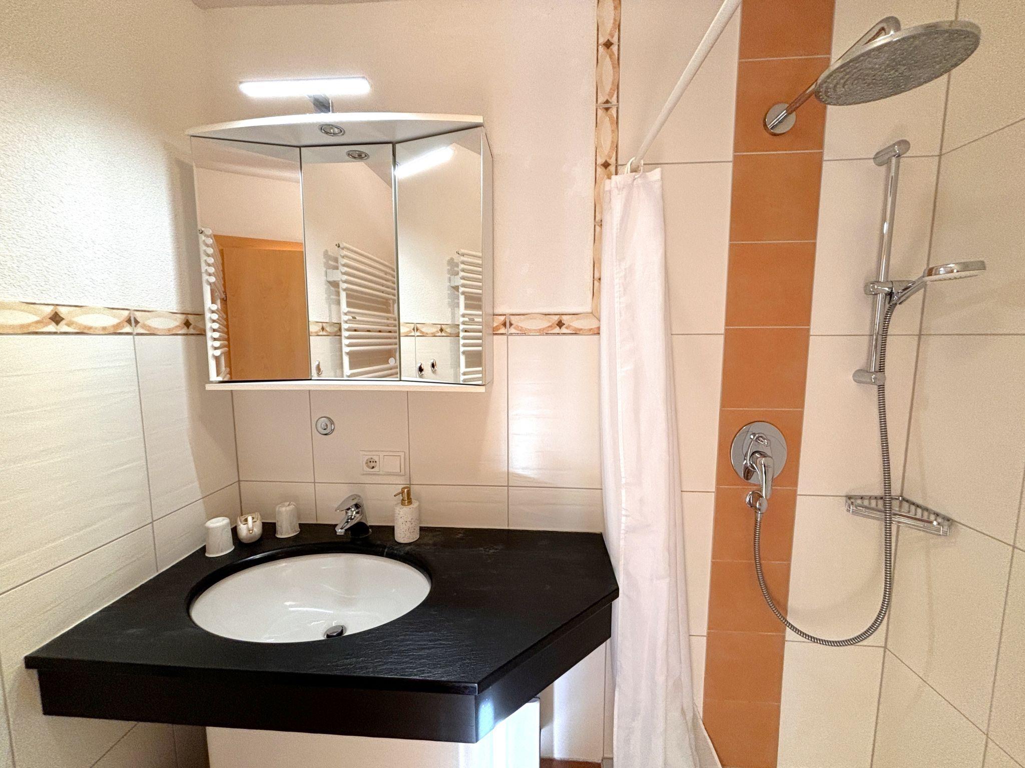 2-room apartment 34 m2, lower ground floor. Comfortable and tasteful furnishings: entrance hall. 1 double bedroom. Living/dining room with panoramic window with 1 double sofabed and satellite TV (flat screen), radio. Open kitchen (2 hot plates, toaster, kettle, electric coffee machine, combination microwave) with dining table, cable TV (flat screen). Shower/WC. Underfloor heating. Terrace roofed. Terrace furniture, barbecue. Marvellous panoramic view of the mountains and the countryside. Facilities: hair dryer. Internet (WiFi, free). Parking at the house. Please note: not suitable for small children not suitable for children under 3 years. Non-smokers only. Suitable for allergy sufferers, smoke alarm, no lift.