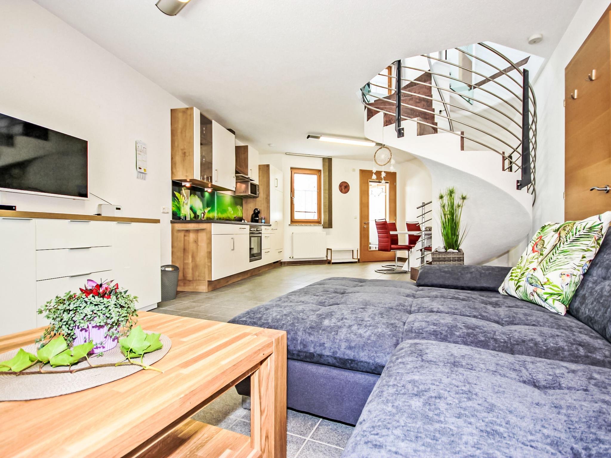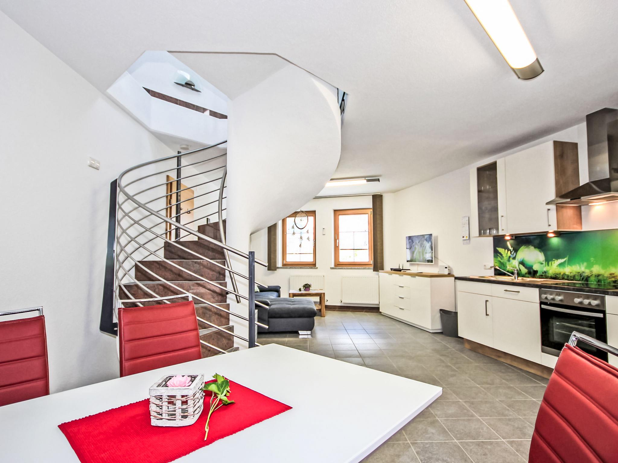 3-room apartment 70 m2 on 2 levels, on the upper ground floor. Fully renovated in 2017, beautiful and modern furnishings: entrance hall. Large living/dining room with 1 sofabed, dining table and satellite TV (flat screen). Open kitchen (oven, dishwasher, 4 ceramic glass hob hotplates, microwave, freezer, electric coffee machine). Upper floor: (spiral staircase) walk-through room with 1 double sofabed and satellite TV (flat screen). Exit to the balcony. 1 room with 1 sofabed and 1 double bed. Shower/WC. Balcony. Balcony furniture. Very beautiful view of the mountains and the countryside. Facilities: baby cot, hair dryer. Internet (WiFi, free). Please note: non-smokers only. Smoke alarm. The host provides a top high-tech equipment in the living room: Smart-TV, Blu-Ray-Player and Playstation.