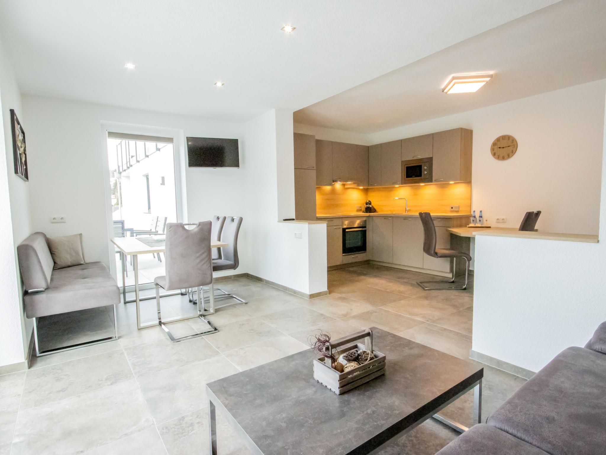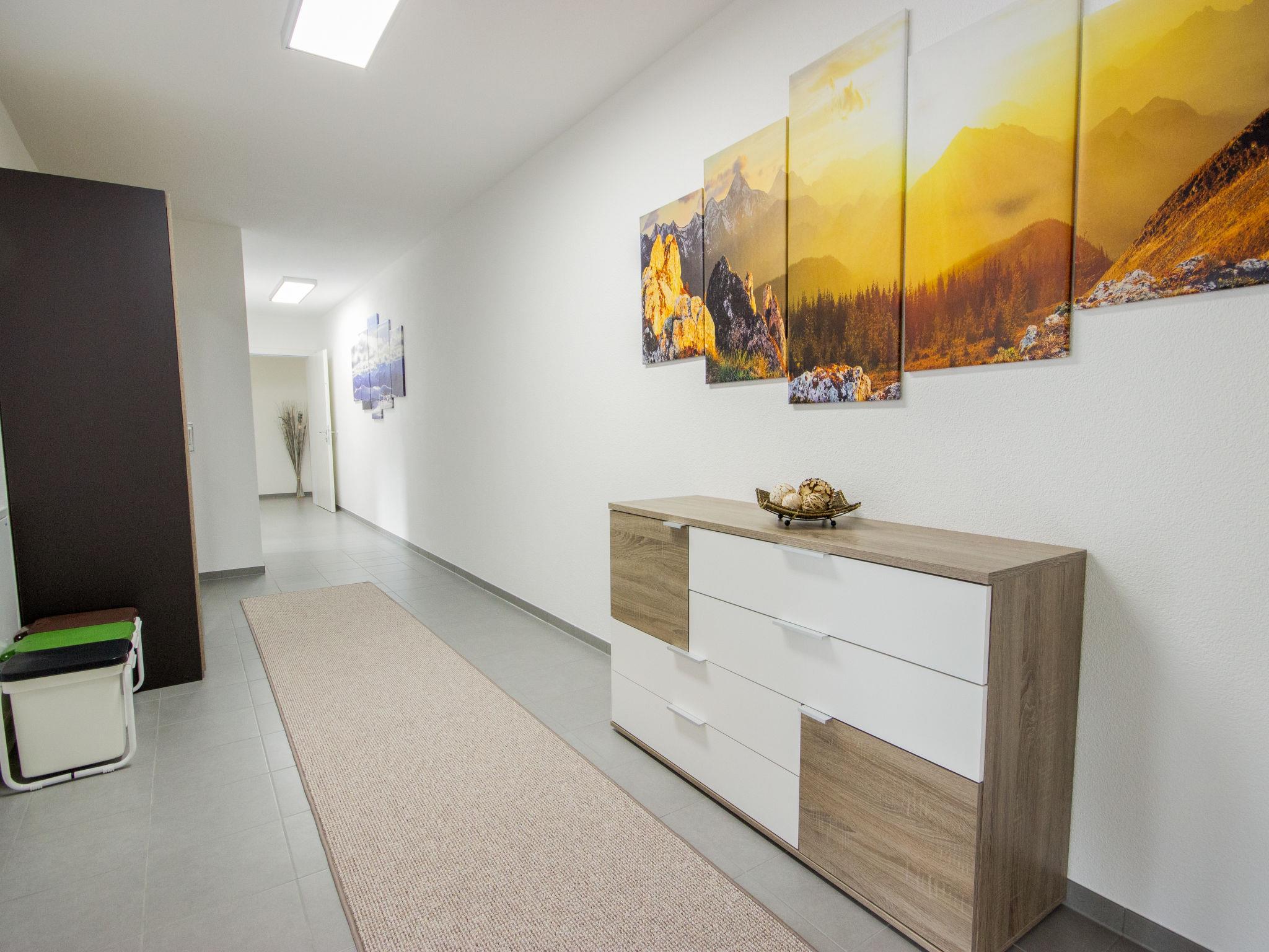"Aileen", 2-room apartment 80 m2, on the lower ground floor. Very modern furnishings: entrance hall. 1 room with 1 bed, 1 double bed and TV. Large kitchen-/living room (oven, dishwasher, 4 ceramic glass hob hotplates, microwave, freezer, electric coffee machine, Capsules for coffee machine (Padmaschine) free) with 1 double sofabed, dining nook and TV. Exit to the garden. Shower/WC. Underfloor heating. Large garden 120 m2. Terrace furniture. Very beautiful panoramic view of the mountains. Facilities: safe, children's high chair, baby cot, hair dryer. Internet (WiFi, free). Please note: non-smokers only. Smoke alarm.
