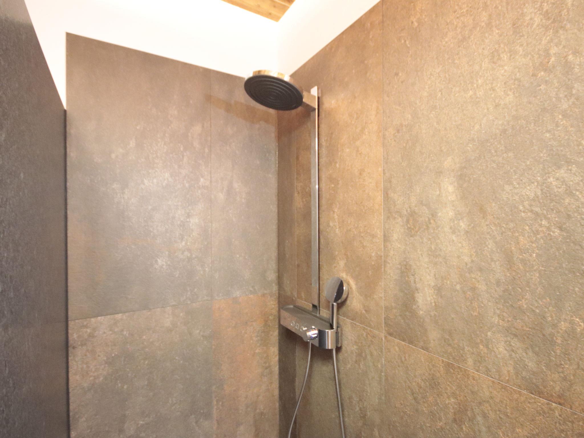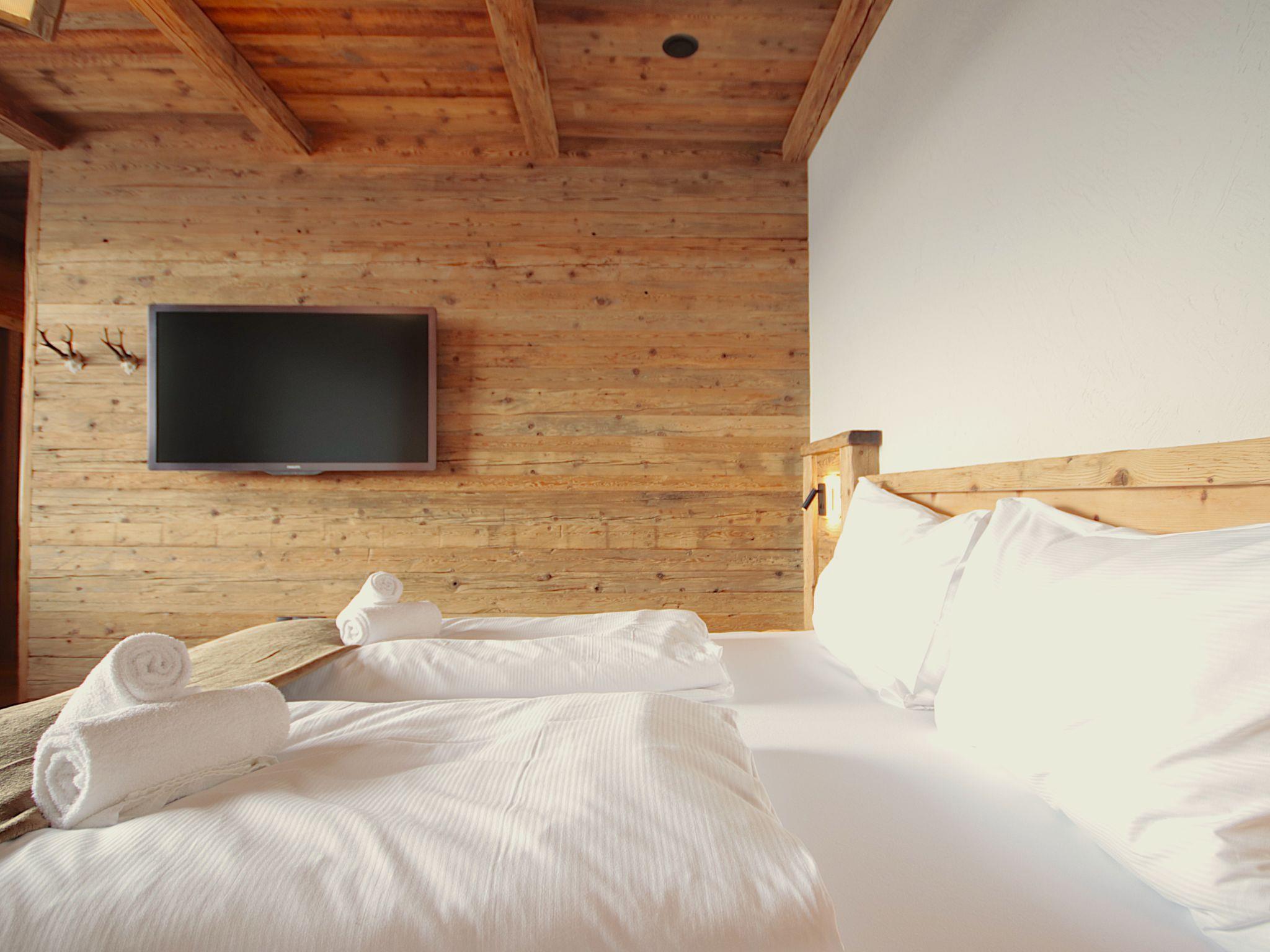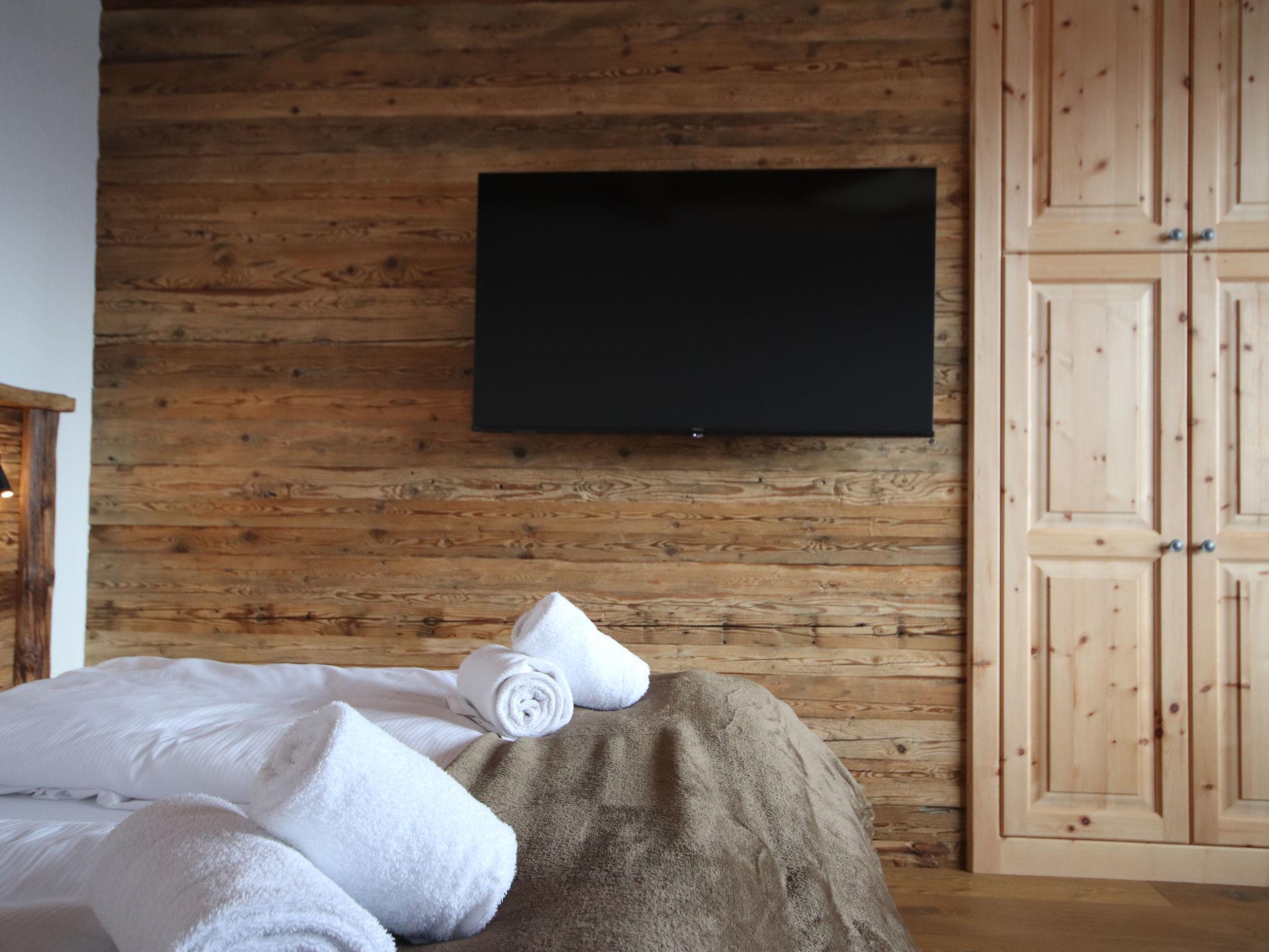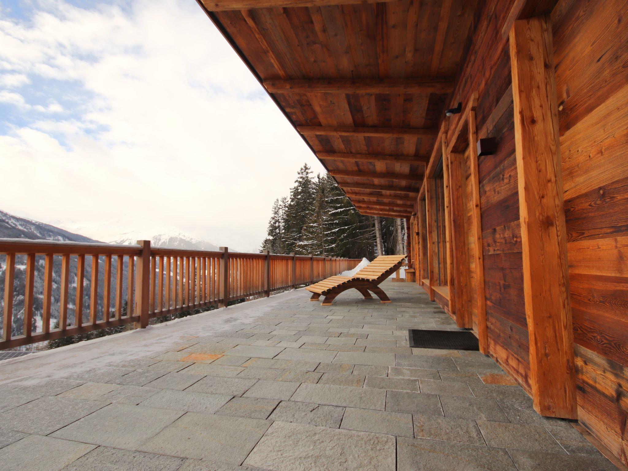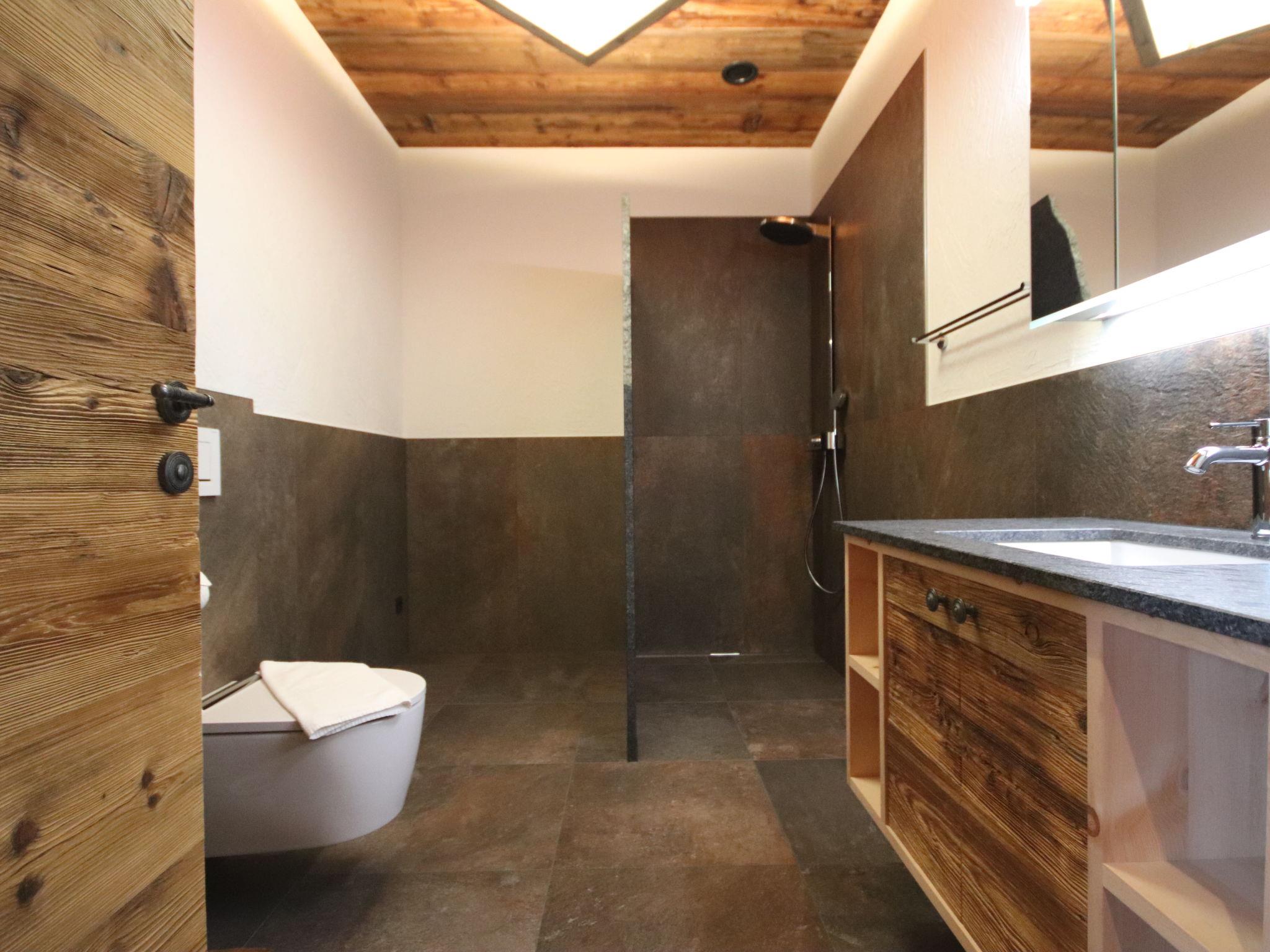 "Chalet Ebenholz", 3-room chalet 90 m2. Tasteful and stylish furnishings: living room with 1 double sofabed and TV (flat screen). 2 double bedrooms with panoramic window, each room with shower/WC, TV, flat screen and electric shutters. Open kitchen (oven, dishwasher, 4 induction hot plates, toaster, kettle, freezer, electric coffee machine) with dining table. Sep. WC. Solar energy heating. Wooden floors, natural stone floors. Terrace 150 m2. Terrace furniture, barbecue, deck chairs. Very beautiful panoramic view of the mountains and the river. Facilities: Internet (WiFi, free). Please note: non-smokers only. Smoke alarm, fire extinguisher. The gas cylinder for the barbecue is available on site after consultation with the owner.