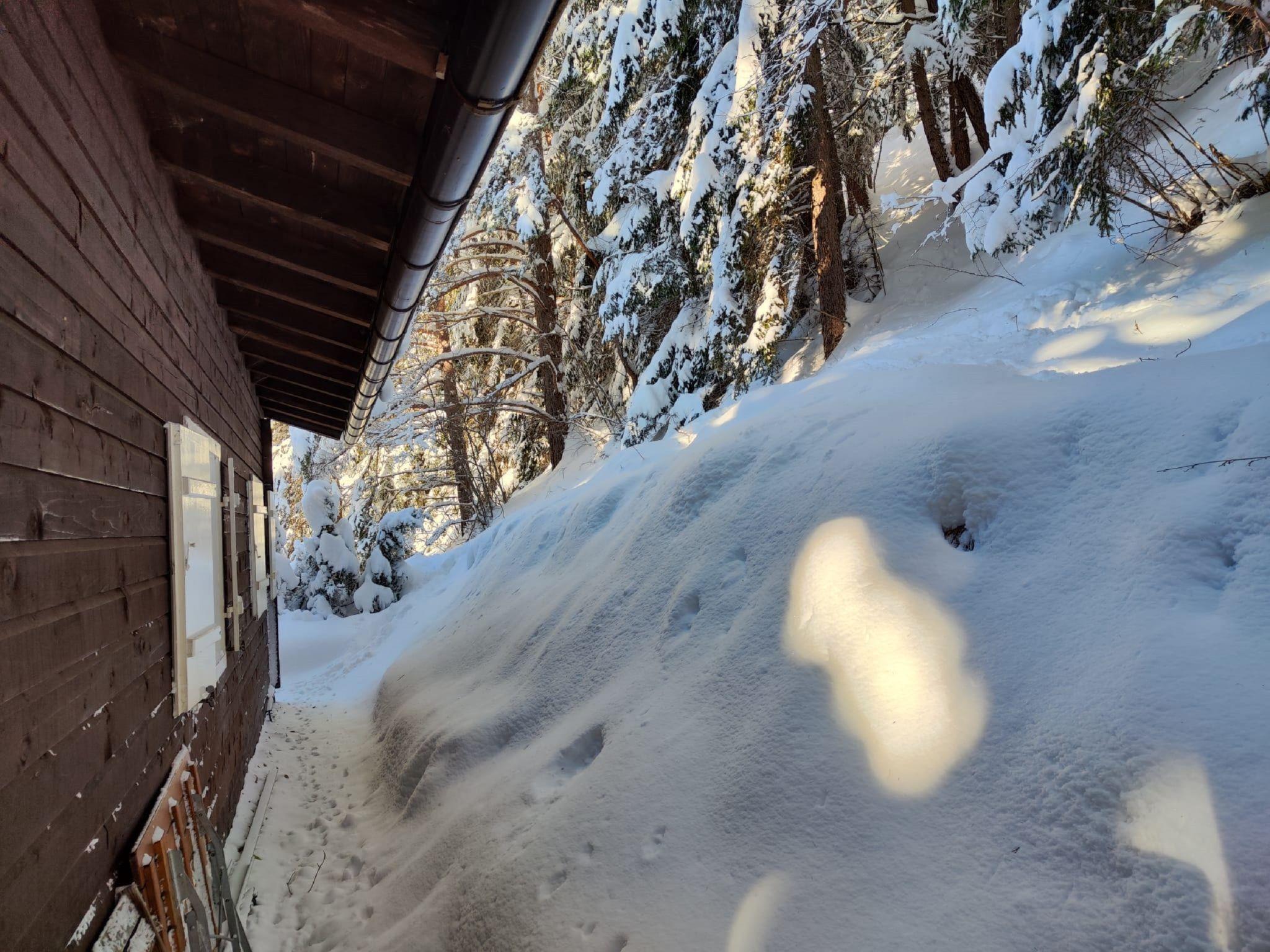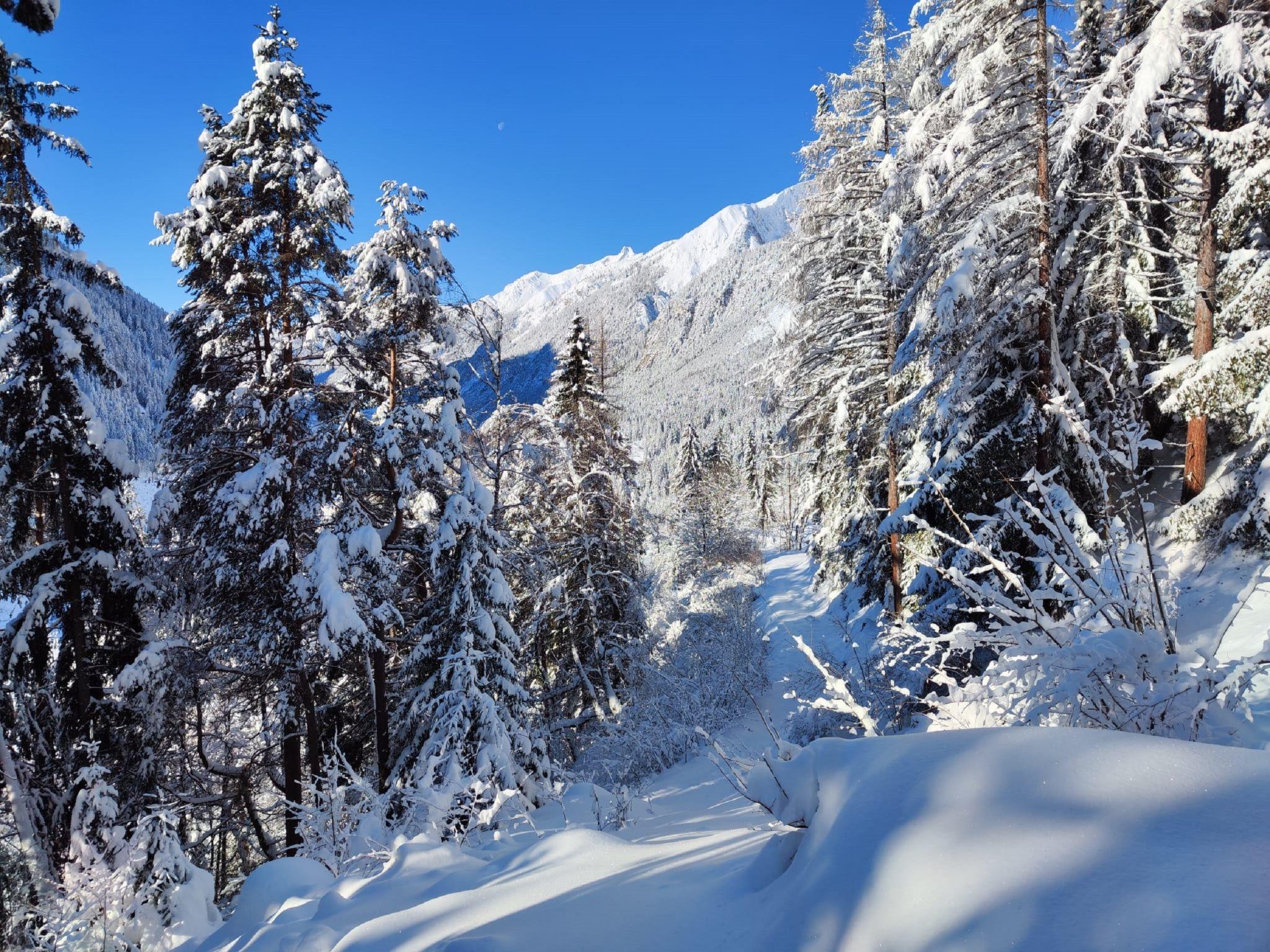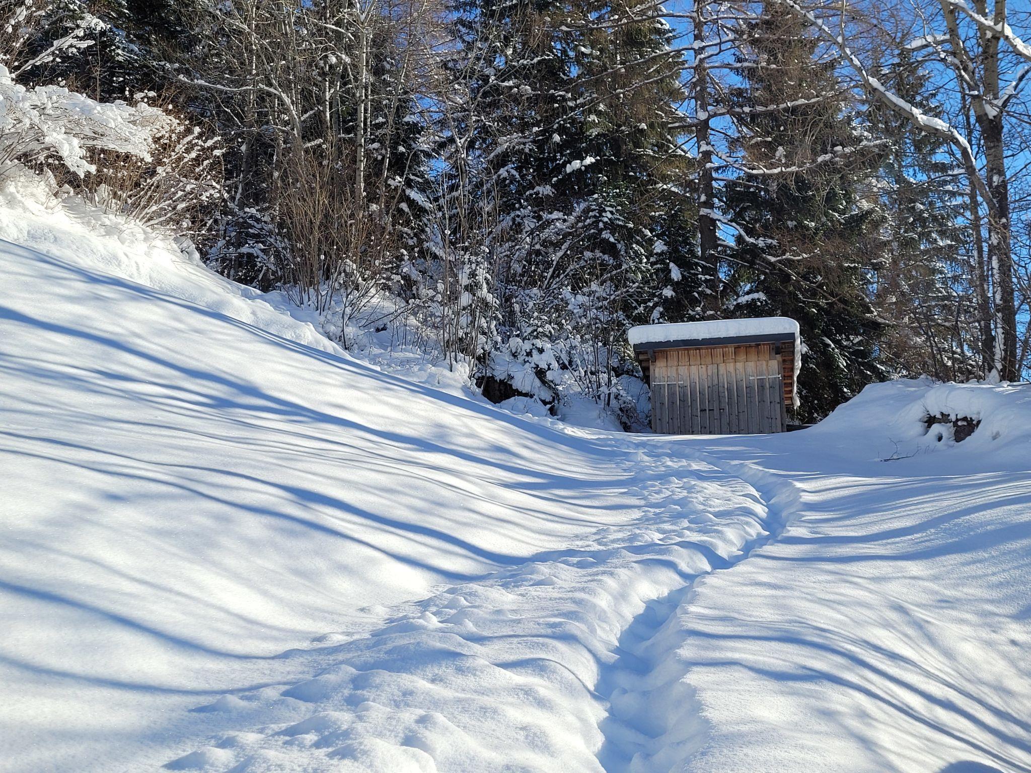 Flirsch 12 km from St. Anton: Idyllic, located in the middle of the forest rustic timber house "Lieblingsplatz", detached, surrounded by trees. Above Flirsch am Arlberg, 1.8 km from the centre, in a secluded, quiet position. Private: natural state property. Patio, terrace. Storeroom available. In Winter: please take snow chains. 1 km steep footpath to the house. Parking (for 2 cars). Supermarket 1.8 km, restaurant 1.8 km, bus stop "Dorfplatz" 1.8 km, railway station "St. Anton" 14 km, outdoor swimming pool 14 km, indoor swimming pool 9 km. Walking paths from the house 10 m, skisport facilities 13 km, ski bus stop 1.8 km, ski school 13 km, cross country ski track 2.5 km. Well-known ski regions can easily be reached: St. Anton am Arlberg 13 km, Ischgl 33 km. Please note: car recommended. Cabs cannot stop right in front of the house. Ski bus (free of charge). Free ski bus service to the ski region St. Anton. Please note: good shoes required, 1km steep path within walking distance to the house, ski depot in St. Anton included!