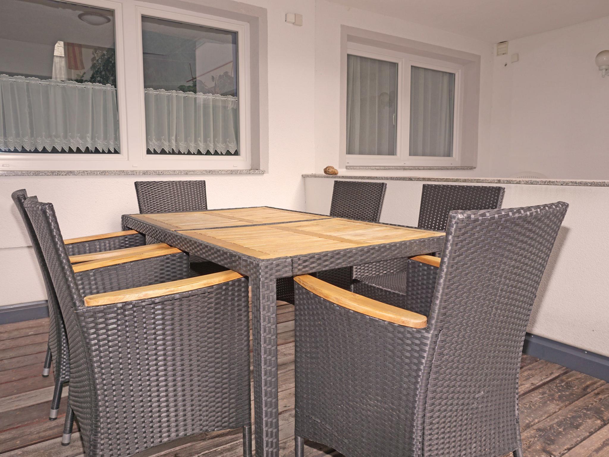 4-room apartment 100 m2 on 1st floor. Comfortable and tasteful furnishings: entrance hall. 2 double bedrooms. 1 double bedroom with satellite TV. Exit to the balcony, to the terrace. Living/dining room with dining nook, satellite TV and DVD. Kitchen in the entrance (mini-oven, dishwasher, 4 ceramic glass hob hotplates, microwave, freezer, electric coffee machine). 2 showers/WC. Balcony, south facing position, large terrace 24 m2, east facing position and south facing position. Terrace furniture, deck chairs. Marvellous view of the mountains and the valley. Facilities: safe, hair dryer. Internet (WiFi, free). Please note: smoke alarm. Payment on site with bank card is possible!