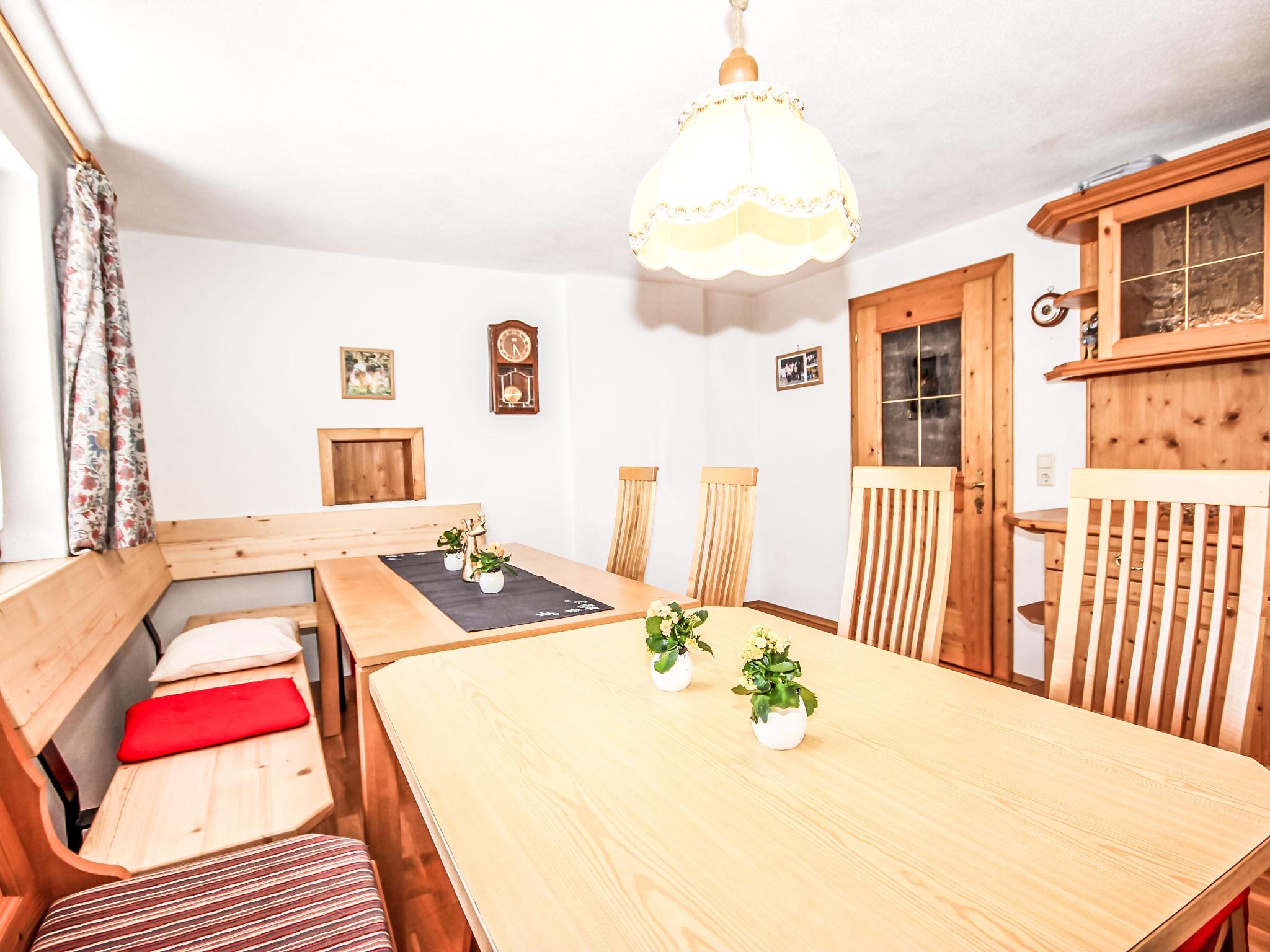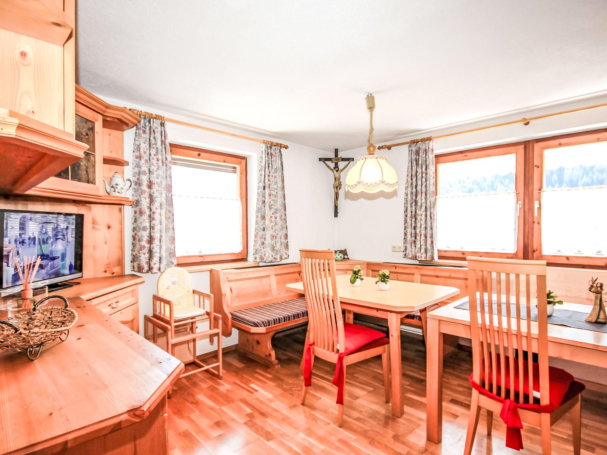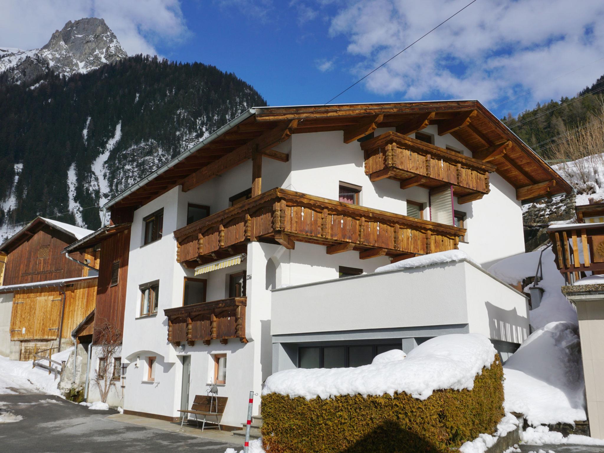 Flirsch 12 km from St. Anton: Cosy, very comfortable cottage "Hölzl", 4 storeys. On the outskirts, 650 m from the centre of Flirsch, in a quiet, sunny position on a slope, 600 m from the skiing area. Private: patio, terrace (15 m2), barbecue. In the house: lounge with TV, WiFi, storage room for bicycles, sun terrace, storage room for skis, central heating system, ski boot dryer. Bread roll service. Storeroom available. Motor access to the house (mountain road). Parking (for 5 cars) at the house. Grocery, restaurant 650 m, bus stop "Dorfplatz", railway station "St. Anton" 13 km, outdoor swimming pool 13 km, indoor swimming pool 8 km. Walking paths from the house 50 m, ski lift 600 m, skisport facilities 12 km, ski bus stop 650 m, ski school 12 km, sled run 300 m, cross country ski track 1.5 km. Well-known ski regions can easily be reached: St. Anton am Arlberg 12 km, Ischgl 32 km. Please note: car recommended. Suitable for families. Ski bus (free of charge). Free ski bus service to the ski region St. Anton. Arlberg summer-card included.