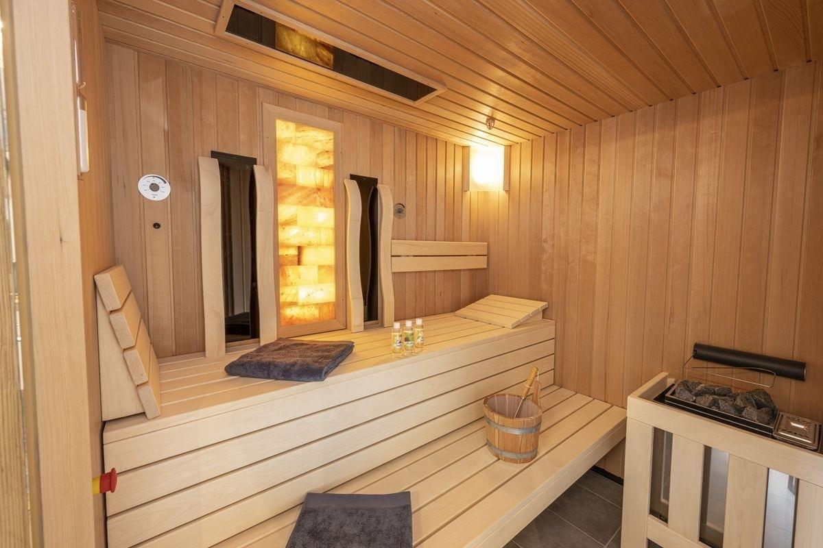 Nach einem erlebnisreichen Urlaubstag finden die Gäste im Wellnessbadezimmer die nötige Erholung. Aus der Sauna bietet sich ebenfalls ein toller Blick auf die Berge Österreichs. Die Sauna kann als klassische finnische Sauna genutzt werden oder auch als Bio-Sauna. Eine Wellness-Dusche (Regendusche) und eine große Eck-Badewanne sind auch vorhanden.