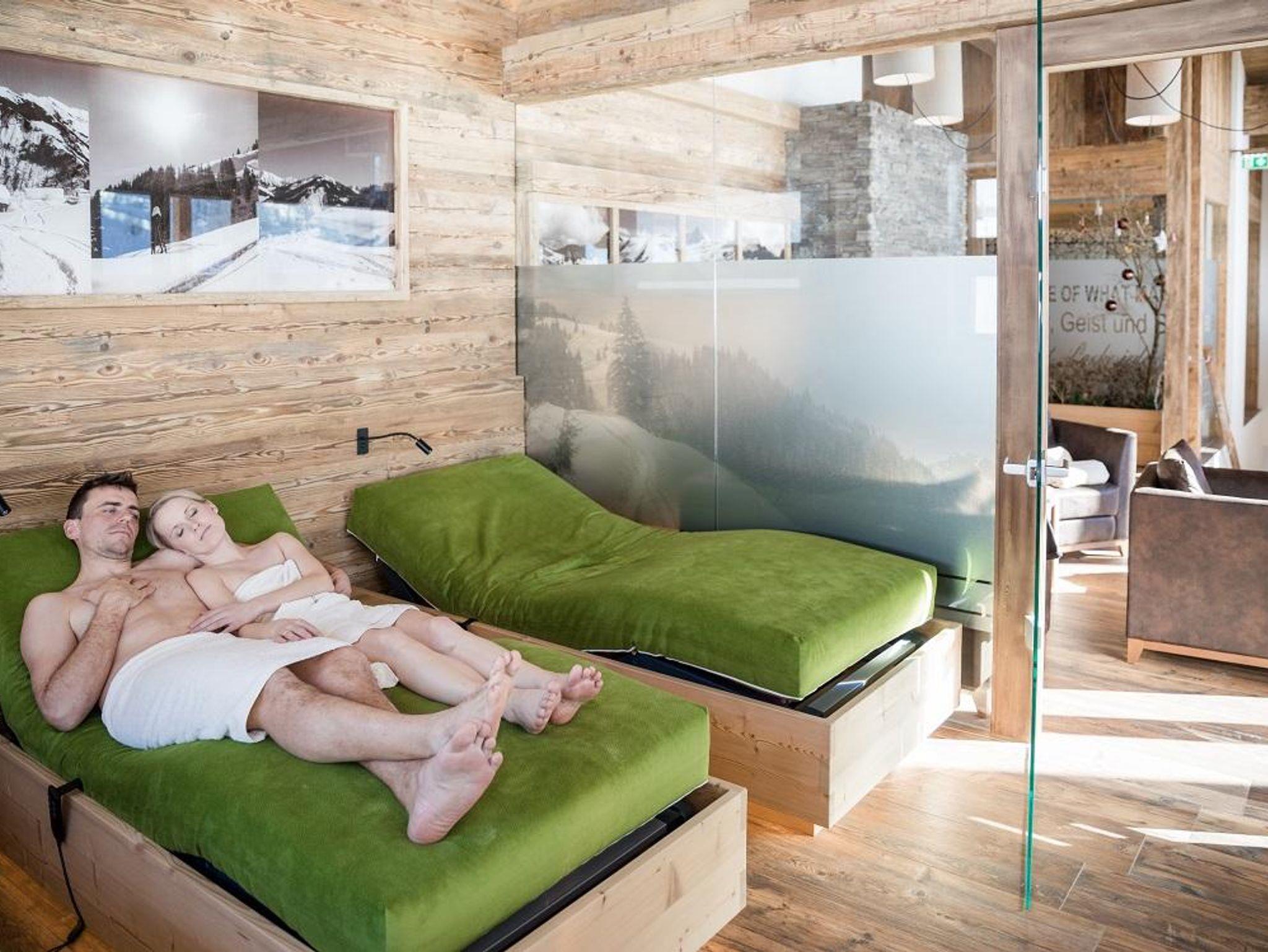 Der großzügig gestaltete Wellnessbereich, mit Zirben-Sauna, Bio Kräutersauna, Infrarotkabine, Dampfbad, Erlebnisduschen und gemütlichen Almwiesen-Ruheräumen, lässt sie nach einem erlebnisreichen Tag zur Ruhe kommen.