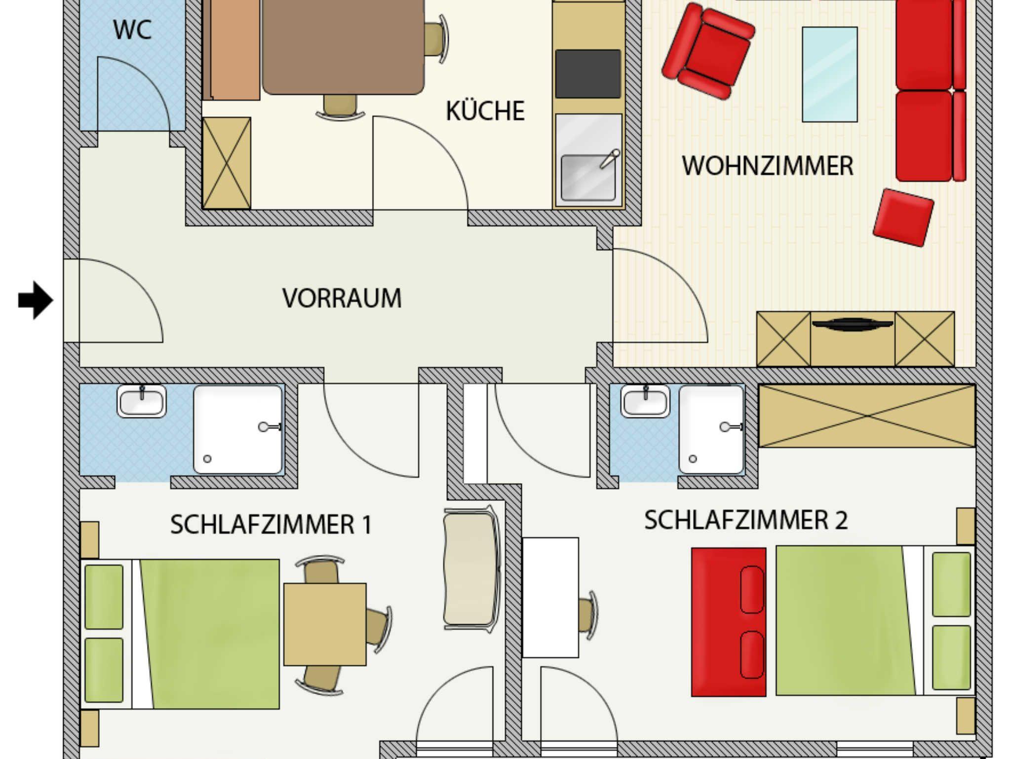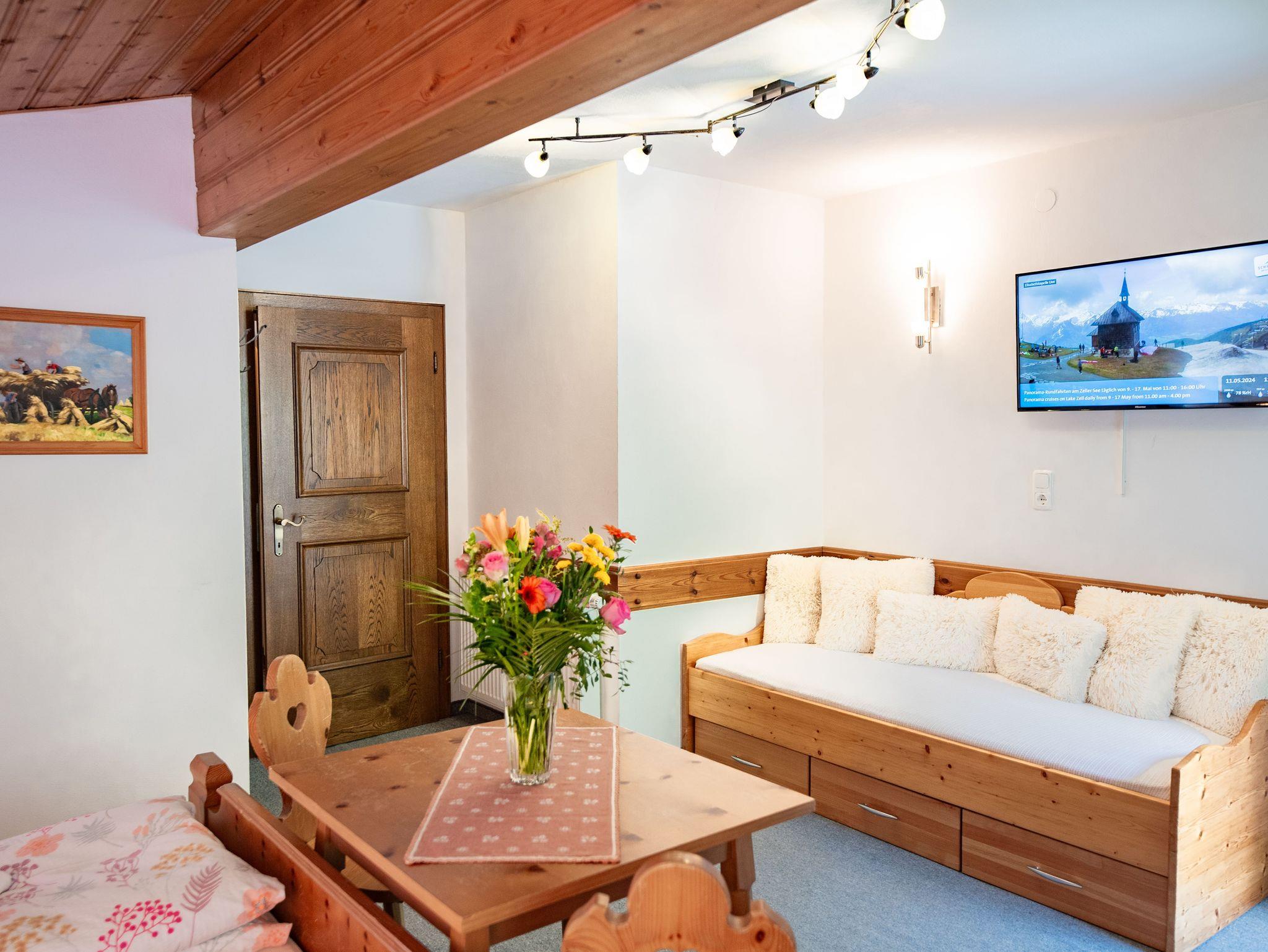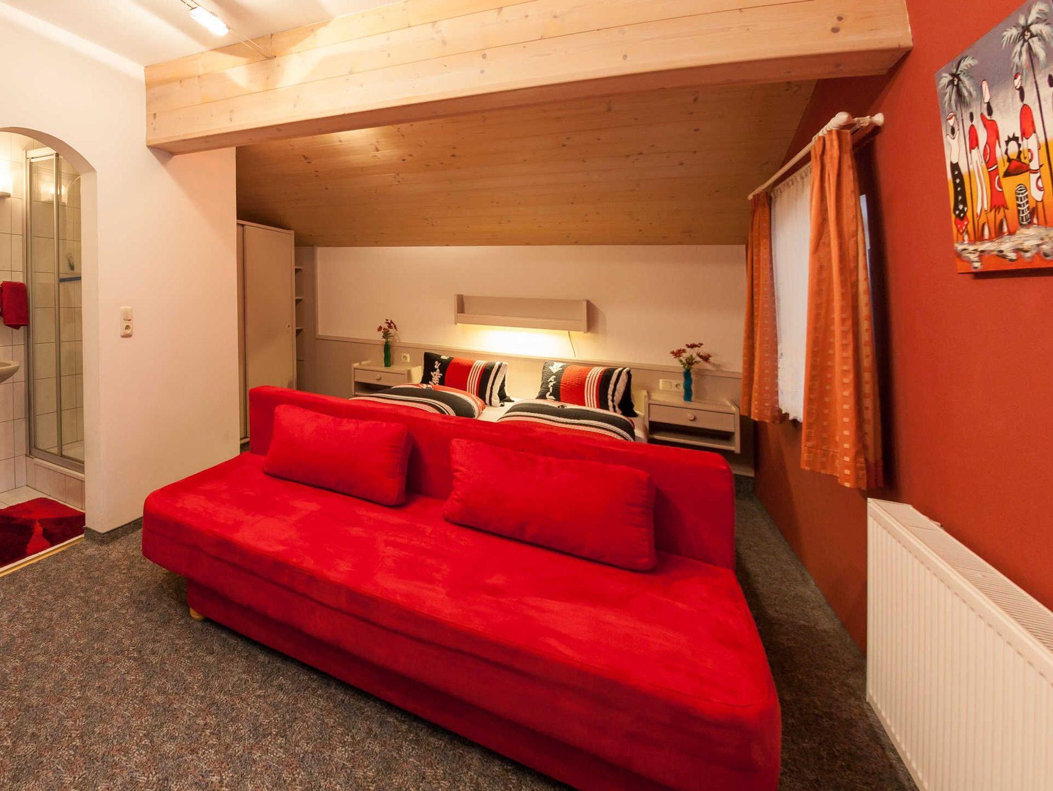 Geräumige 80 m² für bis zu 6 Personen mit 2 gemütlichen 3-Bett Schlafzimmer mit je einem TV. 2 Badezimmer. Separate Küche inkl. Tisch u. Eckbank. Modernes Wohnzimmer mit 42 Flachbild TV. WC im Flur. Auch ein Balkon steht zur Verfügung, der von den beiden Schlafzimmern erreichbar ist. Ein Carport für 2 Autos ist integriert. Im Garten befindet sich ein Spielplatz sowie ein Tischtennistisch u. eine Grillmöglichkeit mit Terrasse. Ein PC und kostenloses WLAN ist vorhanden. Im Keller stehen Ihnen ein Schischuhtrockner sowie ein Schiständer zur Verfügung. Strom, Handtücher, Geschirrtücher, Bettwäsche u. WC Papier sind im Preis enthalten. Nur 5 Gehminuten ins Ortszentrum. IM PREIS IST AUCH DIE BONUS CARD INBEGRIFFEN, mit der Sie viele Rabatte bei den umliegenden Sehenswürdigkeiten u. Freitzeitangeboten erhalten.