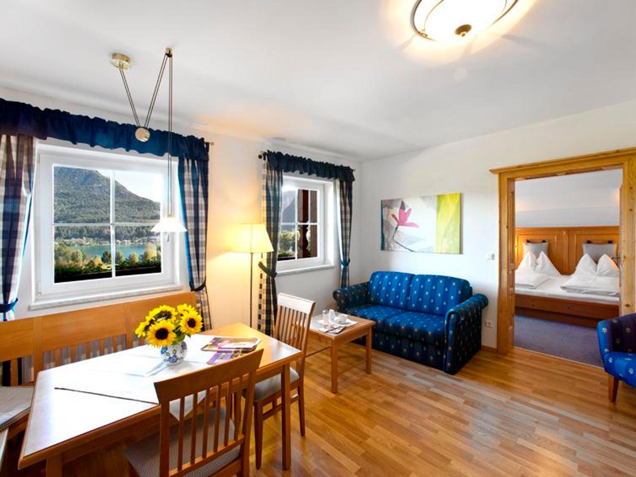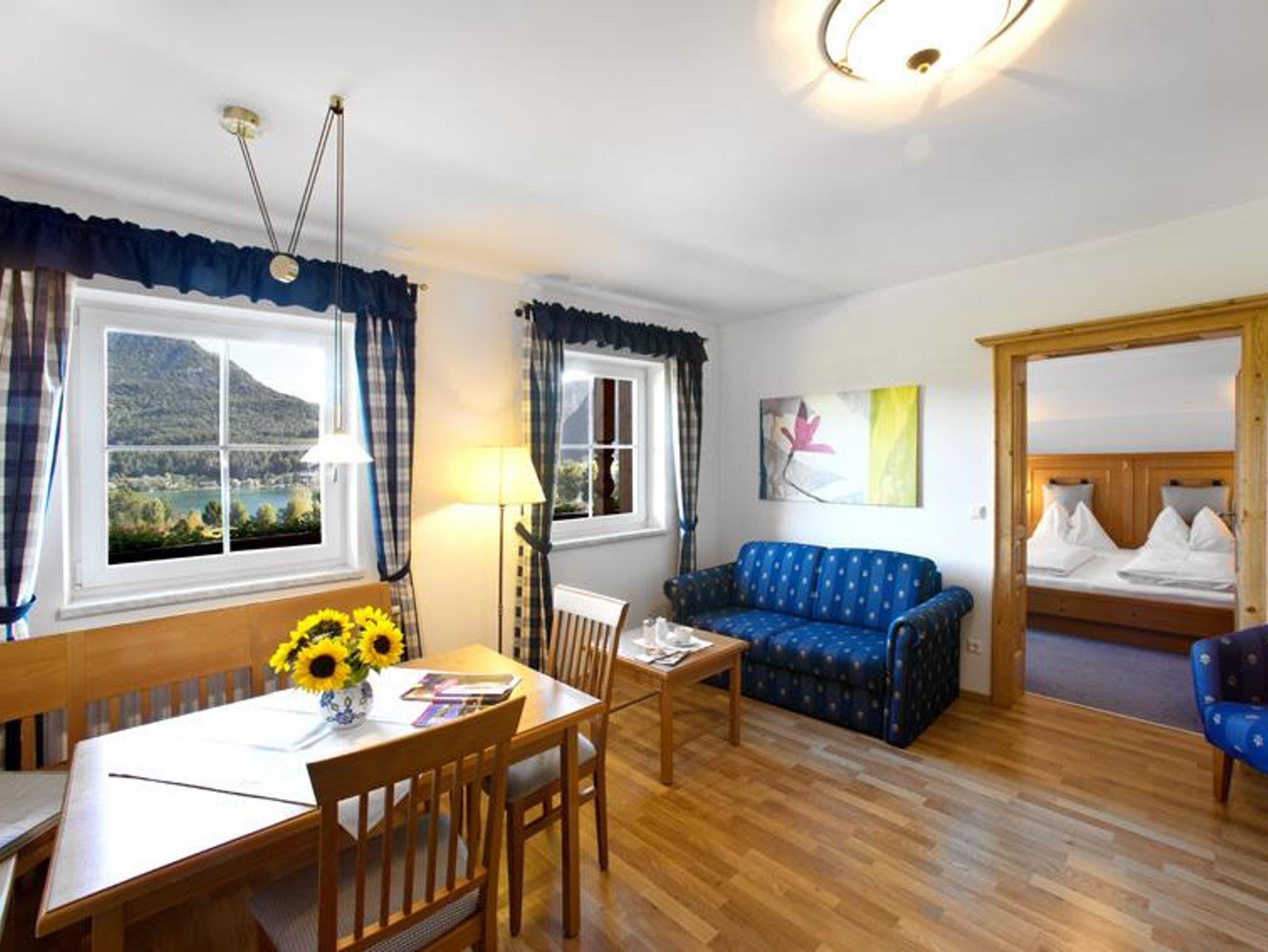 Wir heißen Sie in unserer Apart-Pension Wesenauerhof recht herzlich willkommen! Unser Haus liegt am Südwestufer des Fuschlsees, ca. 10 Gehminuten vom Ort entfernt. Es stehen Ihnen 9 voll ausgestattete Wohnungen in 2 verschiedenen Größen und ein Doppelzimmer, alle mit Balkon zur Verfügung. Die Appartements sind ausgestattet mit großem Wohnraum, Küchenzeile, Essecke, Couch, TV, freiem WLAN und 1 oder 2 getrennten Schlafzimmern (jedes SZ hat ein eigenes Bad).Der Wellnessbereich mit Sauna und Infrarotkabine kann von unseren Gästen kostenlos benützt werden.
