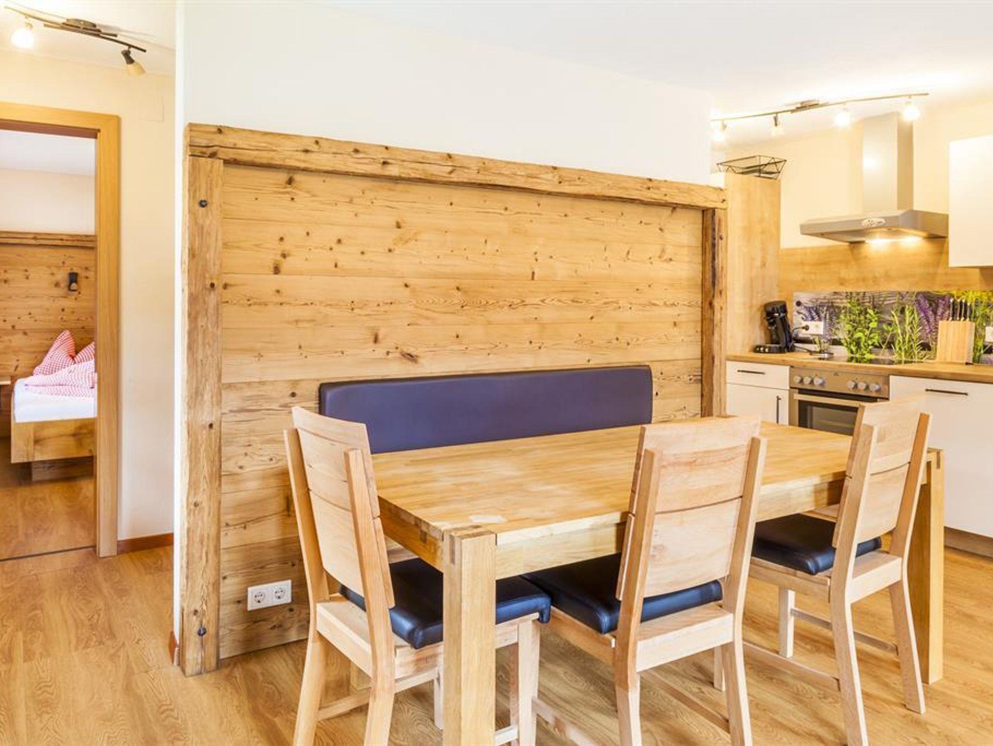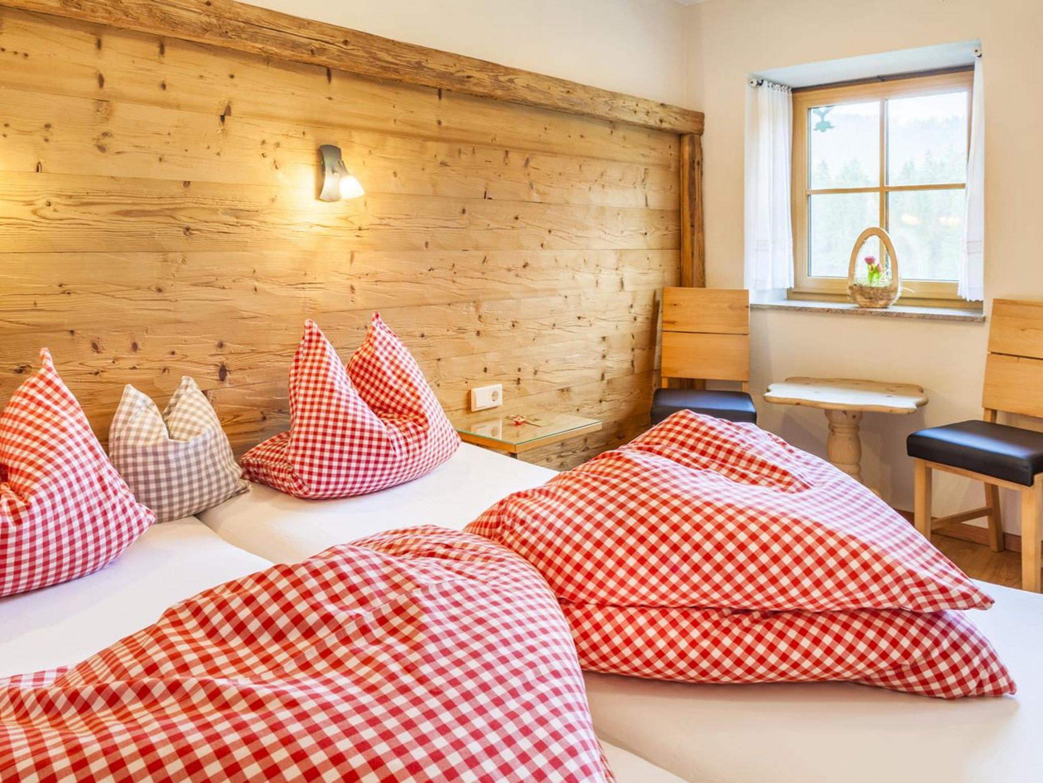 Überblicken sie die Wiesen und Felder des Bambichlgutes von Ihrem Balkon und geniessen Sie herrliche Sonnenaufgänge. Das Zimmer mit Doppelbett besitzt einen Durchgang zu einen Nebenzimmer mit wahlweise Kinder-, Einzel- oder Etagenbett.