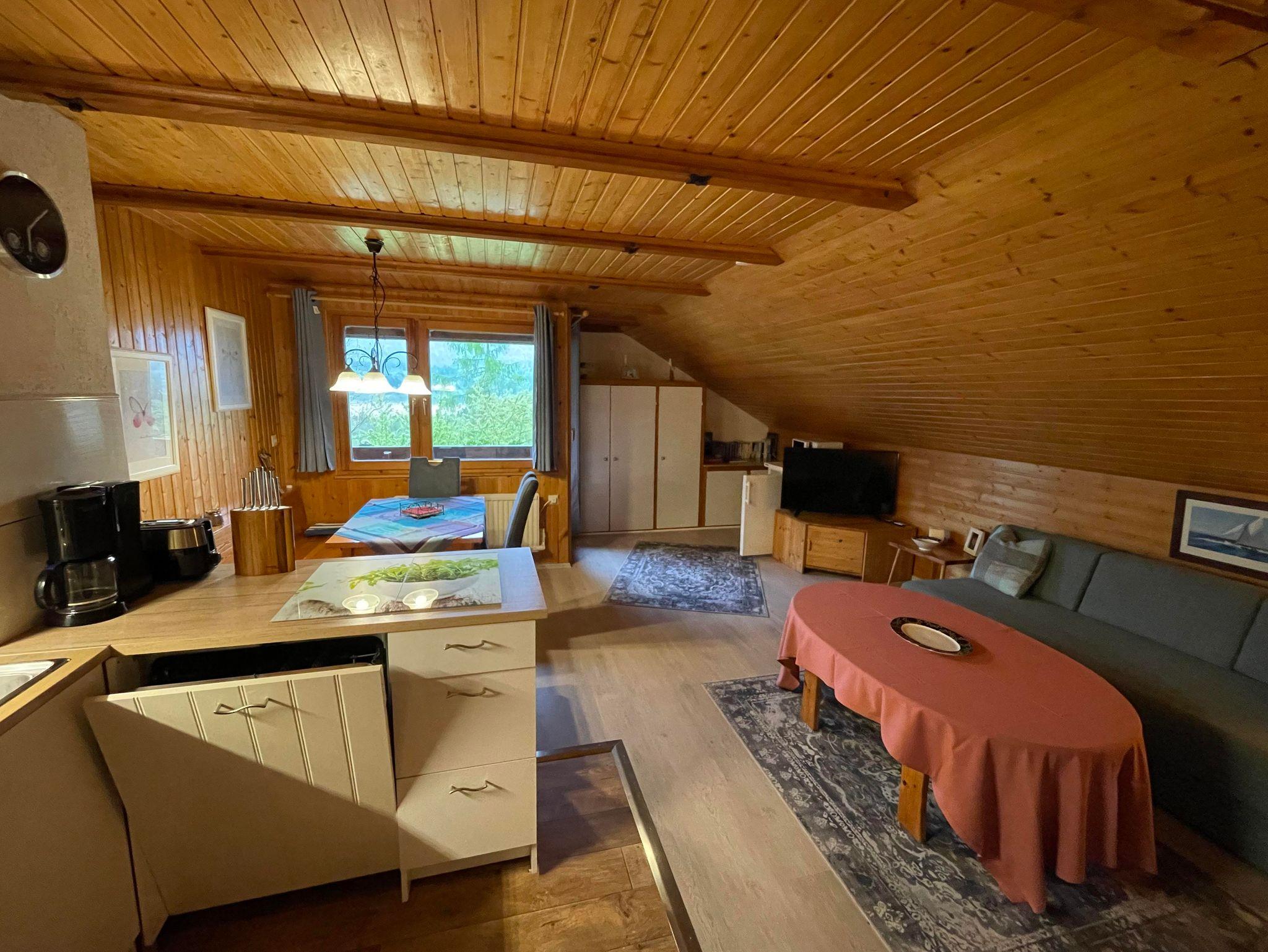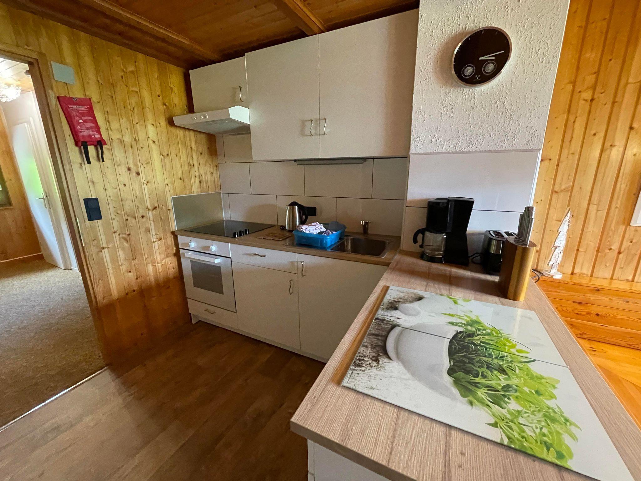 Appartement Wellington: es ist das unterste Appartement und verfügt über einen separaten Eingang. Es bietet zwei Schlafzimmer, ein Duschbad, einen Wohnraum mit Esstisch, Küchenzeile, Sofa, Fernseher und einen Holzofen. Die Küchenzeile ist voll ausgestattet mit Kühl-Gefrierkombination, Backofen, Toaster, Wasserkocher, Mikrowelle, Kaffeemaschine und Geschirrspüler. Durch den Wohnraum gelangt man in das zweite Schlafzimmer (zwei Einzelbetten) und von dort auf die Terrasse. Das Appartement ist zusätzlich zum separaten Eingang stufenlos durch den Ski- und Fahrradkeller zu erreichen. Es ist jedoch nicht behindertengerecht (steile Straße). Das gesamte Appartement ist mit Laminat/Fliesen ausgestattet.