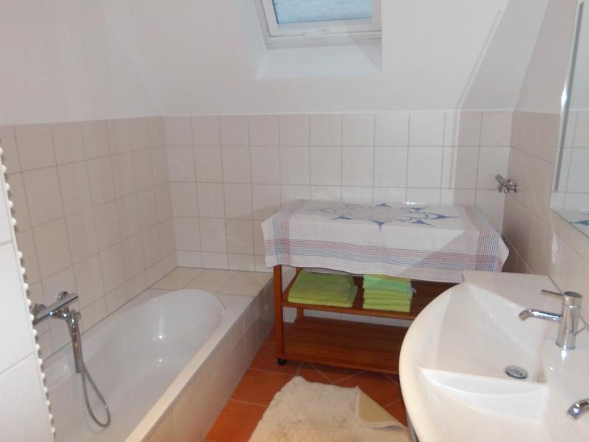 - Es hat 1 Bad mit Doppelwaschbecken, Dusche und Badewanne.
