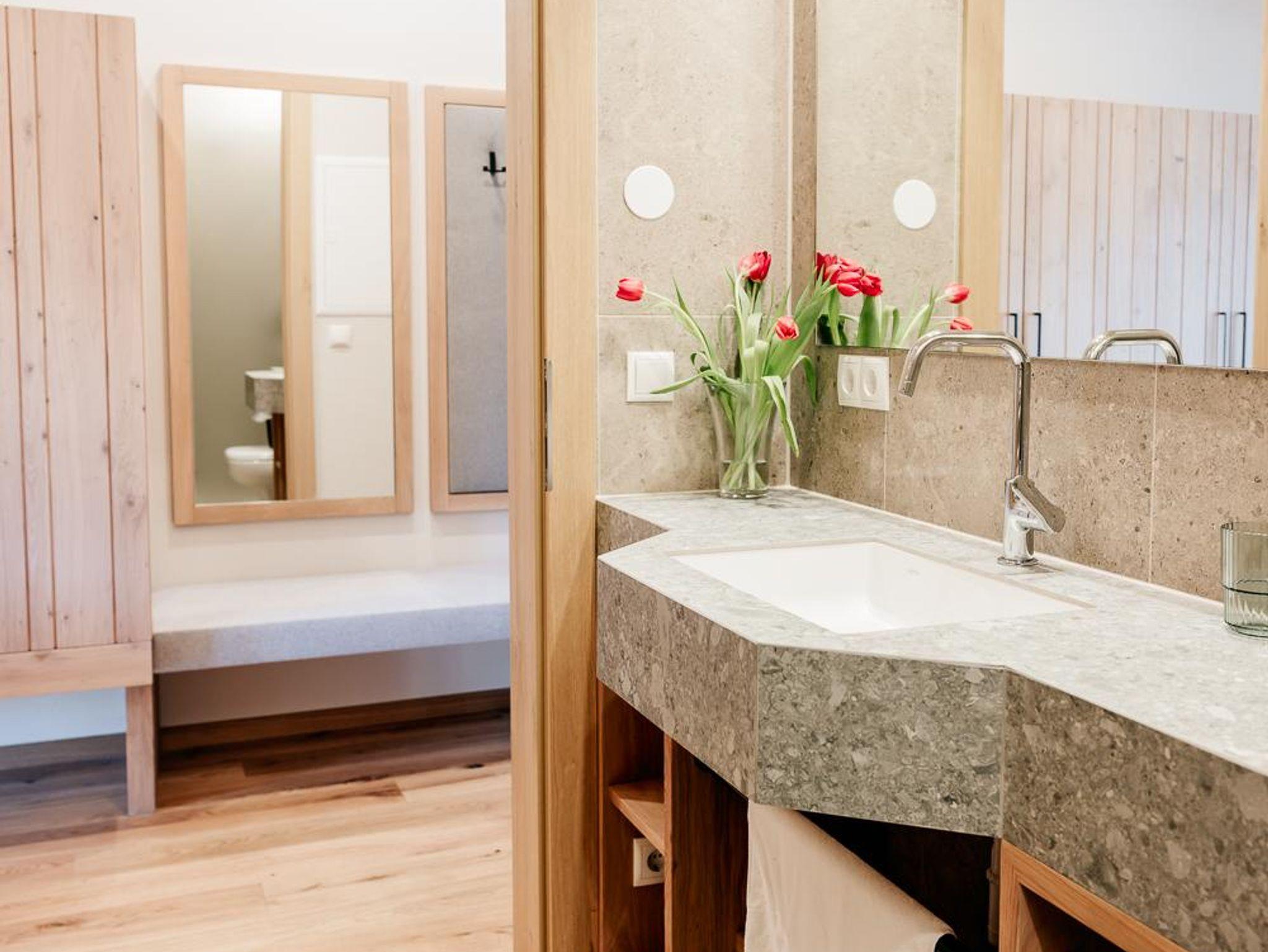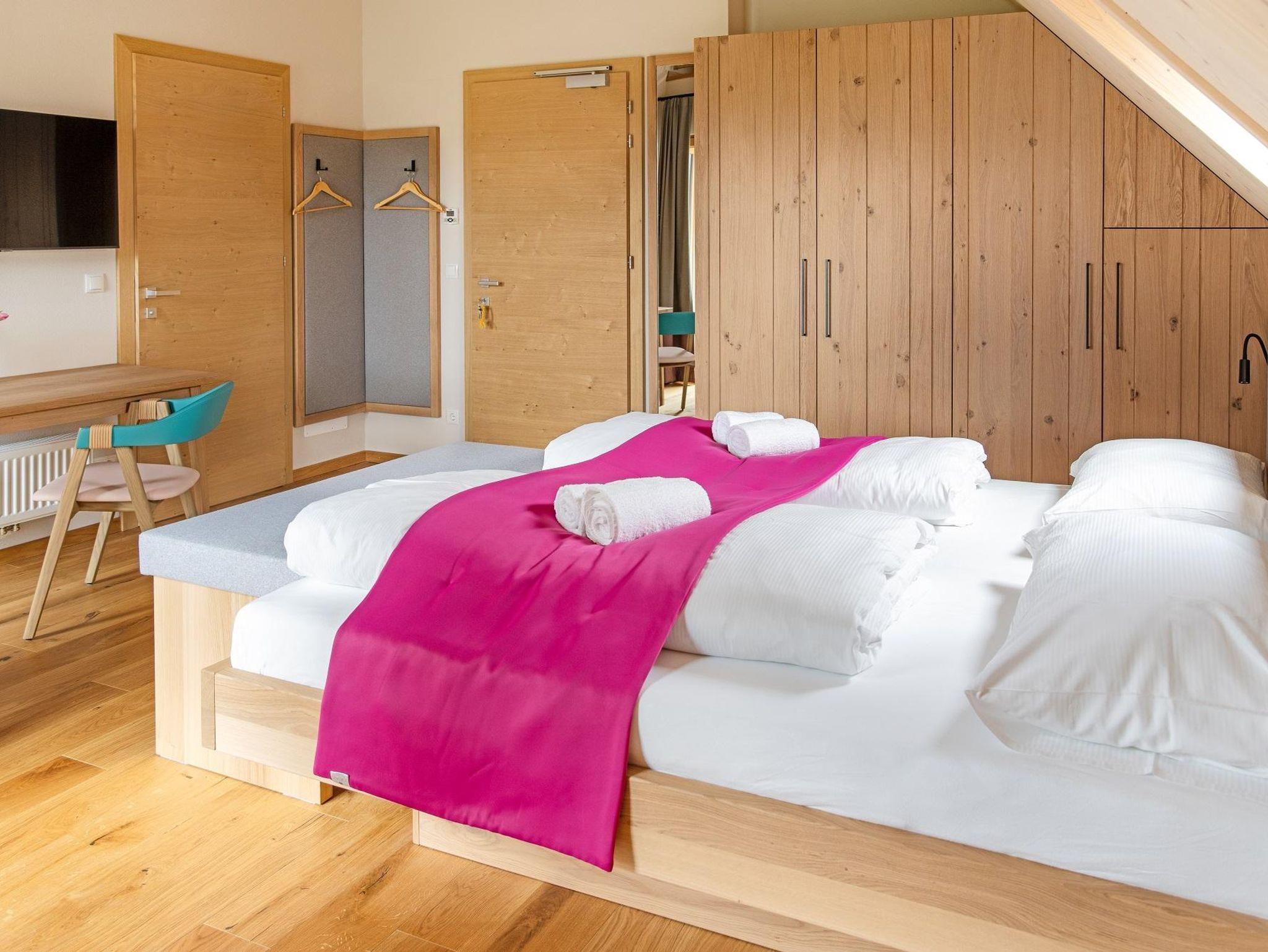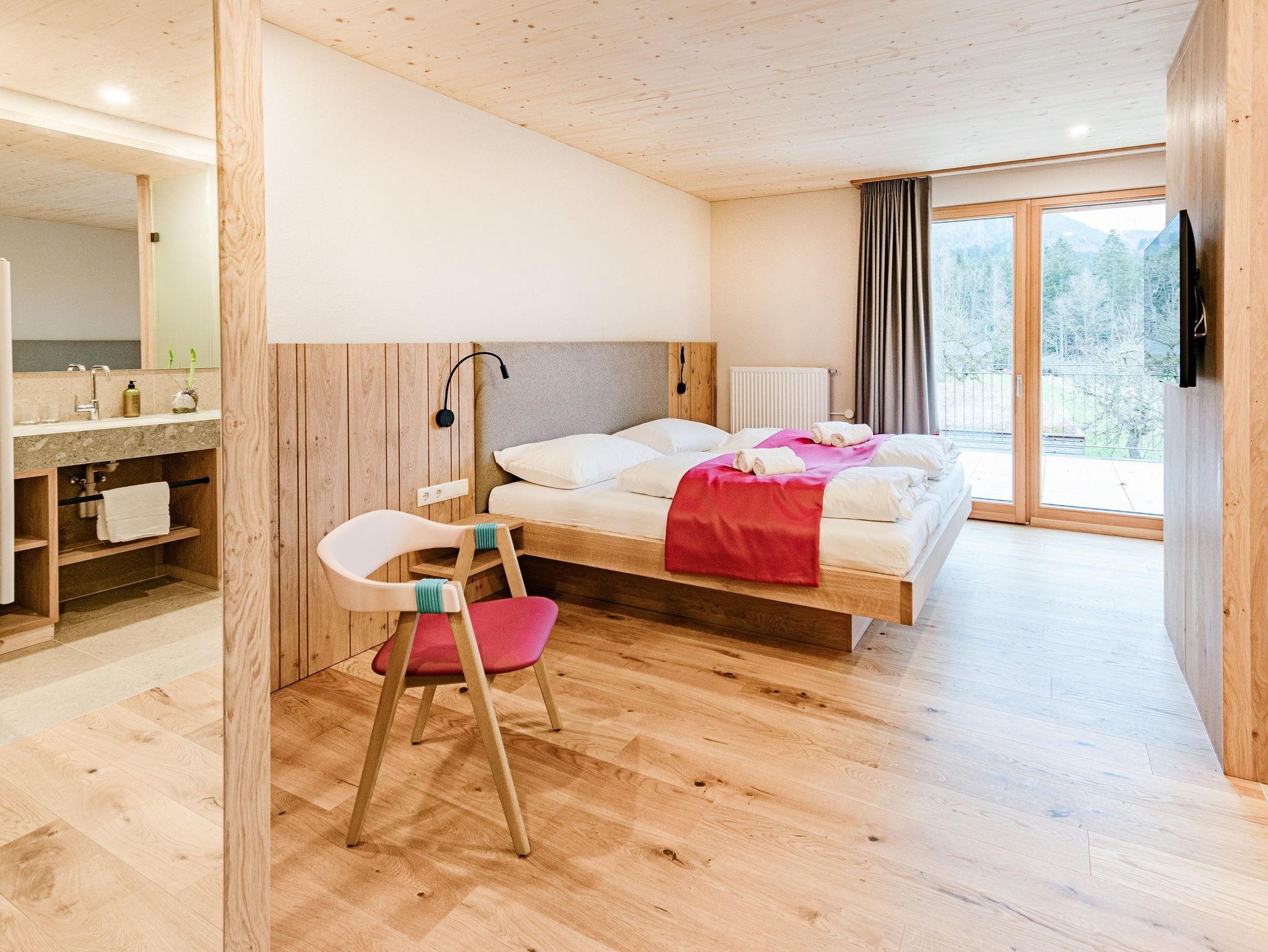 Alle Zimmer sind mit ausgewählten Naturmaterialien ausgestattet. So auch das komfortable Zimmer Landliebe. Neubau, Schlafzimmer - Doppelbett (Kingsize), Badezimmer mit WC und Walk-in Dusche, Kostenloses W-Lan, Flat Screen, Holzböden und hochwertig verarbeitete Naturmaterialien, großzügige Terrasse (8 m²) mit Sitzmöglichkeit, Erdgeschoss, Zimmer inkl. Frühstück, Halbpension auf Anfrage, Mitnahme von Haustieren auf Anfrage.