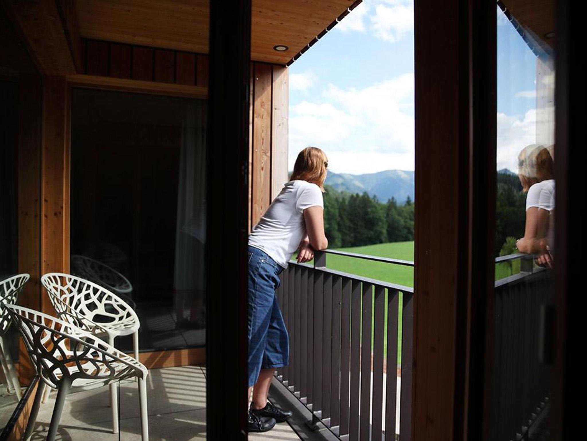 Die Holzböden und die hochwertig verarbeiteten Naturmaterialien verleihen dem Zimmer eine warme und behagliche Ausstrahlung. Für Ihre Unterhaltung steht Ihnen ein Flat-Screen zur Verfügung, und dank des kostenlosen WLANs bleiben Sie stets verbunden. Ein besonderes Highlight ist die gemütliche Loggia (4m²) mit bequemen Sitzgelegenheiten, die zum Verweilen und Genießen der Umgebung einlädt.